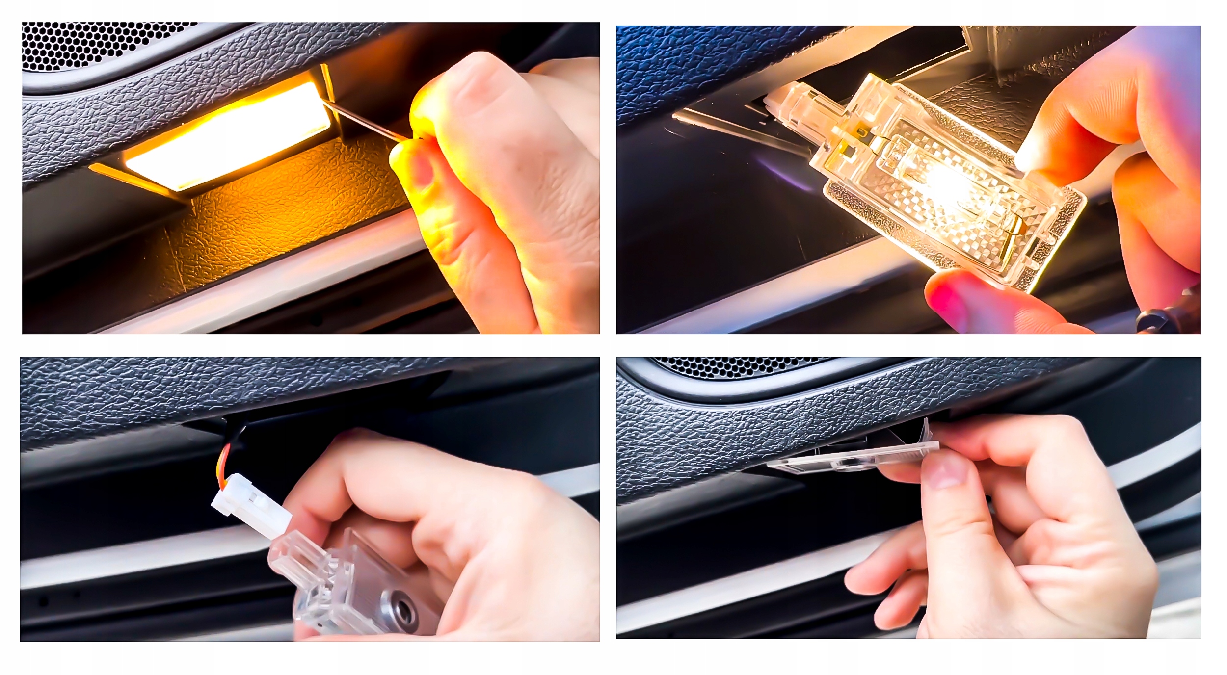 - 1️⃣Снимите заводскую лампу, расположенную в двери