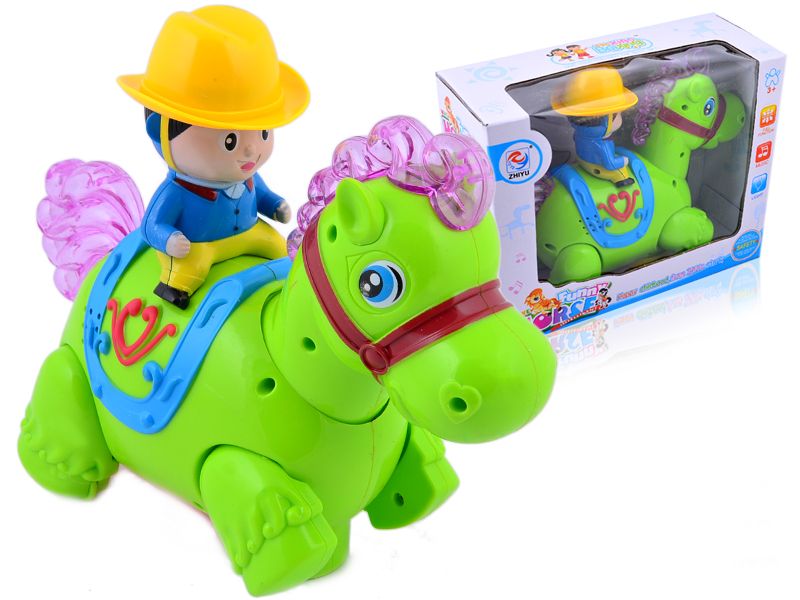 Все сопровождается музыкой и отличным шоу красочных огней (освещенная грива и хвост). Подвижная голова и ноги во время вождения добавьте очарование к игрушке. Малыш просто не сможет оторвать глаза от лошади.