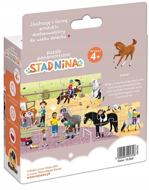 Большие элементы головоломки создают чрезвычайно длинную картину, которая представляет различные виды деятельности в стаде. Это идеальный подарок для маленьких любителей головоломки и лошадей! Все в удобной коробке.
