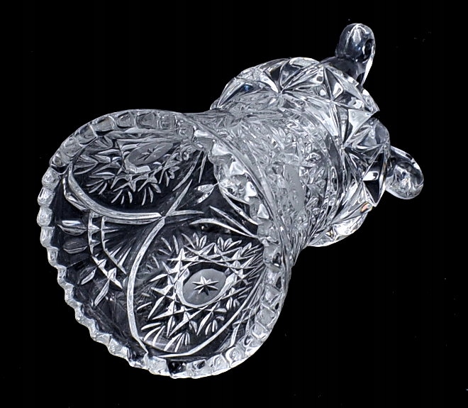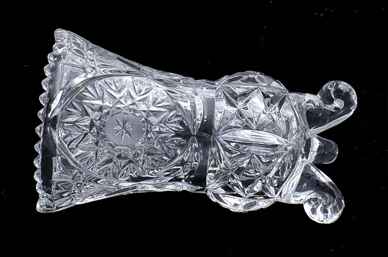 Стекло хрустальное, толстостенное - бесцветное. Интересная форма, в виде симметрично созданных рельефов в стекле - часть рельефов травлена и отполирована. Ваза массивная, имеет ножки.