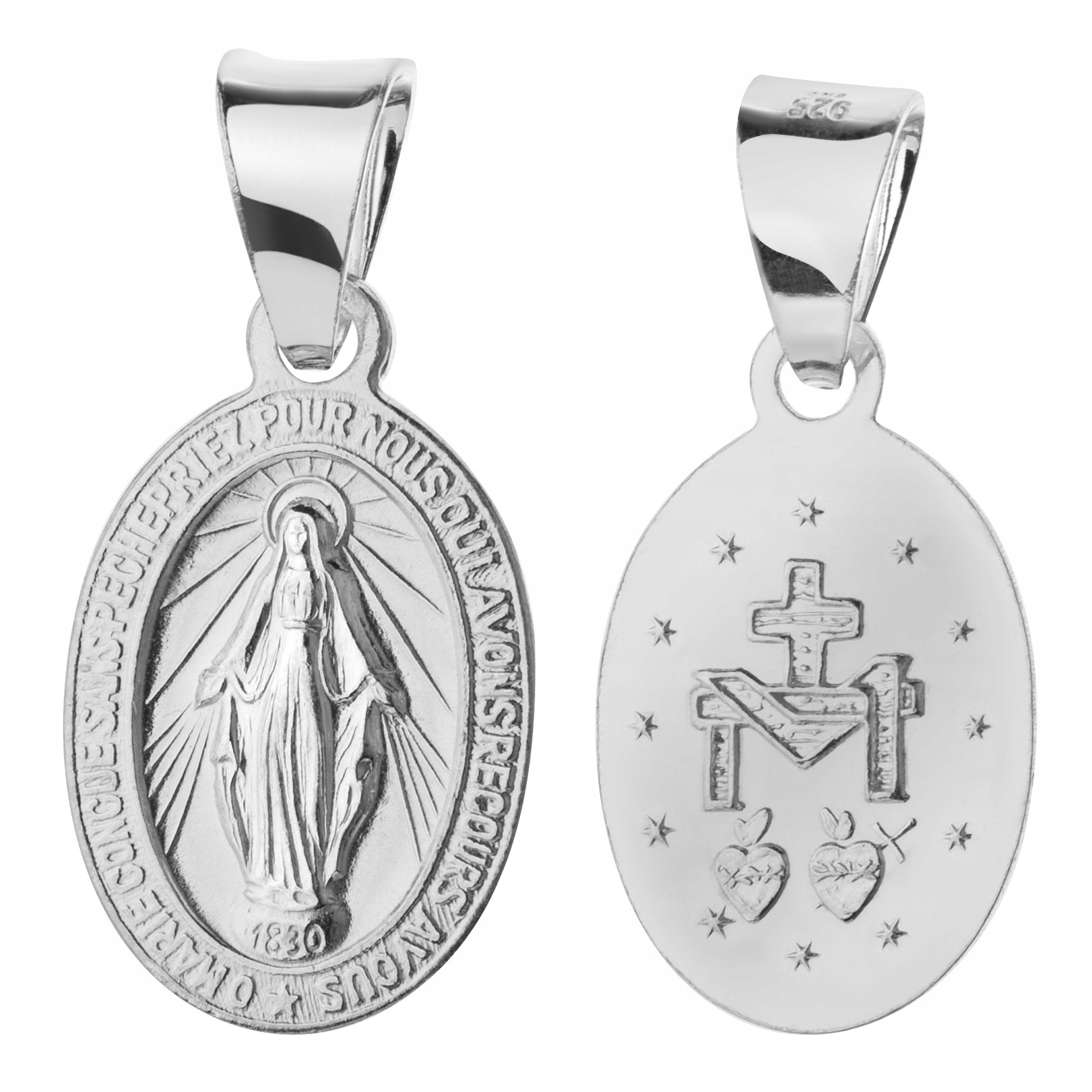 Медаль с красивым изображением Непорочной Богоматери. На лицевой стороне медальона выгравирована молитва: «О мати, зачатая без греха, молись о нас, к Тебе прибегающих». Медальон полностью изготовлен из серебра 925 пробы высочайшего качества