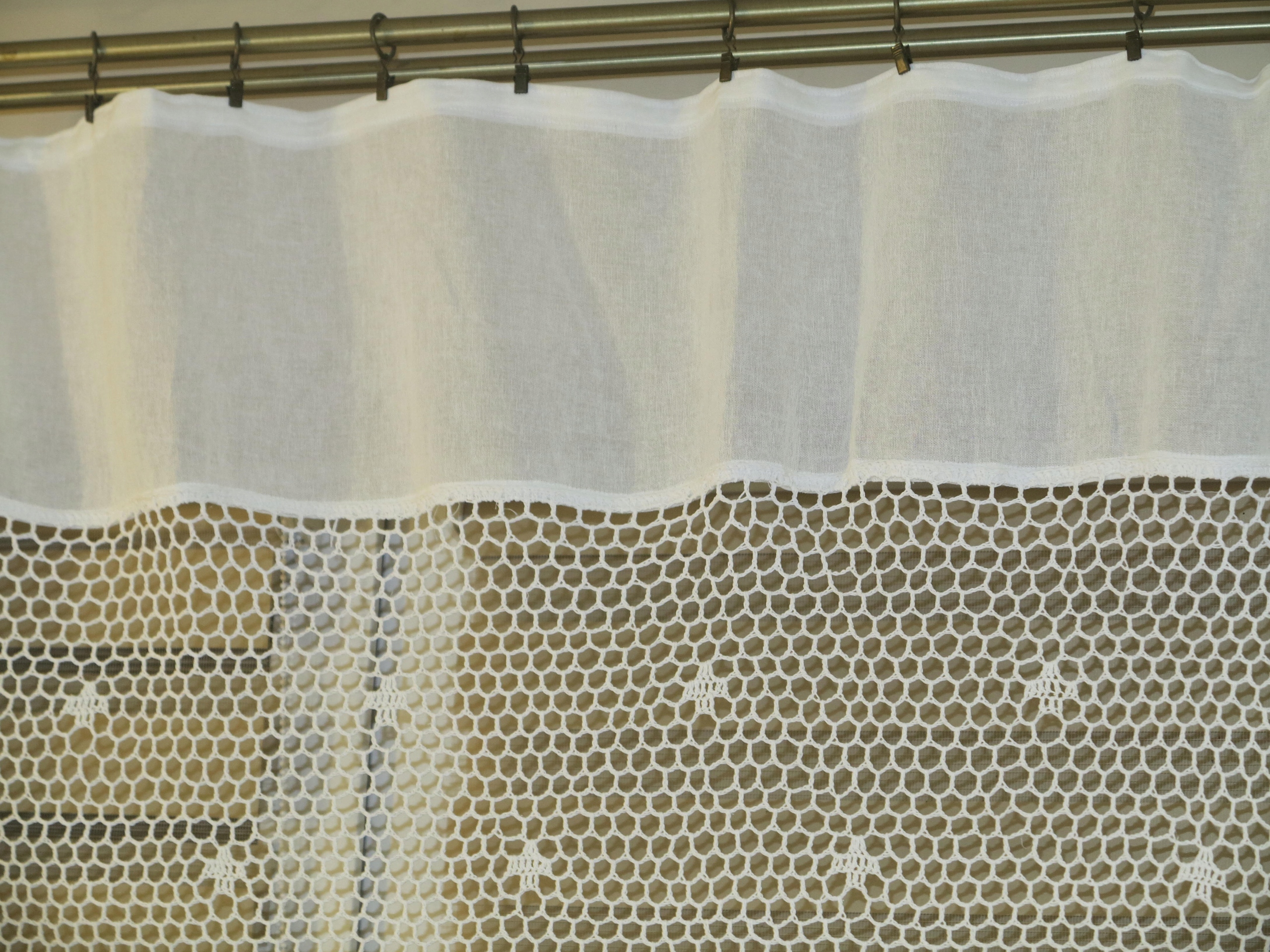 ЧУДЕСНАЯ БЕЛАЯ ШТОРА, ШИРОКАЯ ВЯЗКА КРЮЧКОМ С НИЖНИМИ ЗУБАМИ ЭКРУ 175/111