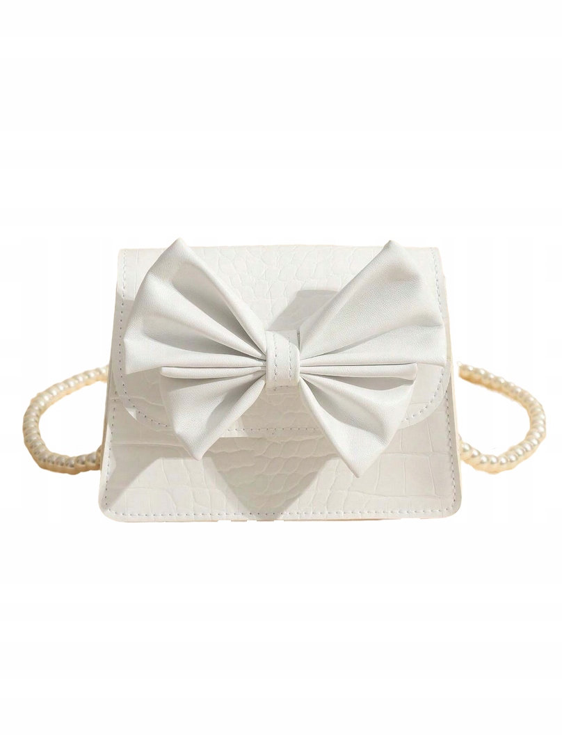 Прекрасная белая сумочка для девочки с бантом и жемчужным ремешком