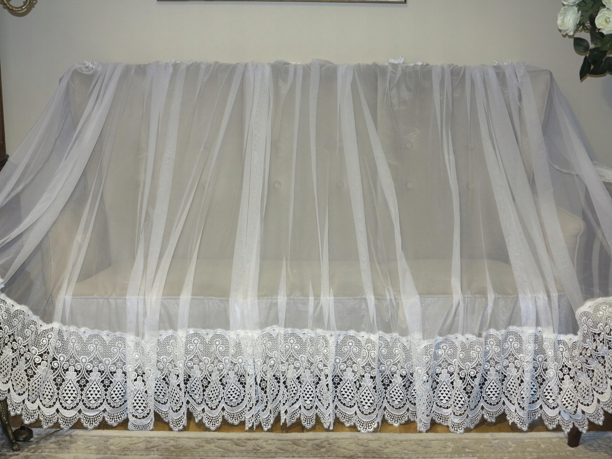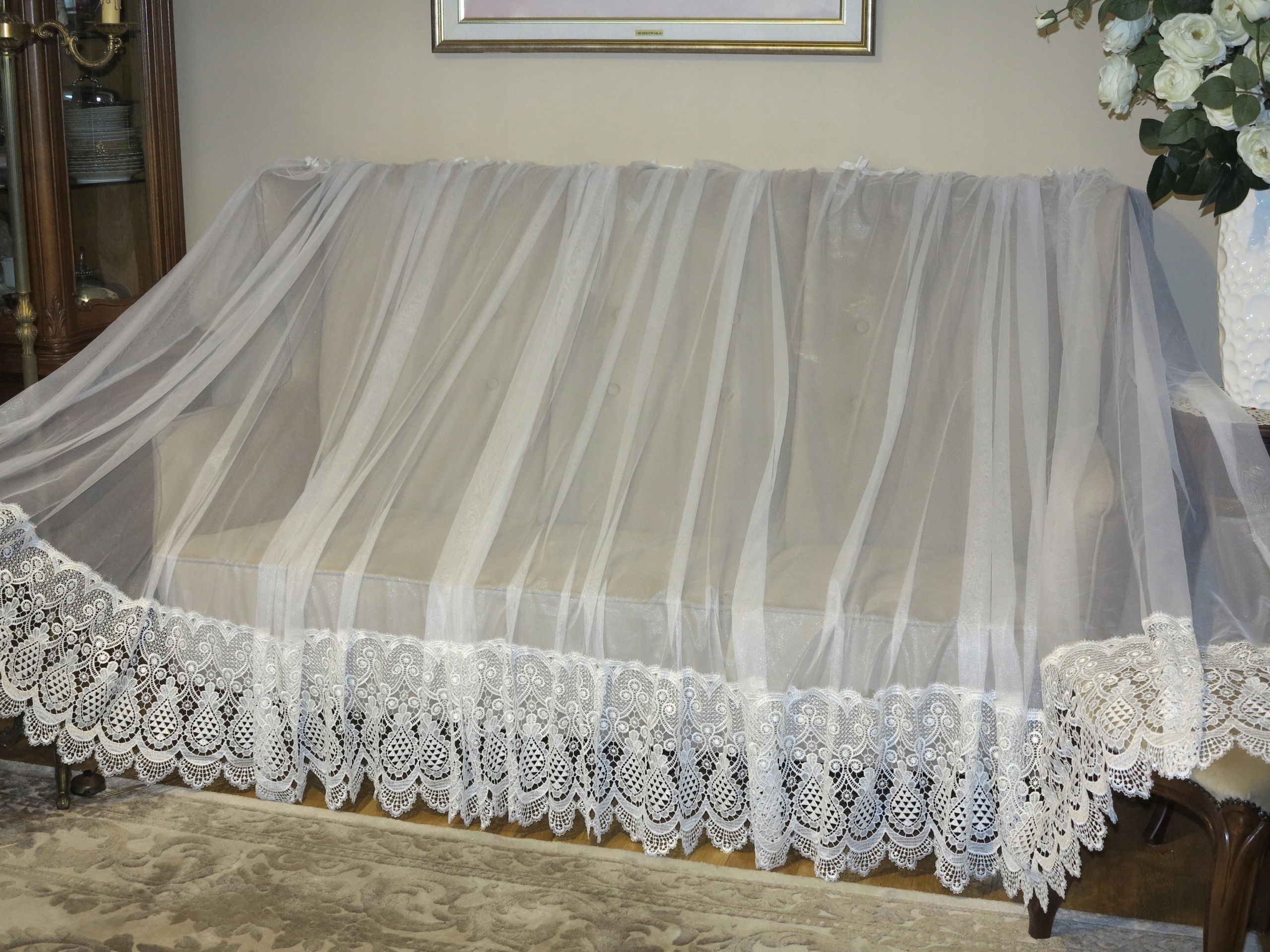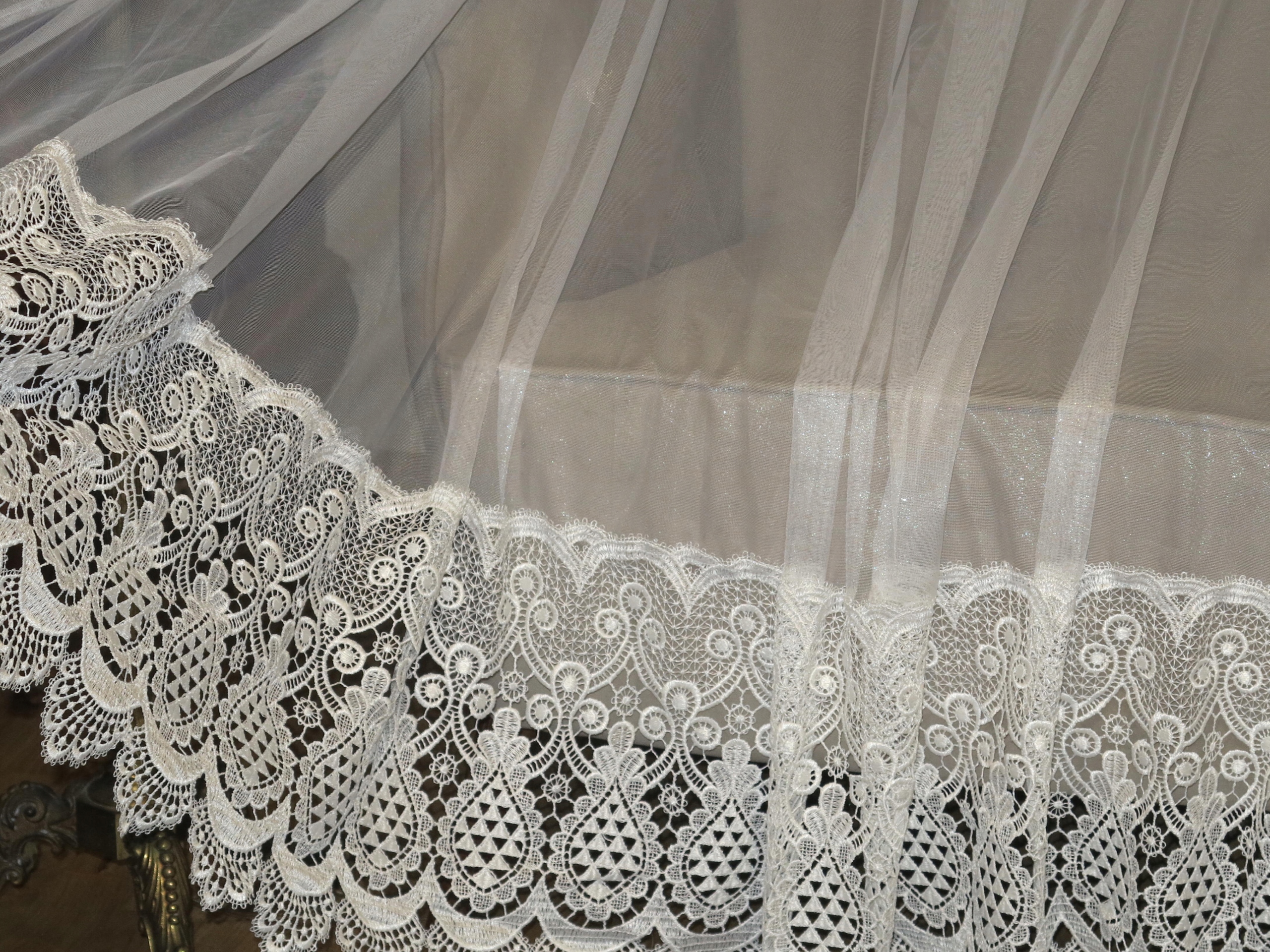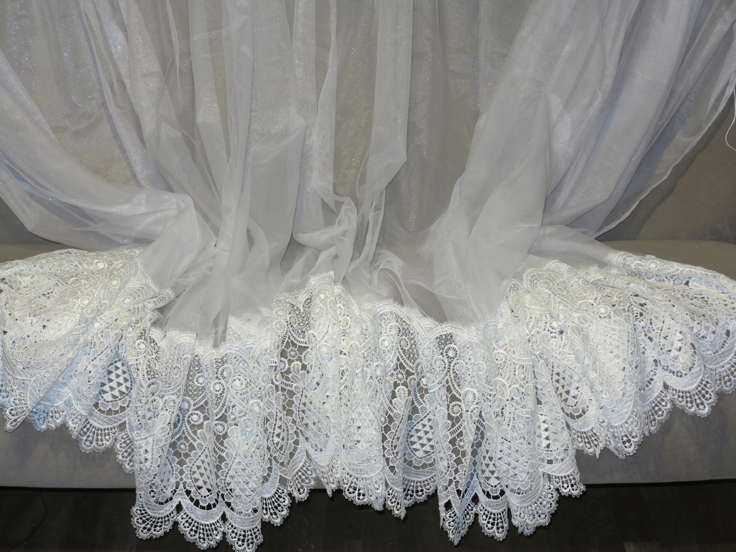ИСКЛЮЧИТЕЛЬНО КРАСИВУЮ, БЕЛОСНЕЖНУЮ, ОЧЕНЬ ШИРОКУЮ ШТОРУ ВНИЗУ С ТОЛСТЫМ И ШИРОКИМ ЖЕМЧУЖНЫМ ГИПЮРОМ. ШТОРА С ГЛАДКИМ, НЕЖНЫМ ТЮЛЕВЫМ ВЕРХОМ, ДОСТАВКА АККУРАТНАЯ, КАК СЕРЕБРЯНАЯ НИТЬ
