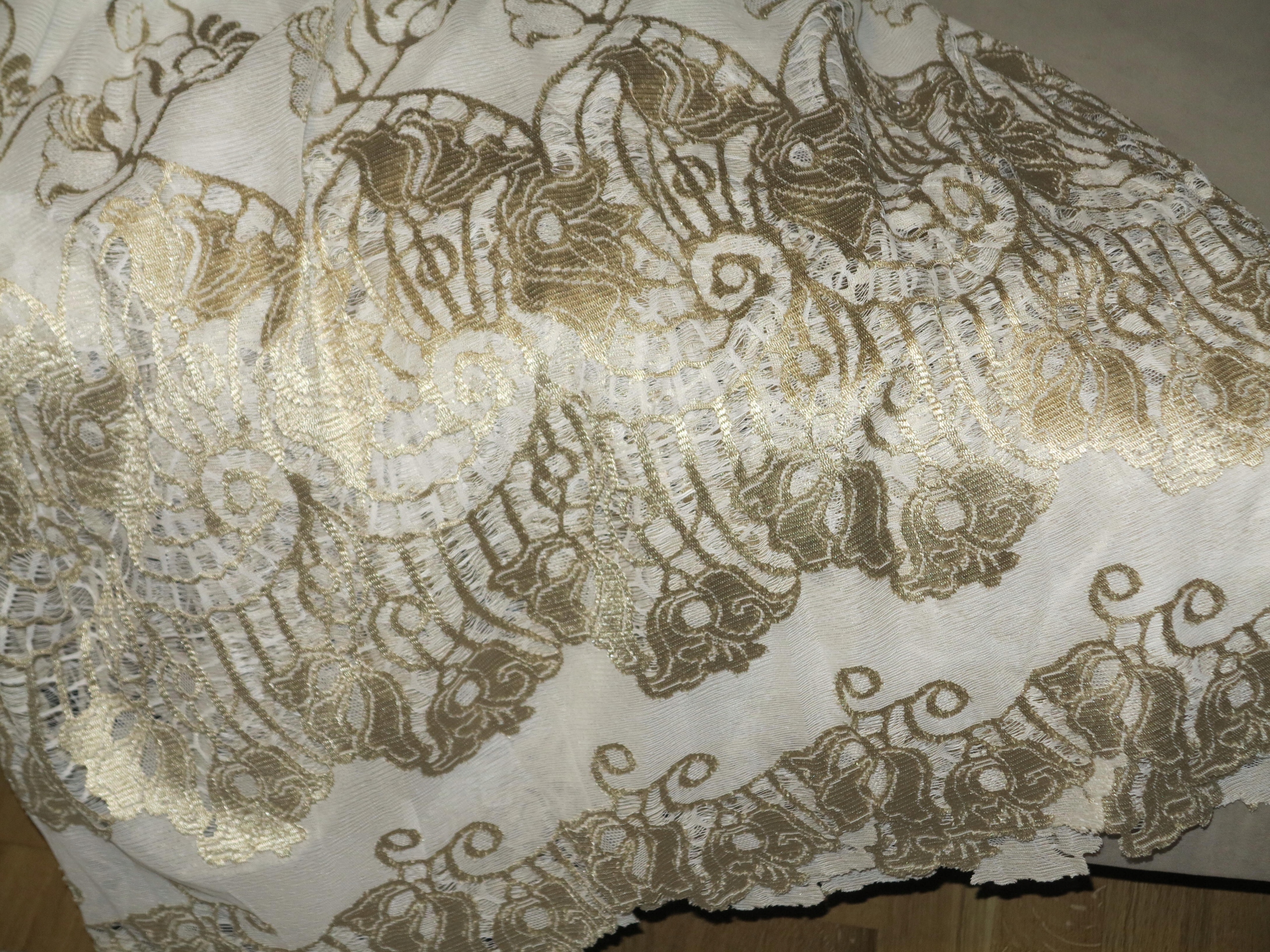 Объект аукциона - чрезвычайно красивая, жаккардовая занавес с декоративными золотыми дизайнами. Занавеска имеет сшитую кастрюлю. Занавес имеет размеры: ширина вниз 585 см, высота 166 см. Занавес используется, но в супер хорошем состоянии. Я честно рекомендую