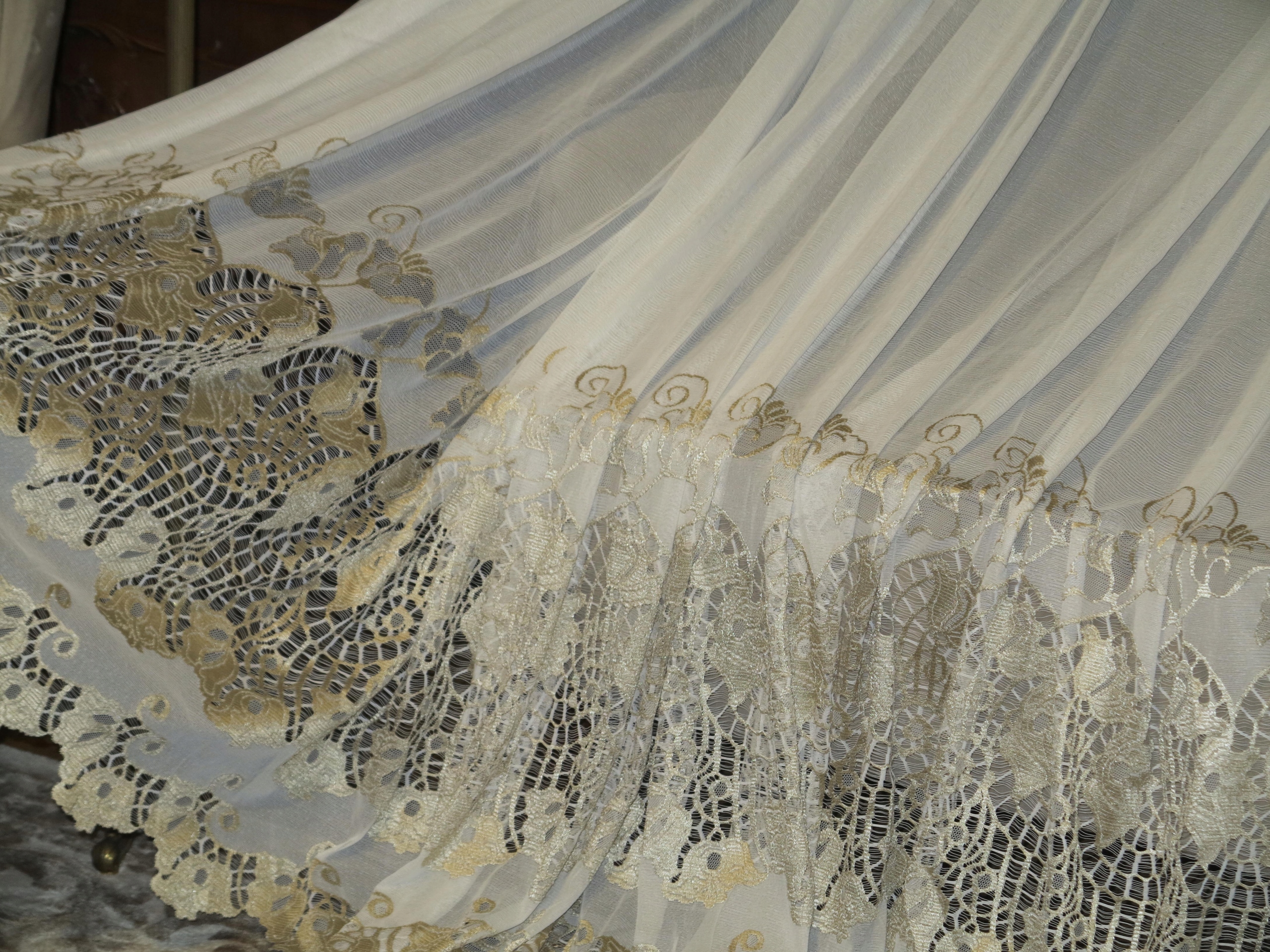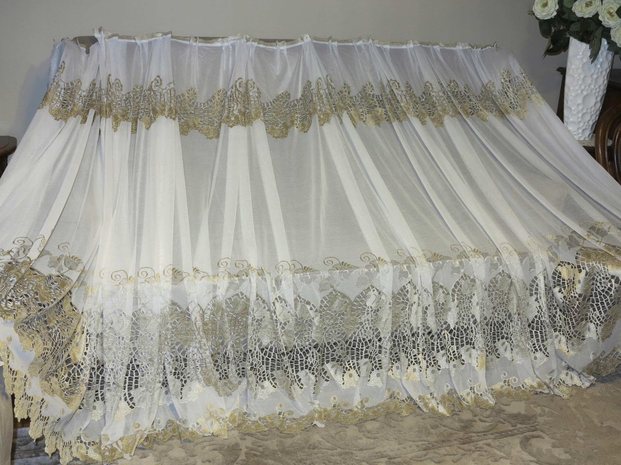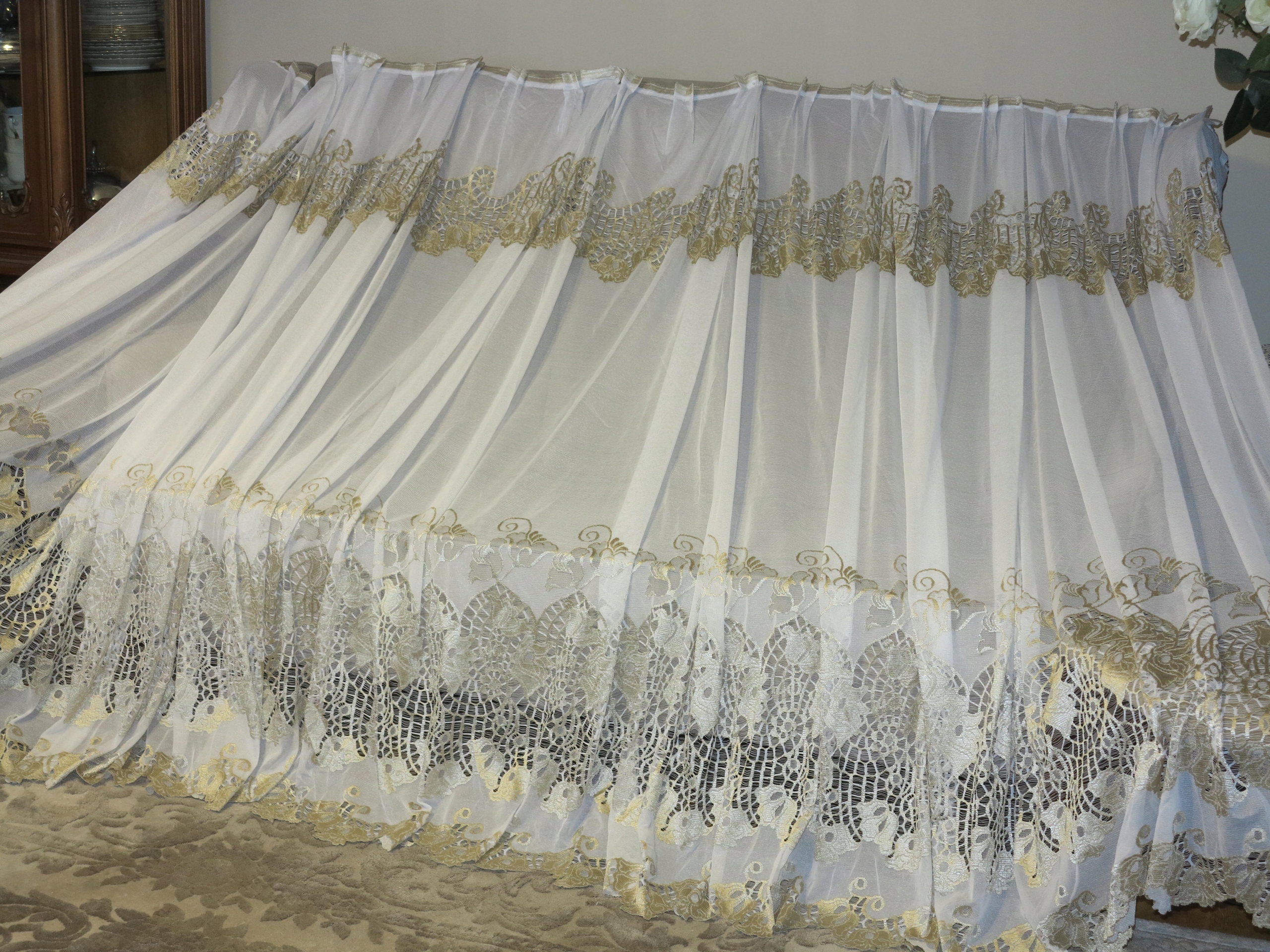замечательный очень широкий занавес, с богатыми золотыми дизайнами. Очень декоративная занавеса