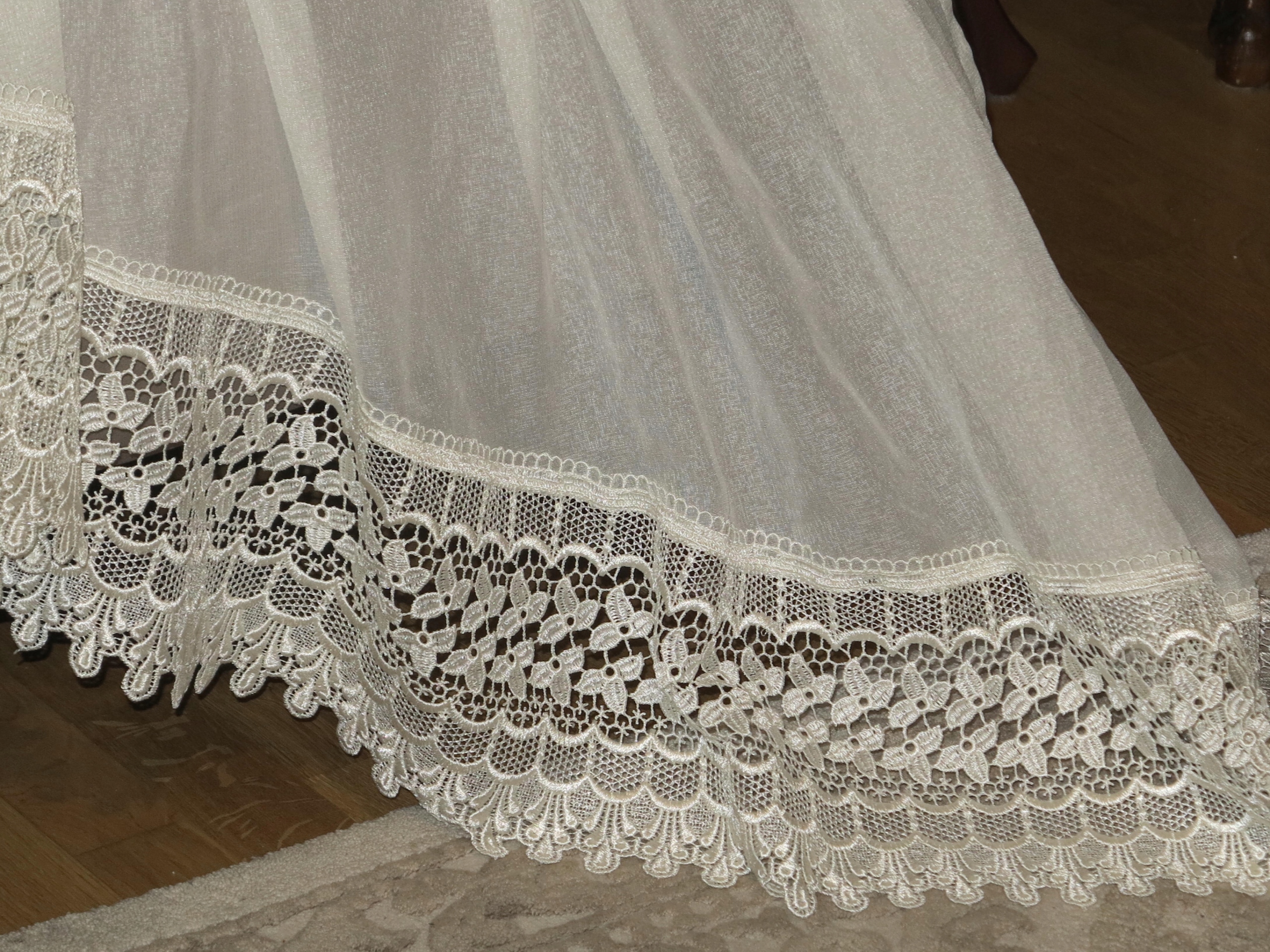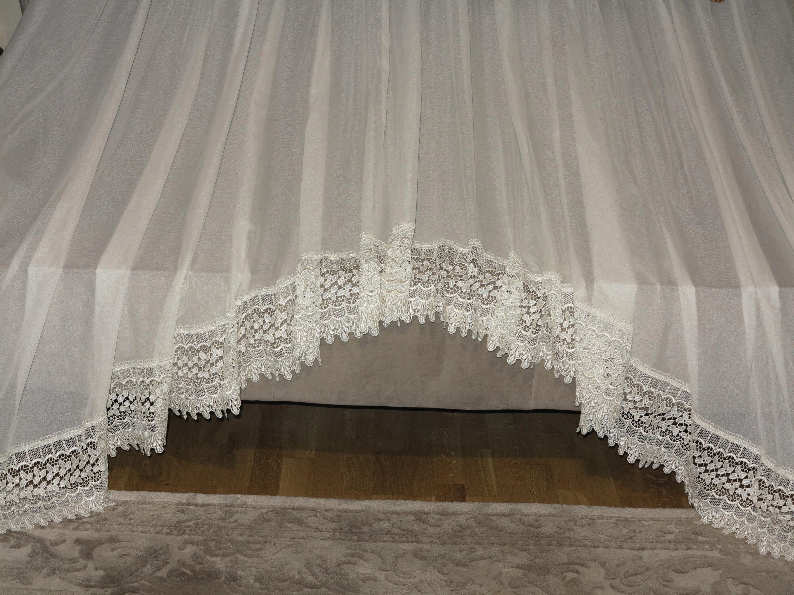 Предмет аукциона – красивая штора с гипюром и декоративным золотым воротником. В реальности занавеска еще красивее. На широкой сборной ленте. Шторы б/у, в отличном состоянии и качестве. Рекомендую.