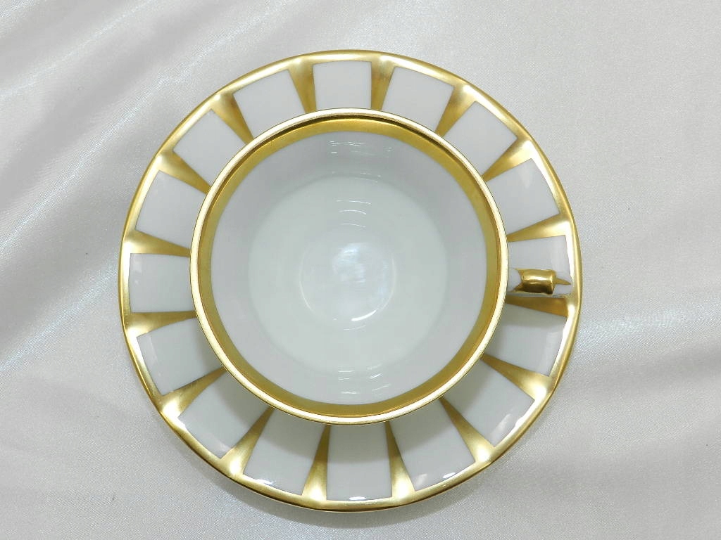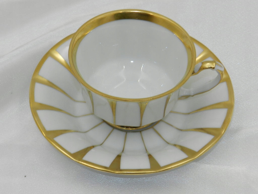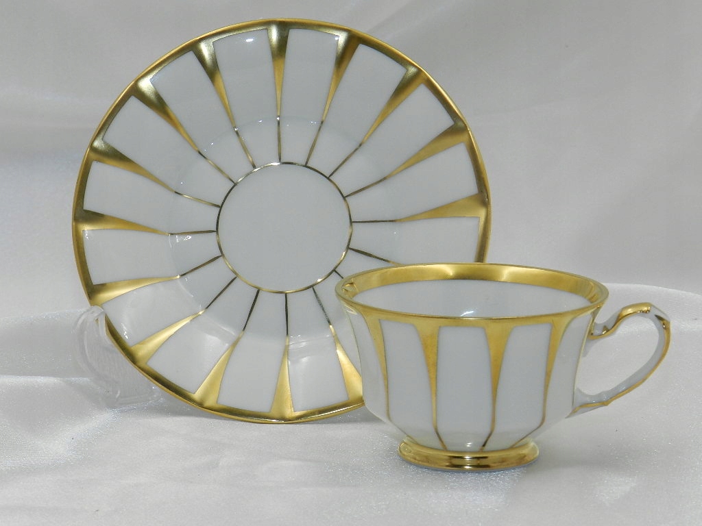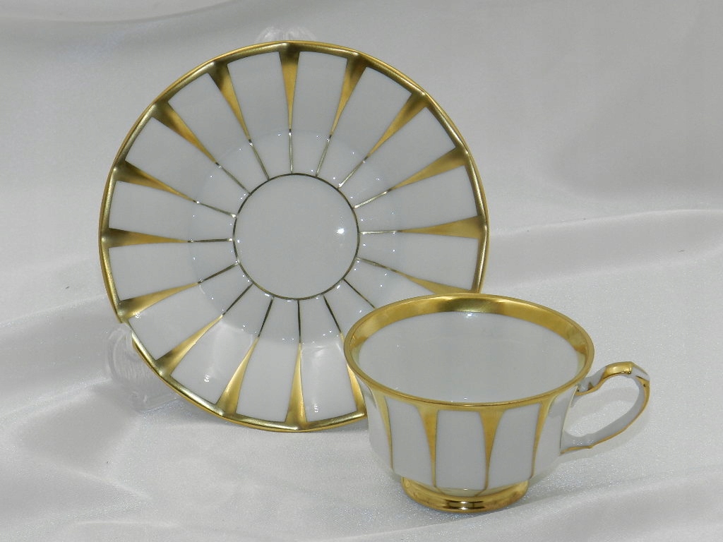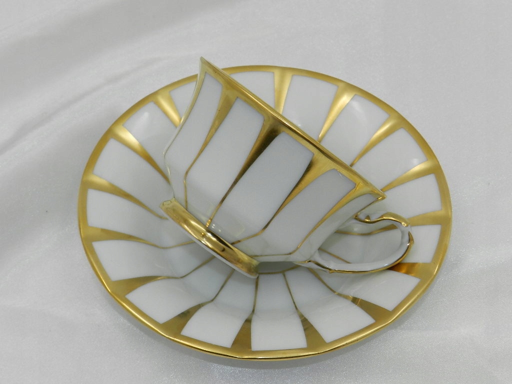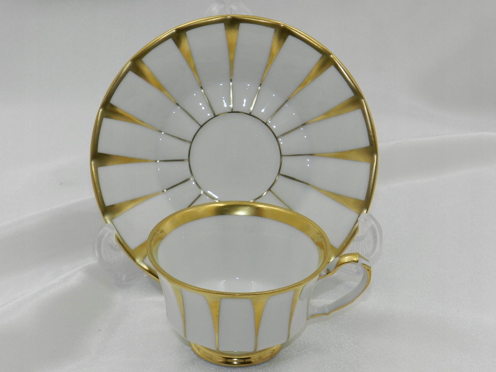 Богато украшен высококачественной позолотой, нанесенной на изящные рефы на чашке и блюдце./p>