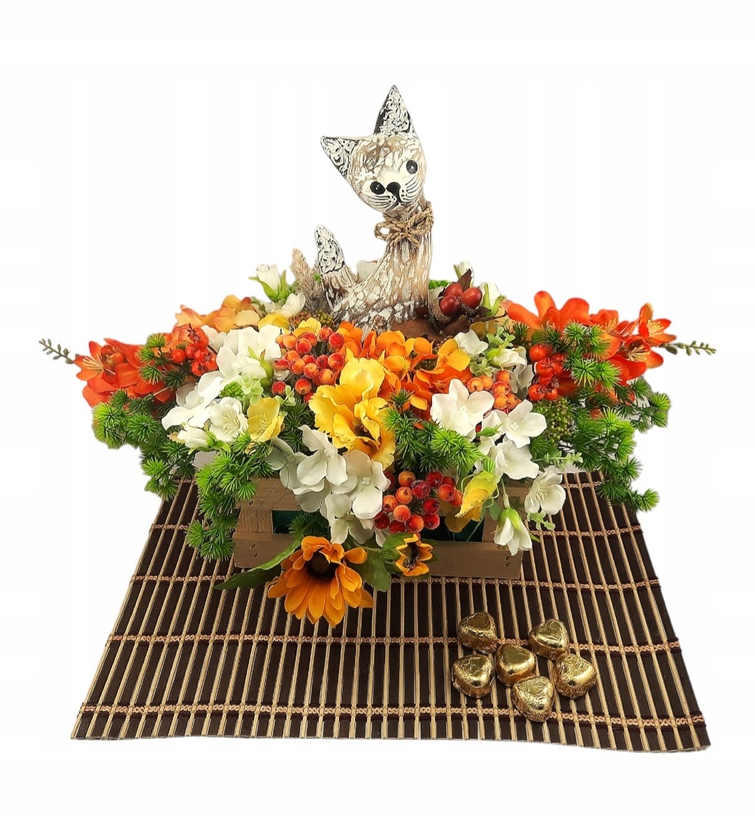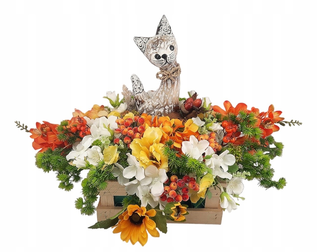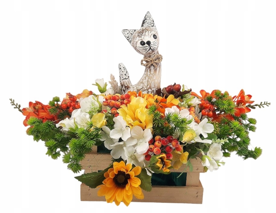 ЧУДОВА КОМПОЗИЦІЯ, ДЕРЕВ'ЯНА Скринька, ПОВНА ЧУДОВИХ КВІТІВ/ ДЕРЕВ'ЯНИЙ КІТ