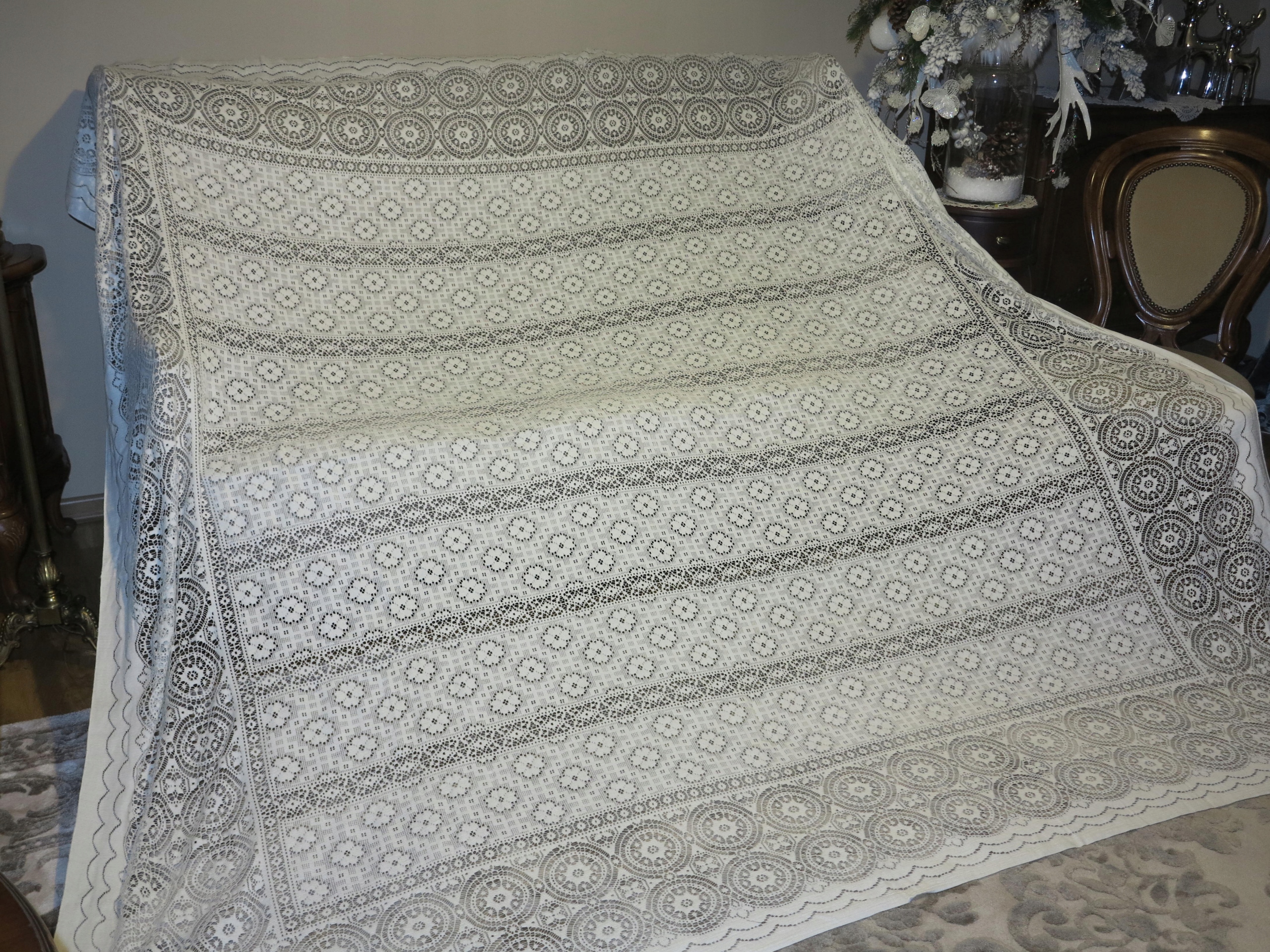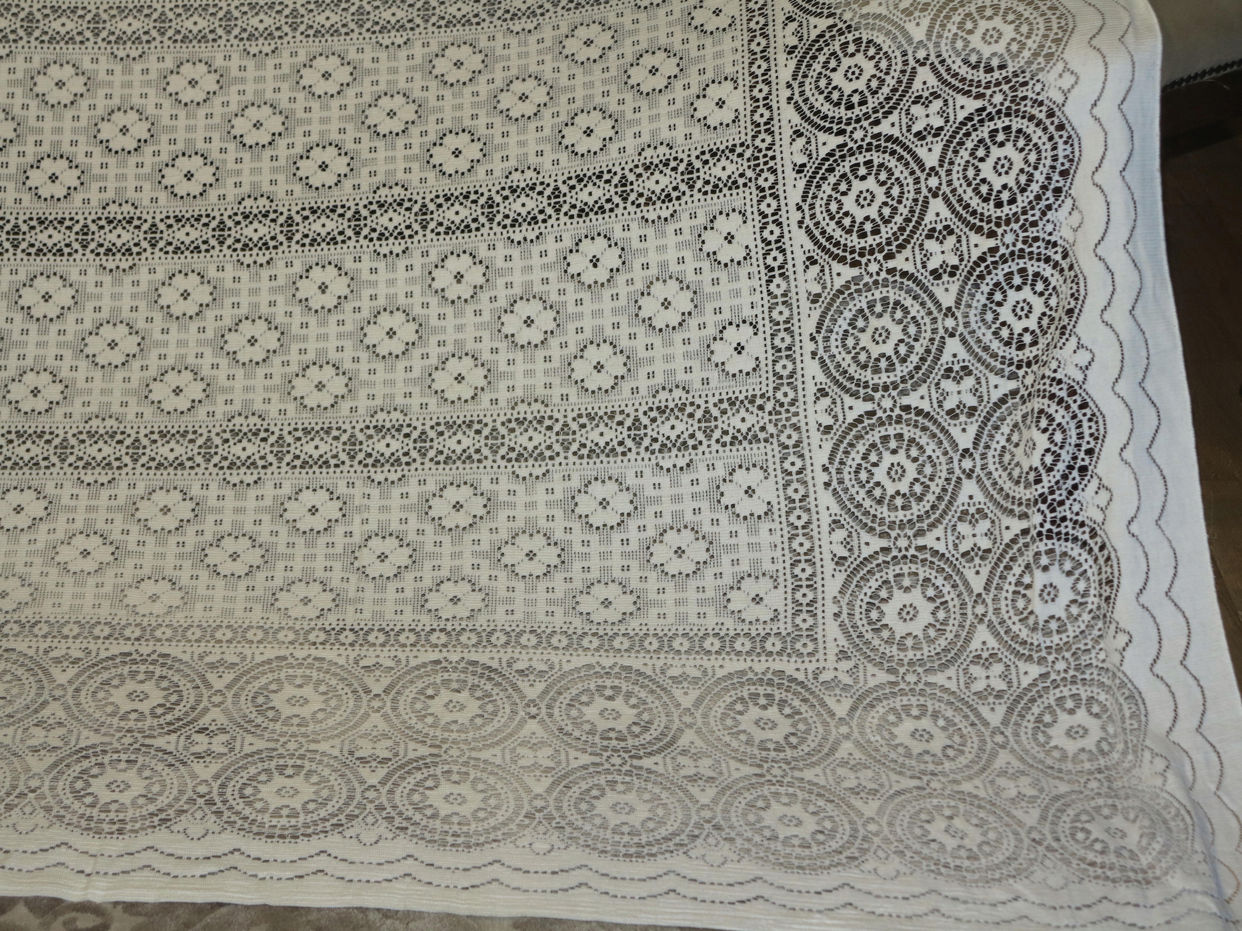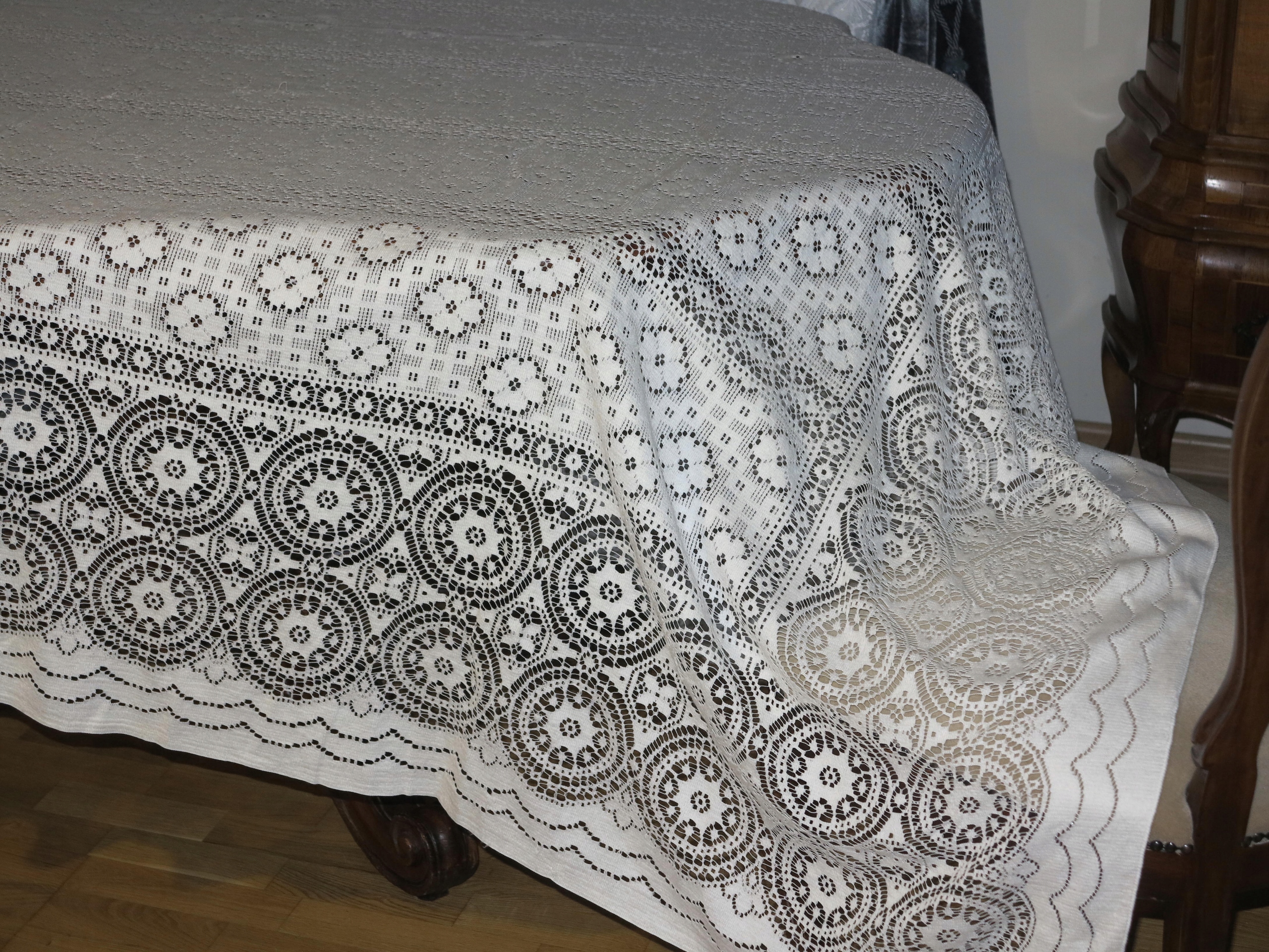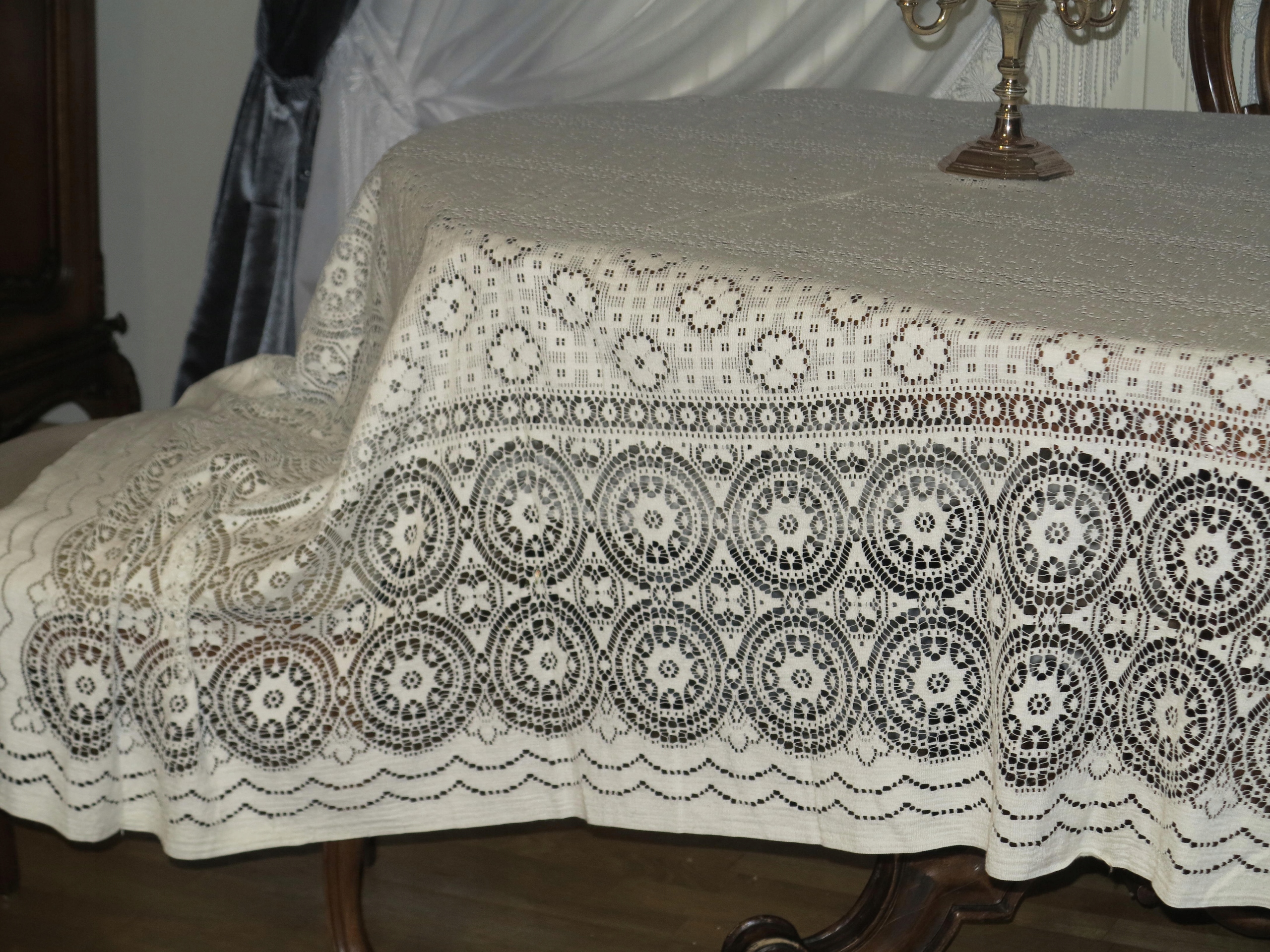 Предмет аукциона – красивая, большая кружевная скатерть или покрывало на двуспальную кровать кремово-белого цвета. Покрывало б/у, в очень хорошем состоянии. Рекомендую, уникальная, красивая вещь.