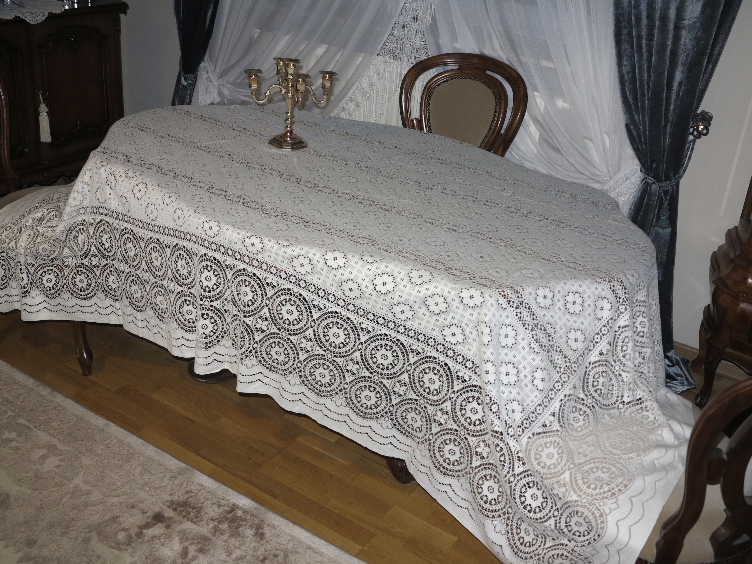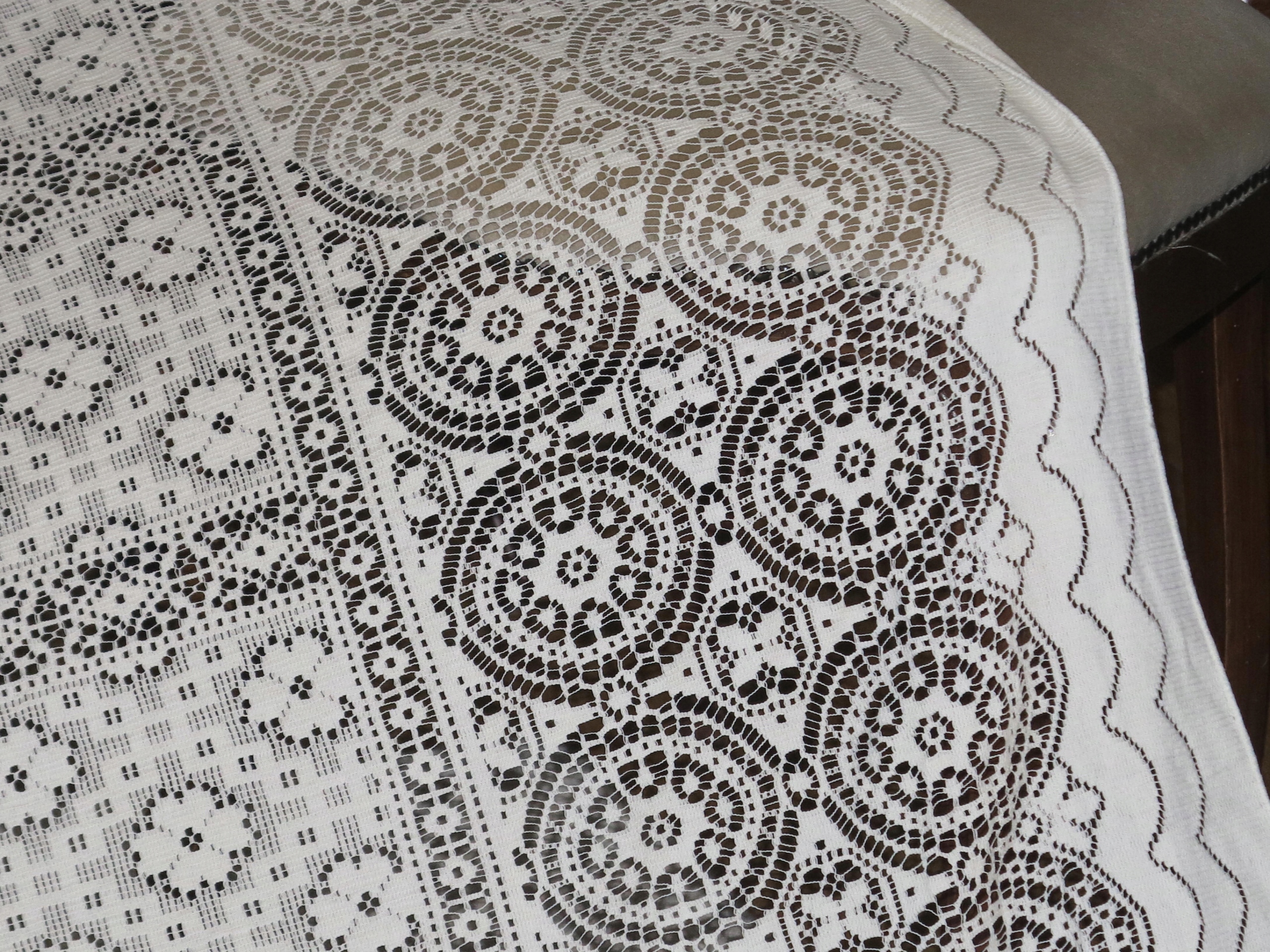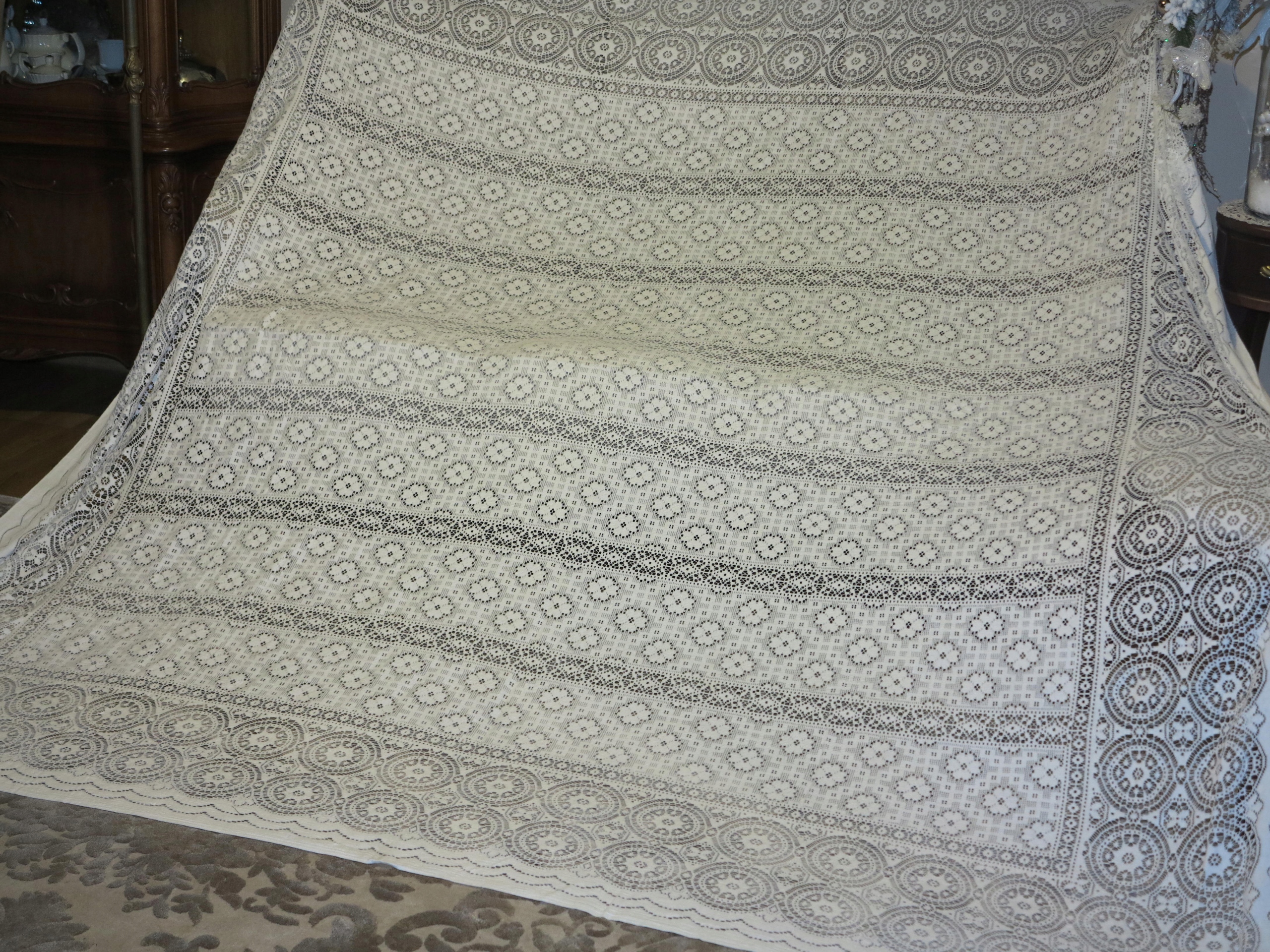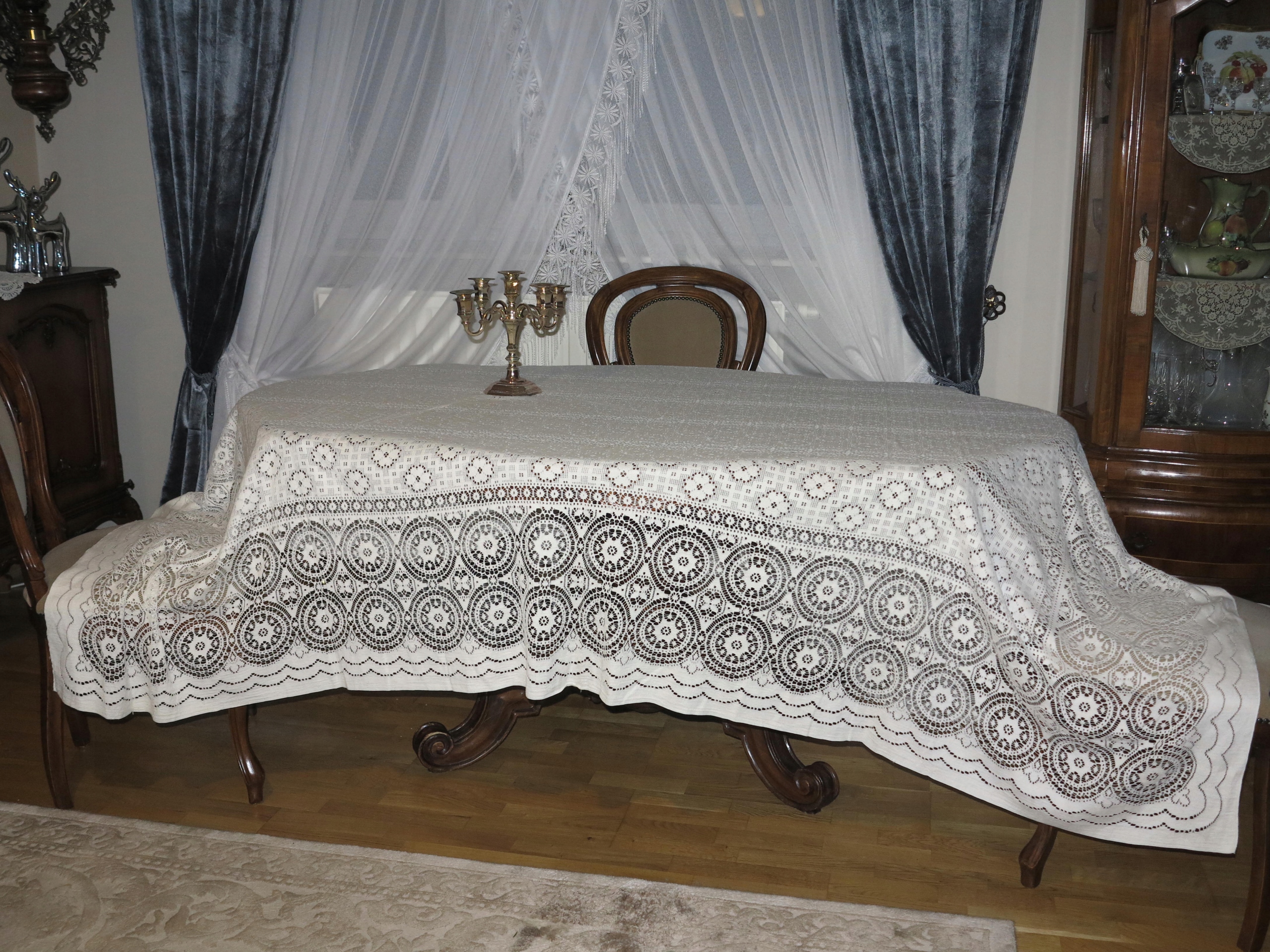 Предмет аукциона – красивая, большая кружевная скатерть или покрывало на двуспальную кровать кремово-белого цвета. Покрывало б/у, в очень хорошем состоянии. Рекомендую, уникальная, красивая вещь.