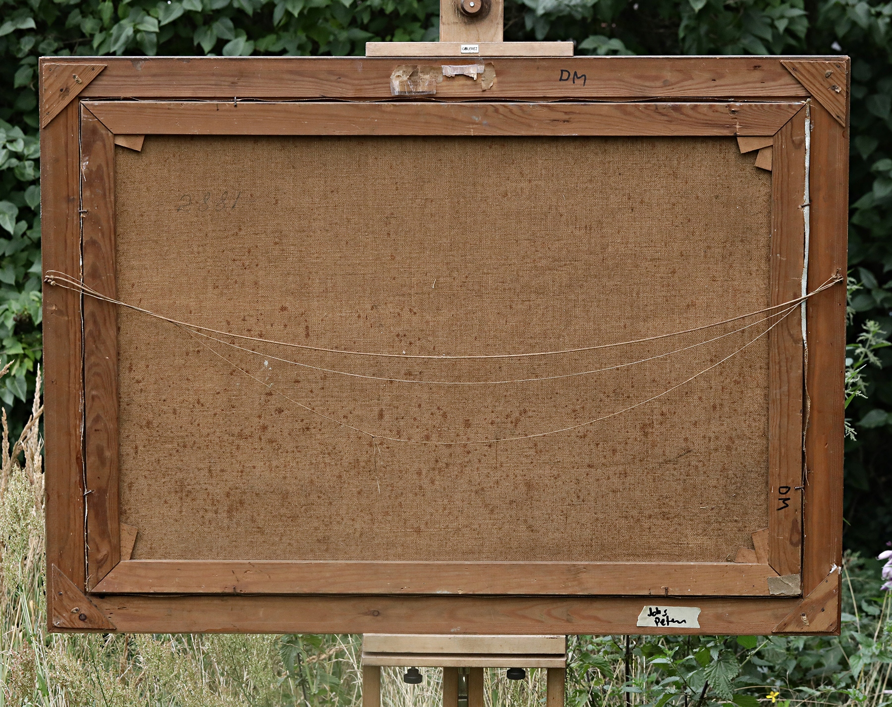Большая масляная живопись - сельский пейзаж с фермой и снопами, Дания