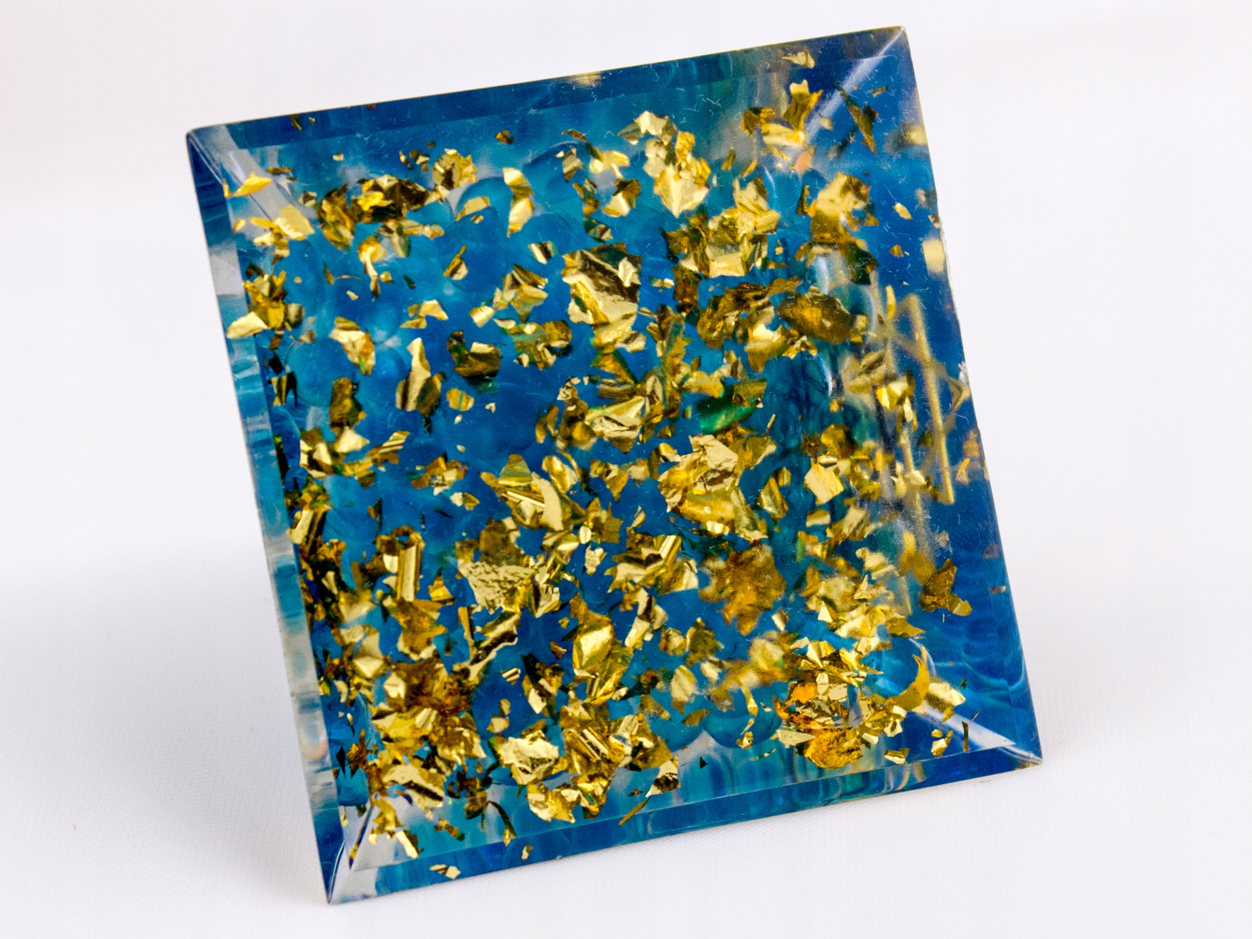 Красивая пирамида Оргонит - Белоснежный горный кварц, синее стекло гравий, красивый декор из натуральной смолы с блестящей золотой фольгой, излучающий энергию, дарующую хорошее здоровье, нейтрализующую плохую энергию, очищающую окружающую среду.