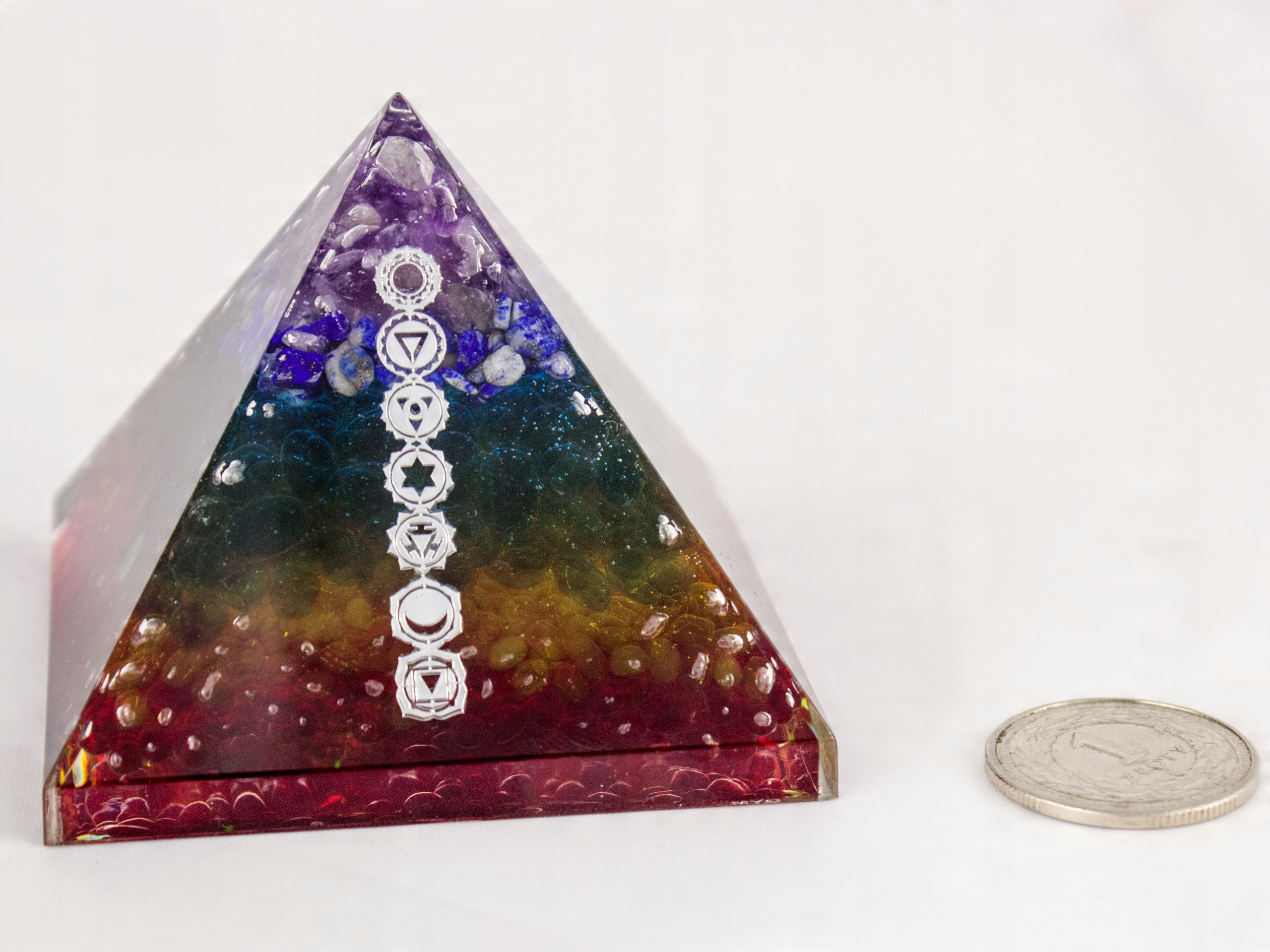 Эта пирамида оказывает благотворное воздействие на каждую из семи чакр, а благодаря камням и минералам, которые не только красиво выглядят, но и обладают собственной силой, энергией и целительством, усиливают ценный эффект очищения и разблокировки чакр, приносящий добро, счастье, здоровье.