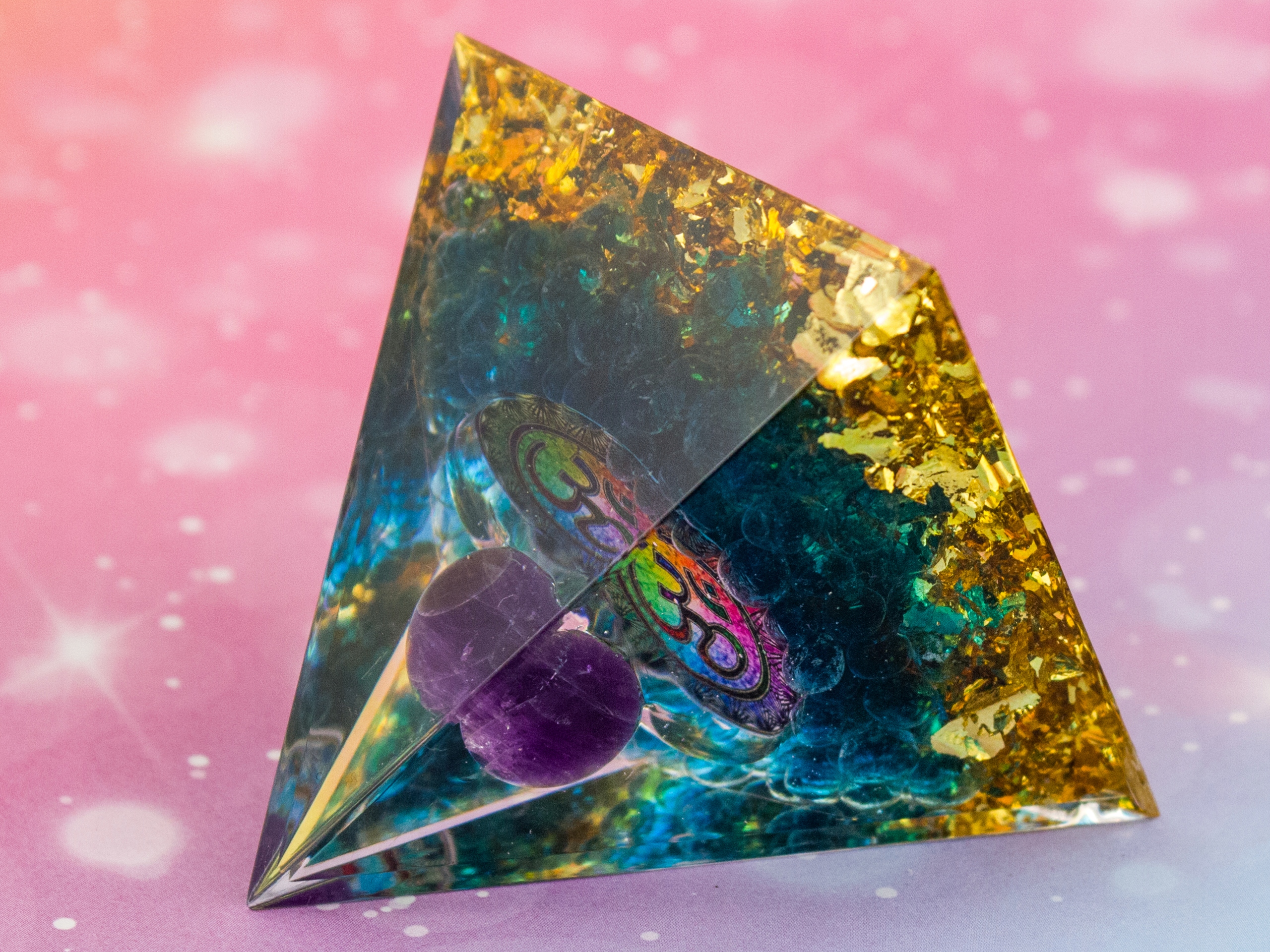 Почувствуйте благотворное воздействие влияние этой уникальной пирамиды из оргоита: