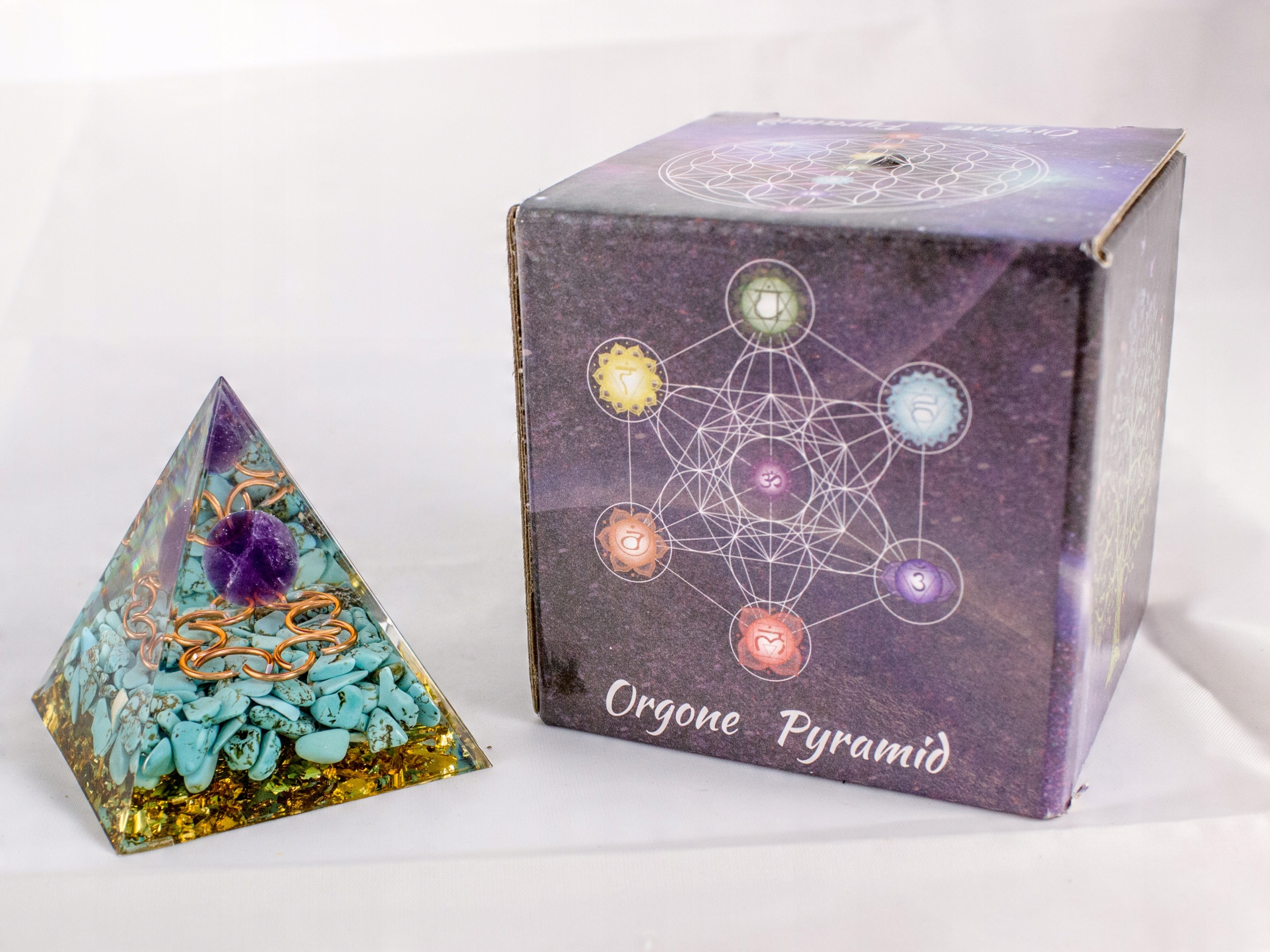 ЧУДОВА ПІРАМІДА ОРГОНІТ БІРЮЗА АМЕТИСТ МІДЬ 5см
