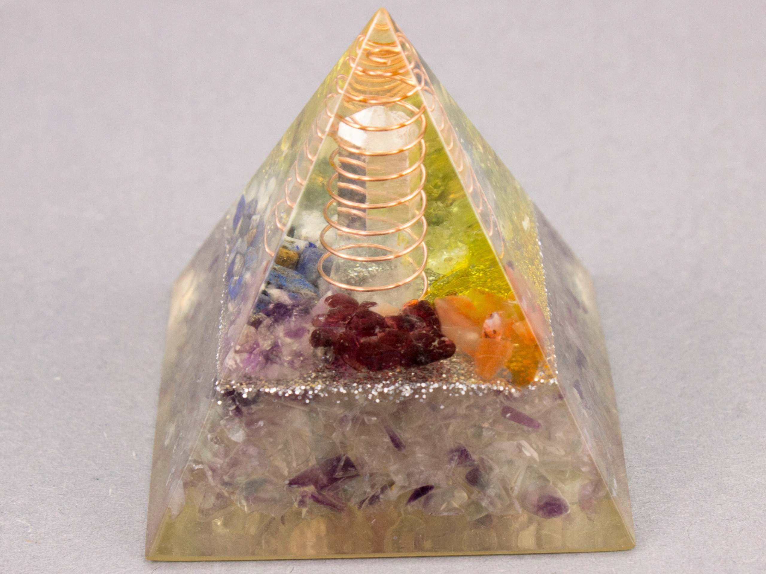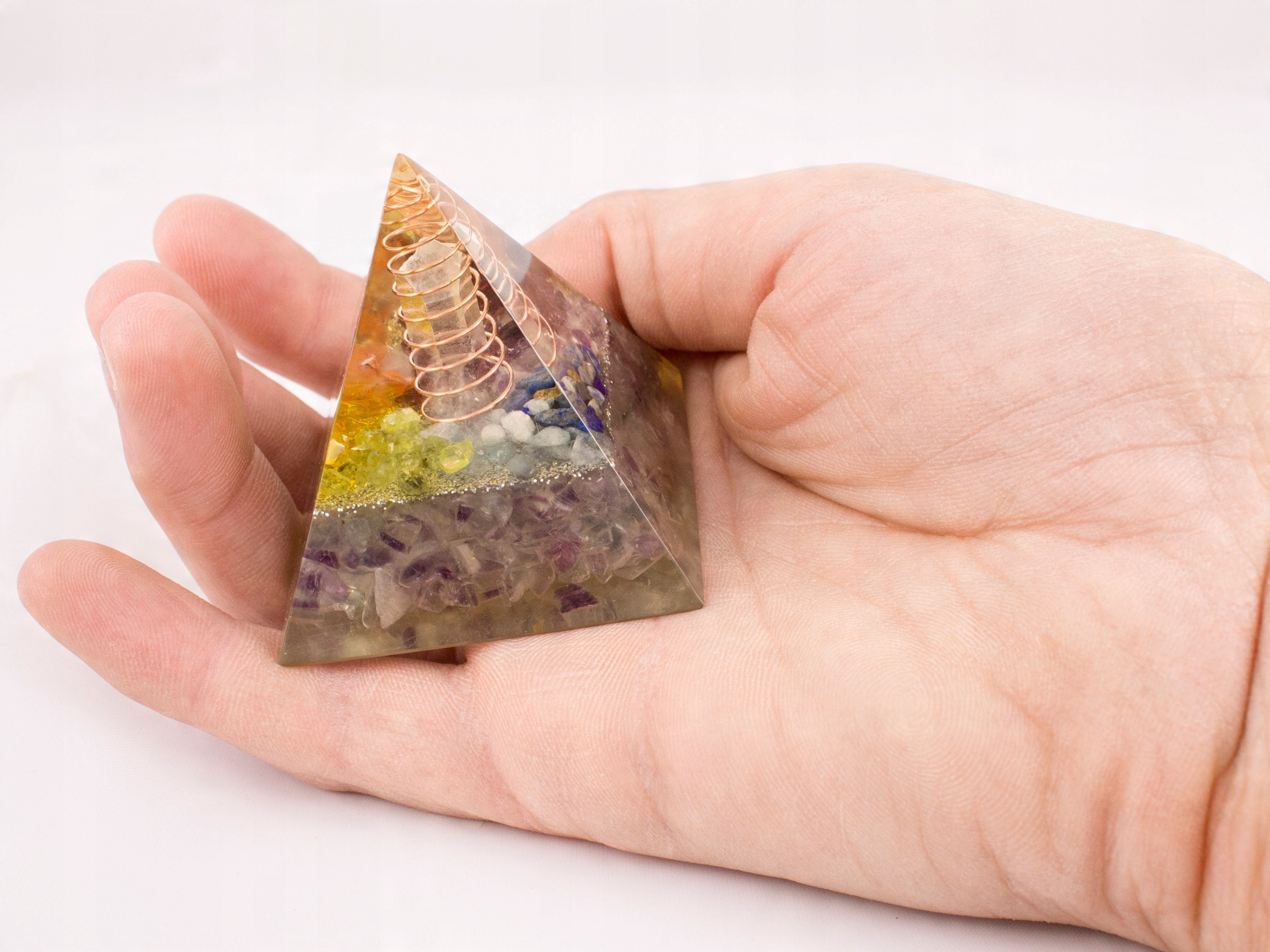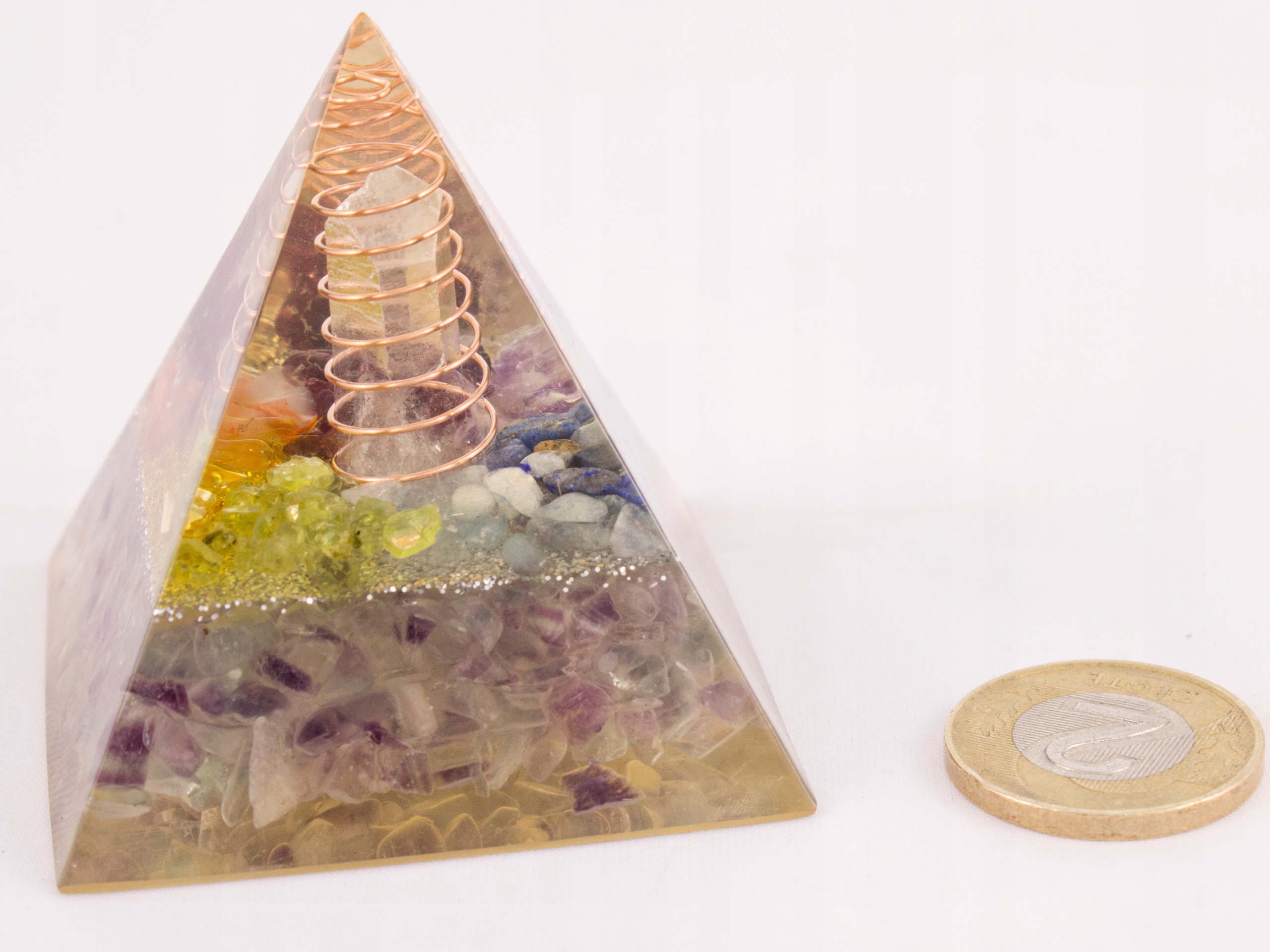 Эта пирамида оказывает благотворное воздействие на каждую из семи чакр, а благодаря камням и минералам, которые не только красиво выглядят, но и обладают собственной силой, энергией и целительством, усиливают ценный эффект очищения и разблокировки чакр, приносящий добро, счастье, здоровье.
