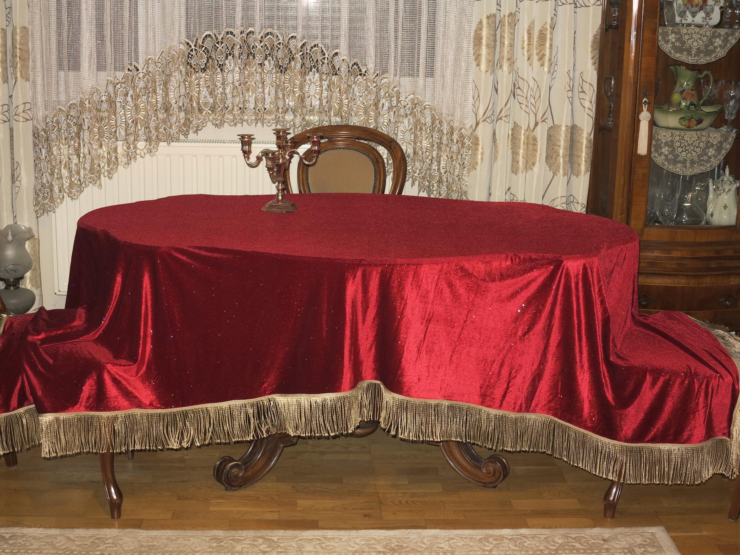 Предмет аукциона – необыкновенно красивая бархатная скатерть фиолетового цвета, переливающаяся золотыми крапинками. Размеры скатерти: длина 223см, ширина 156см + бахрома 11см. Скатерть б/у, в очень хорошем состоянии. Рекомендую, станет прекрасным украшением новогоднего стола. Рекомендую.