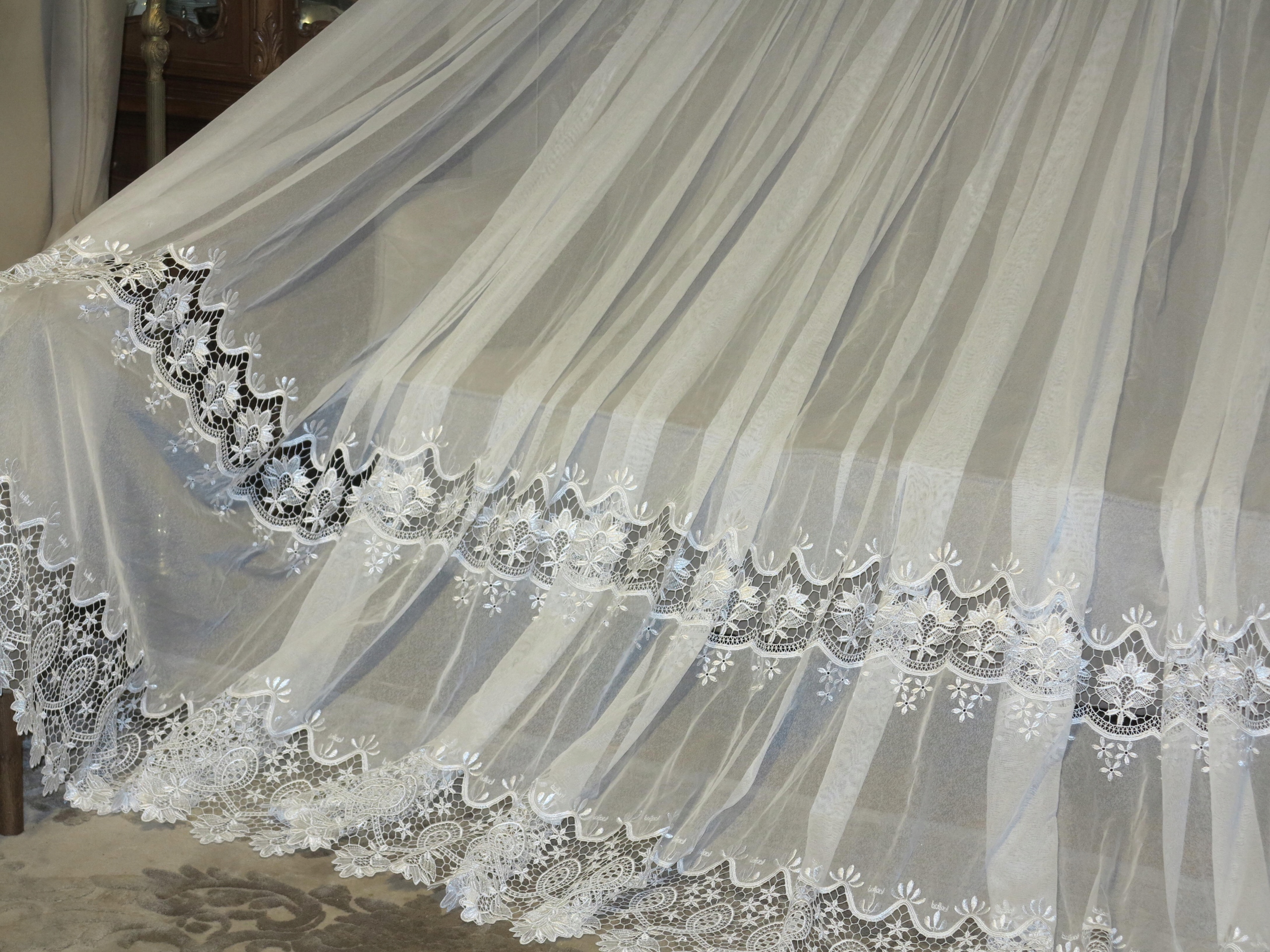 ЧУДЕСНАЯ ШИРОКАЯ БЕЛАЯ ШТОРА, ЖЕМЧУЖНАЯ ВЫШИВКА ГИПЮРА, ОТЛИЧНОЕ СОСТОЯНИЕ 605/180