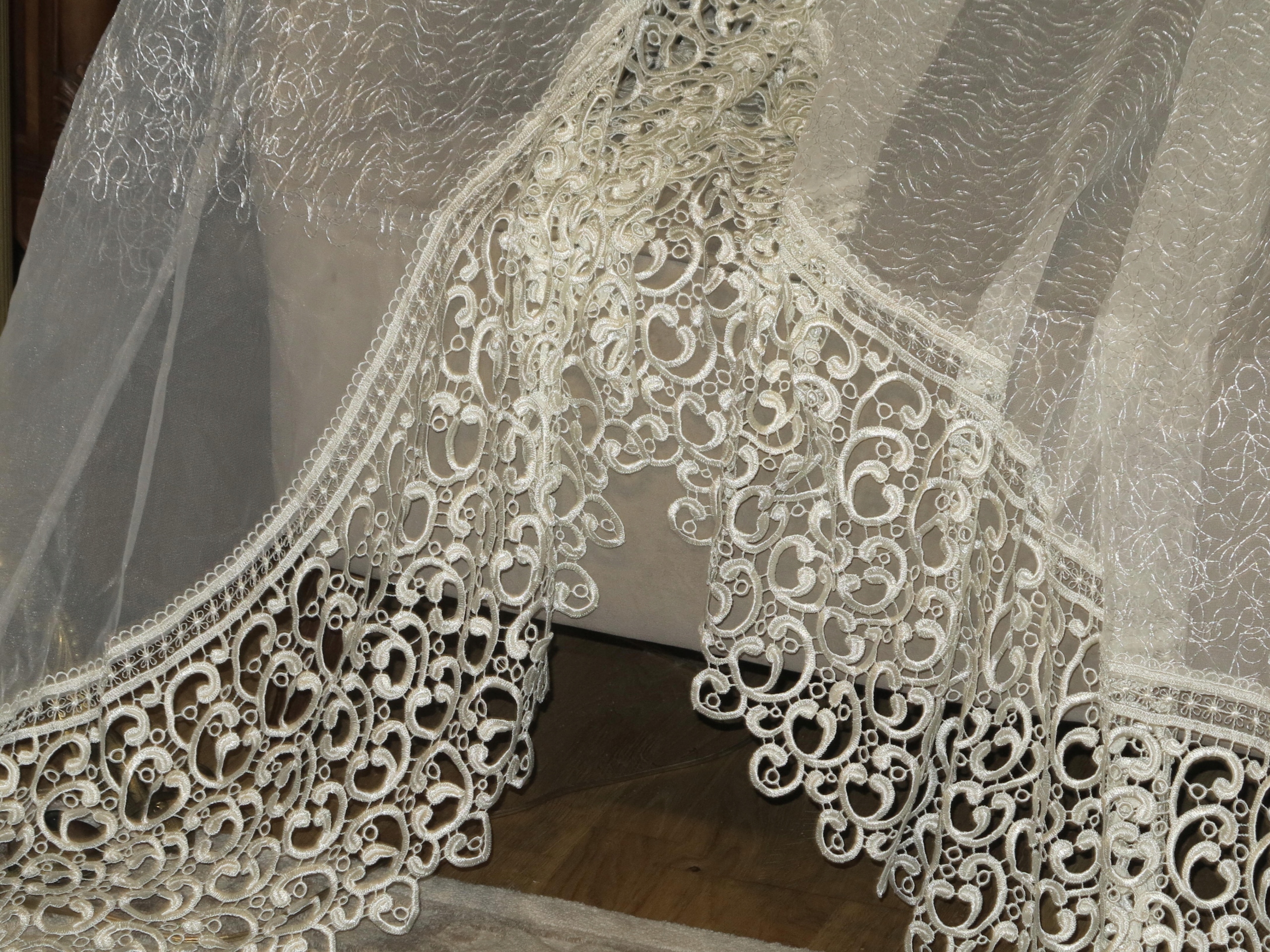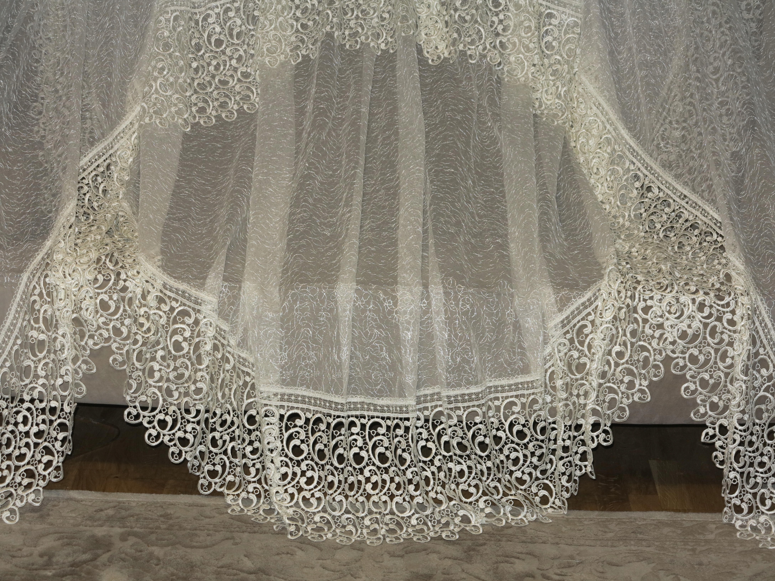 ЧУДОВА ШТОРА, ДЕКОРИРАНА БАГАТО ГІПЮРОМ, ЯК НОВИЙ ЕКРЮ №1