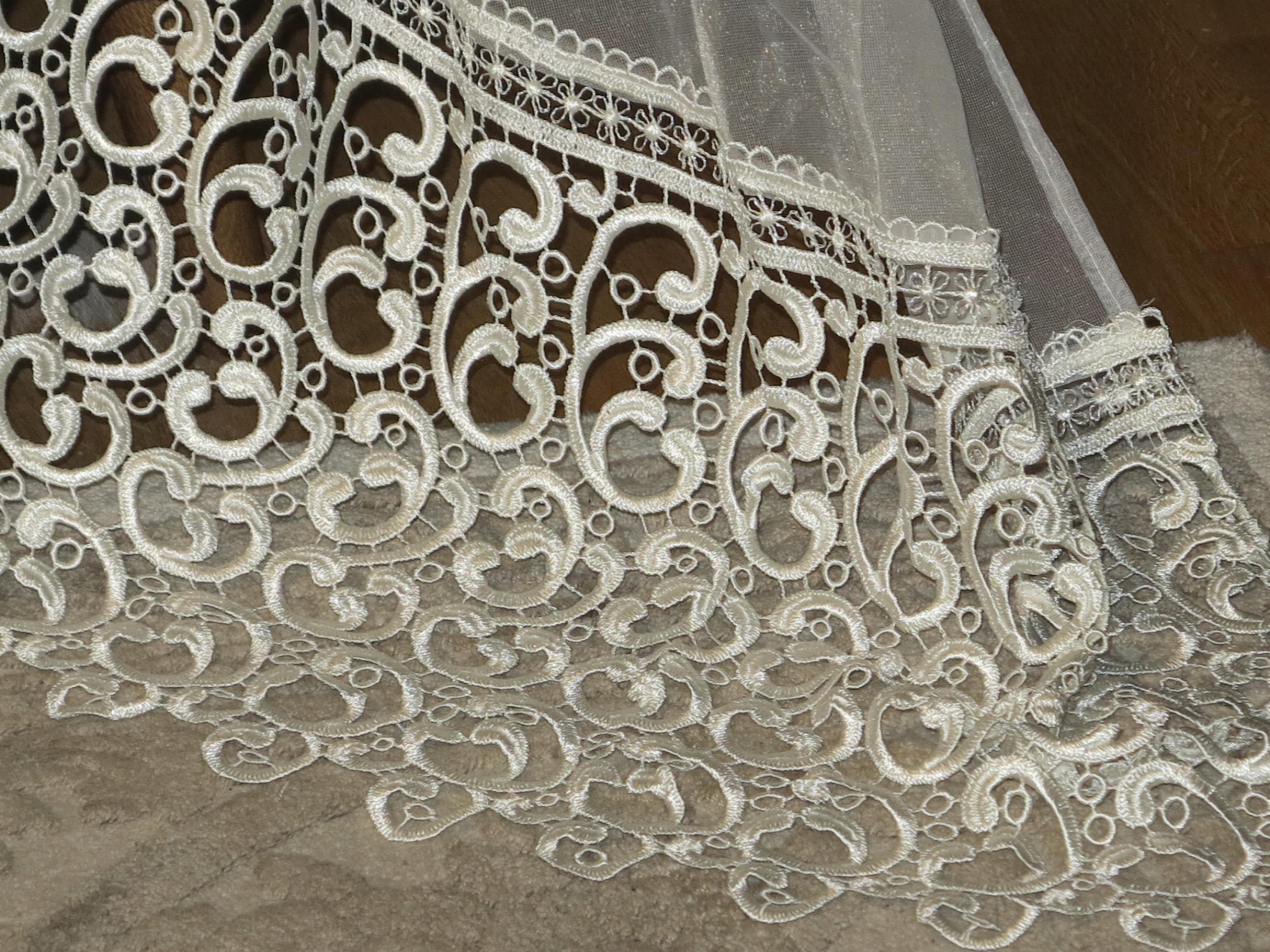 Предмет аукциона - исключительно красивая штора с жемчужным гипюром и очень декоративной вышивкой. В реальности занавеска еще красивее. На сборе ленты. Шторы б/у, в отличном состоянии и качестве. Рекомендую.