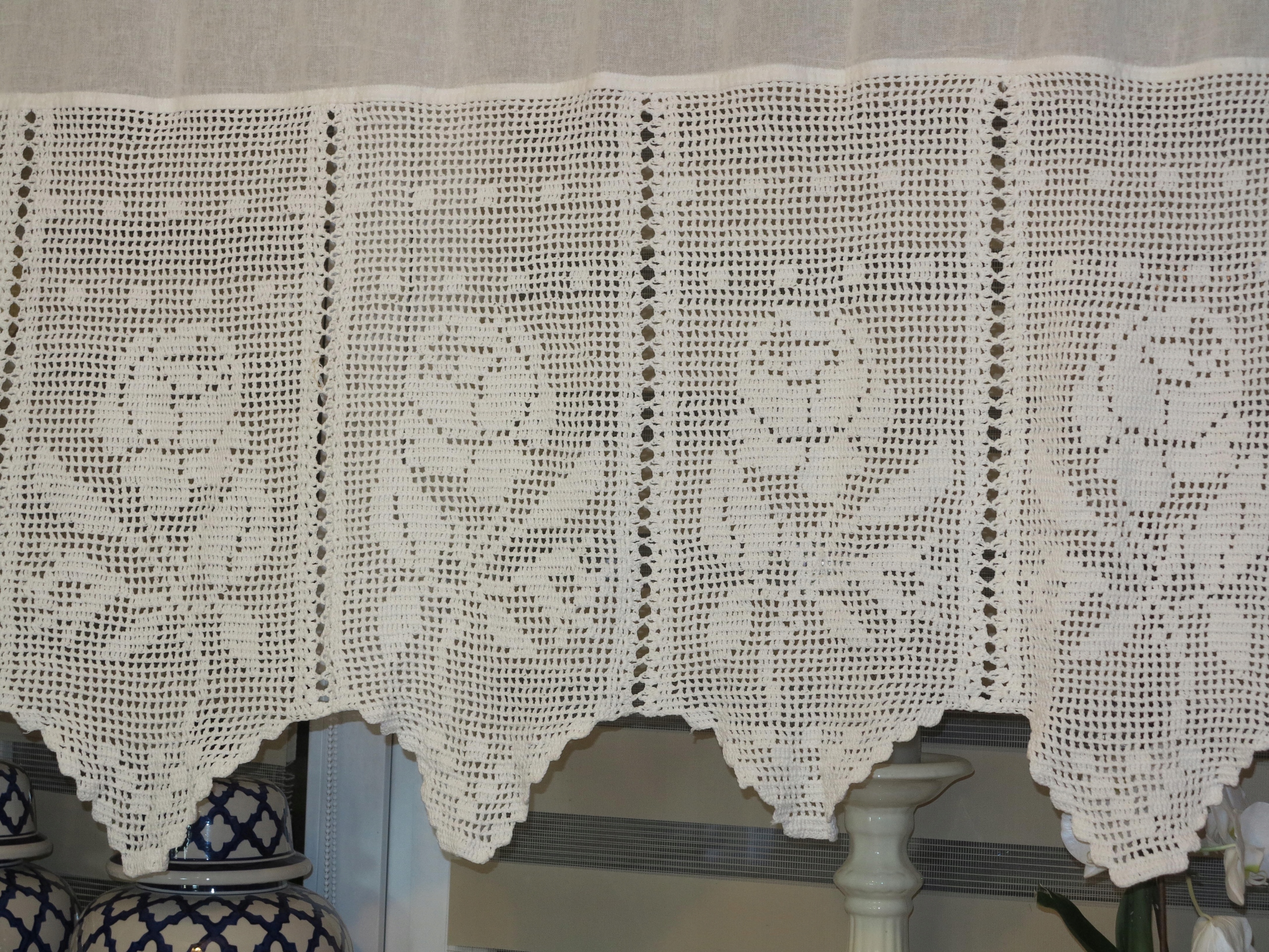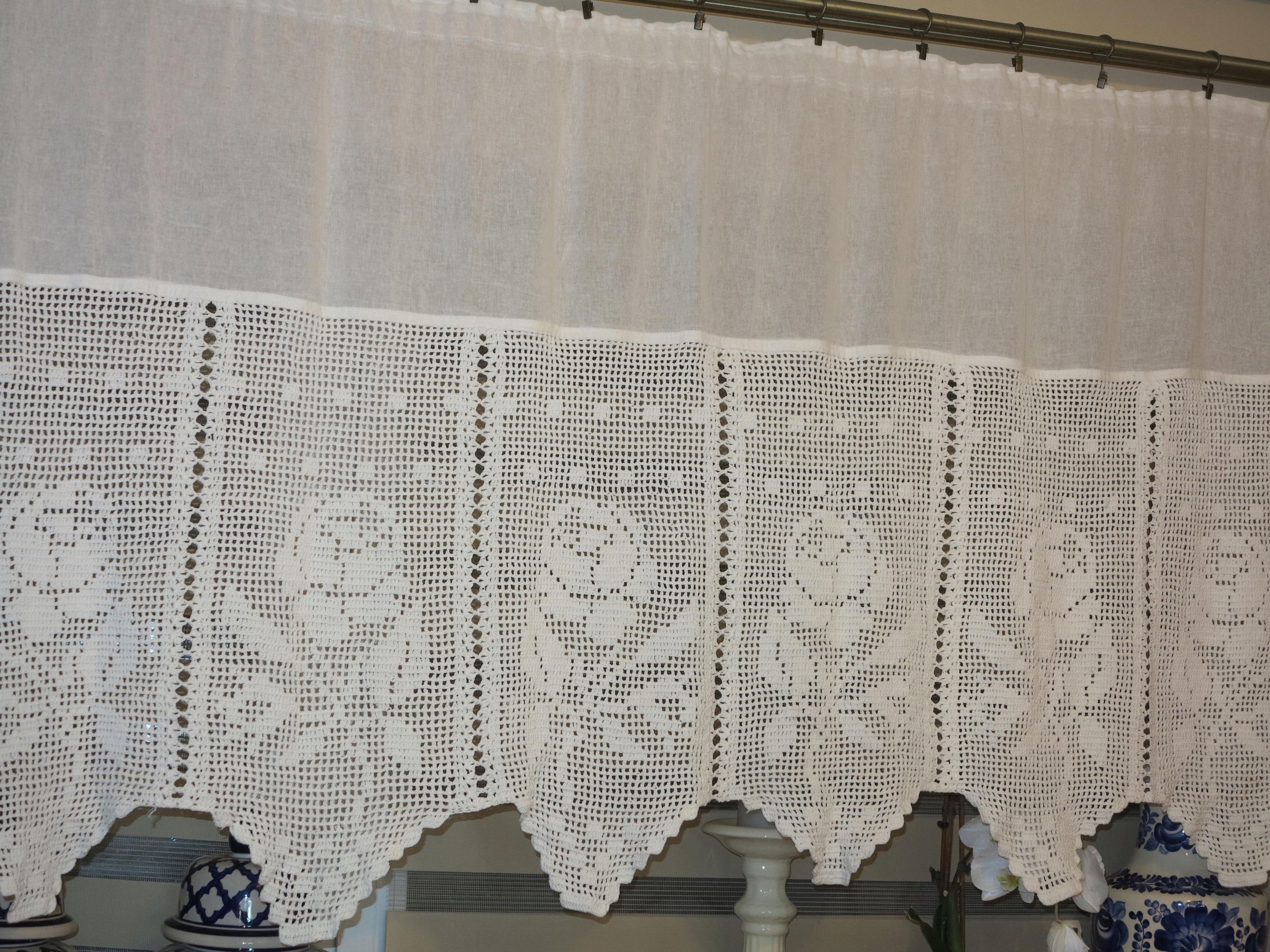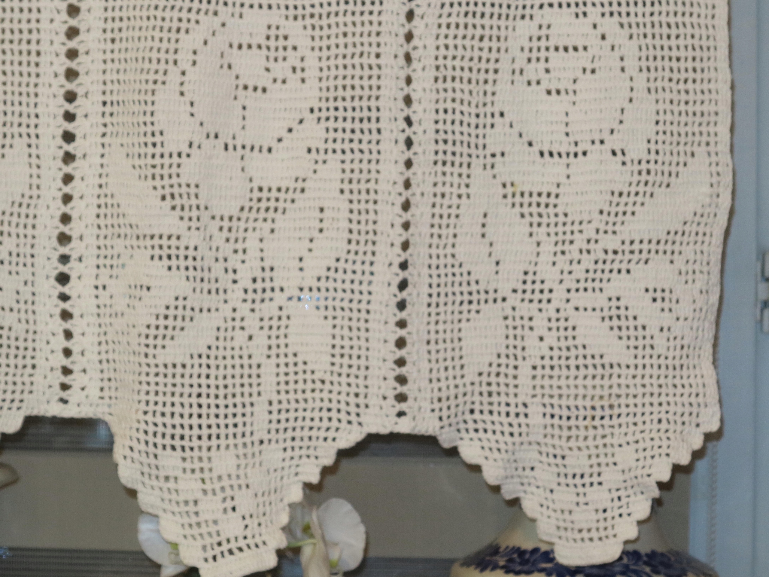 ЧУДЕСНАЯ ДЕКОРАТИВНАЯ ШТОРА С ШИРОКИМ РУЧНЫМ ВЯЗАНИЕМ КРЮЧКОМ. ТОНКЕ ХОЛСТ СВЕРХУ. КРЕМОВО-БЕЛЫЙ ЦВЕТ