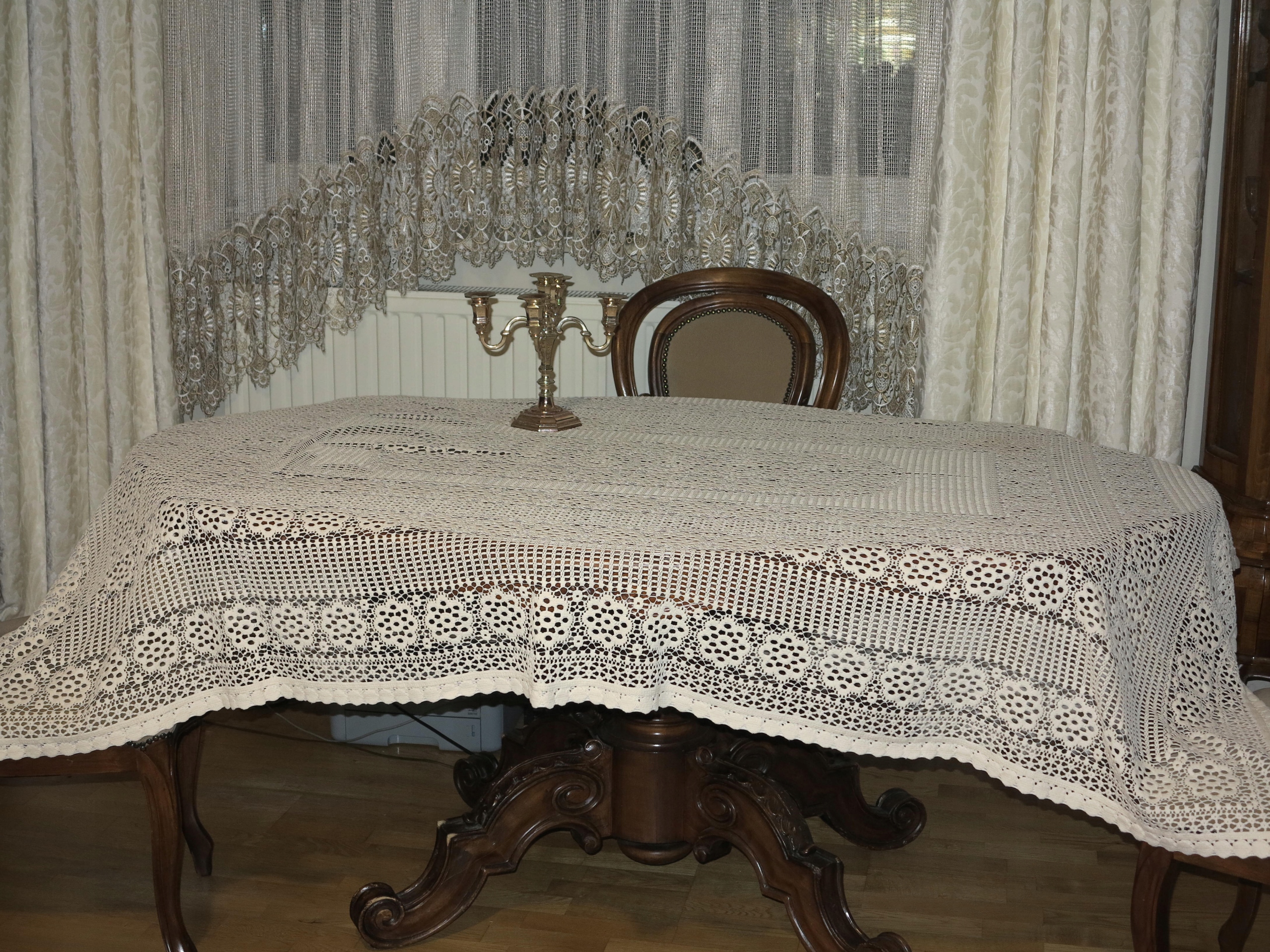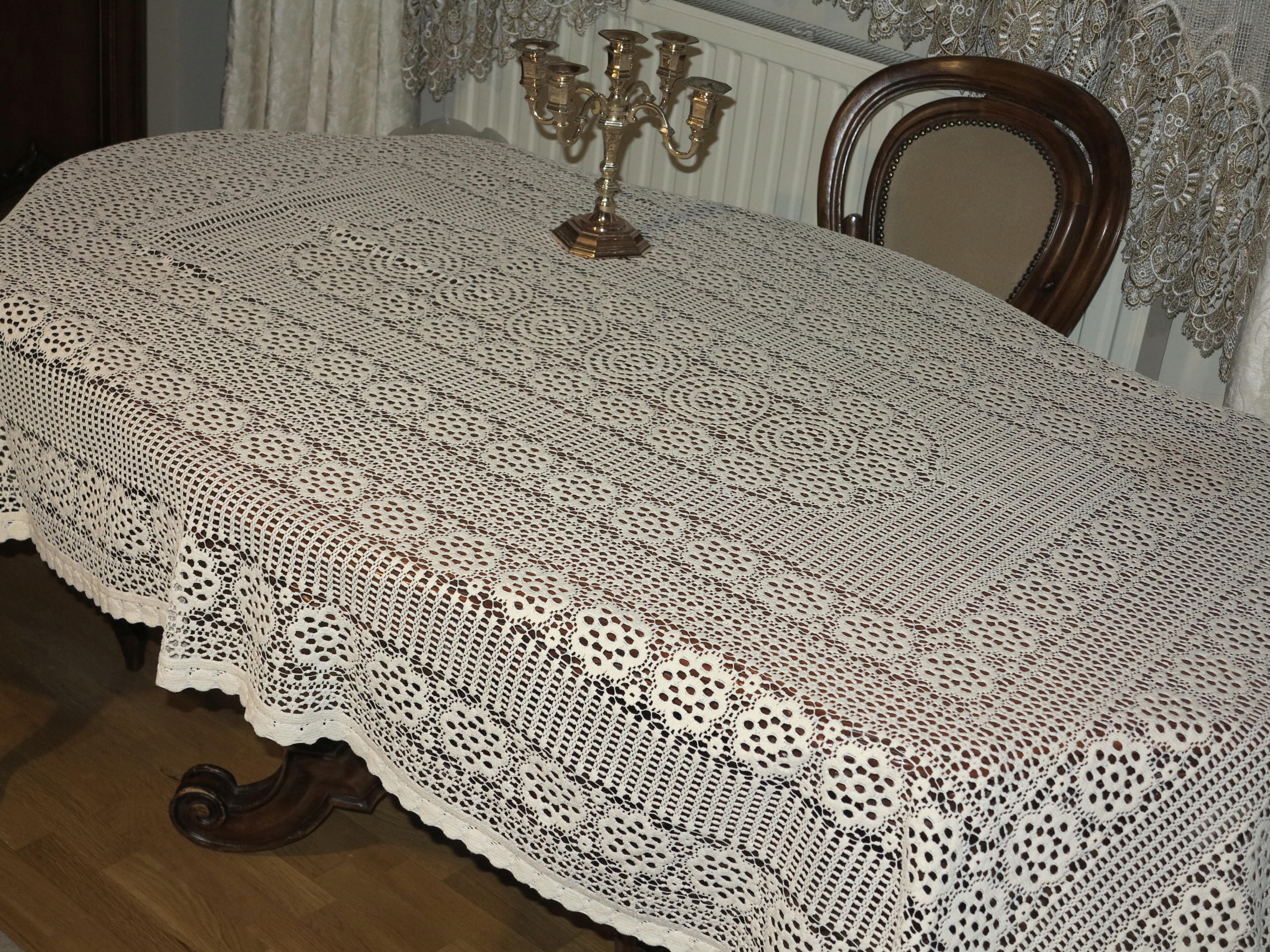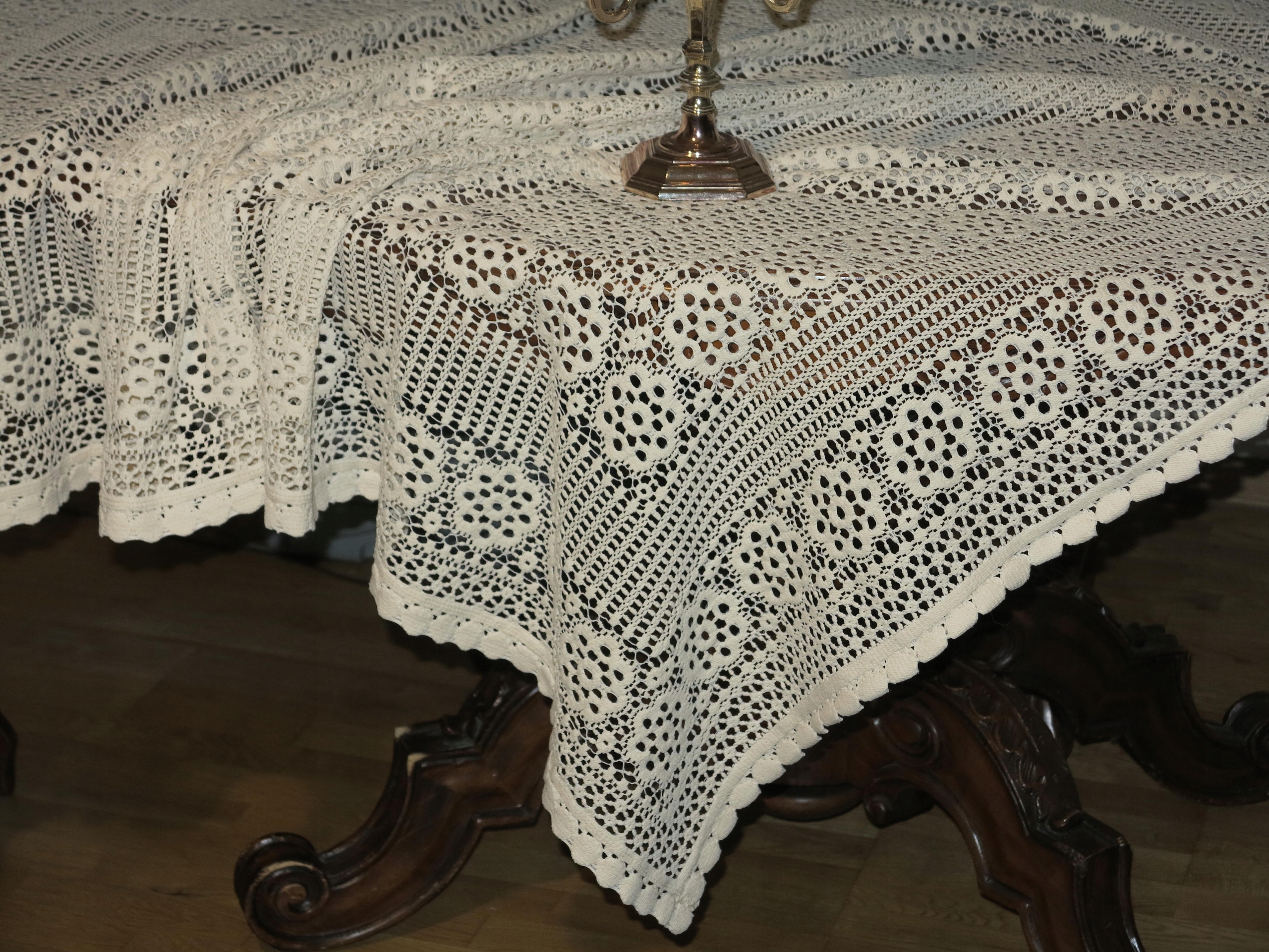 Предмет аукциона – исключительно красивый, более плотная скатерть из хлопкового кружева. Б/у, в очень хорошем состоянии. Рекомендую, уникальная, красивая вещь.