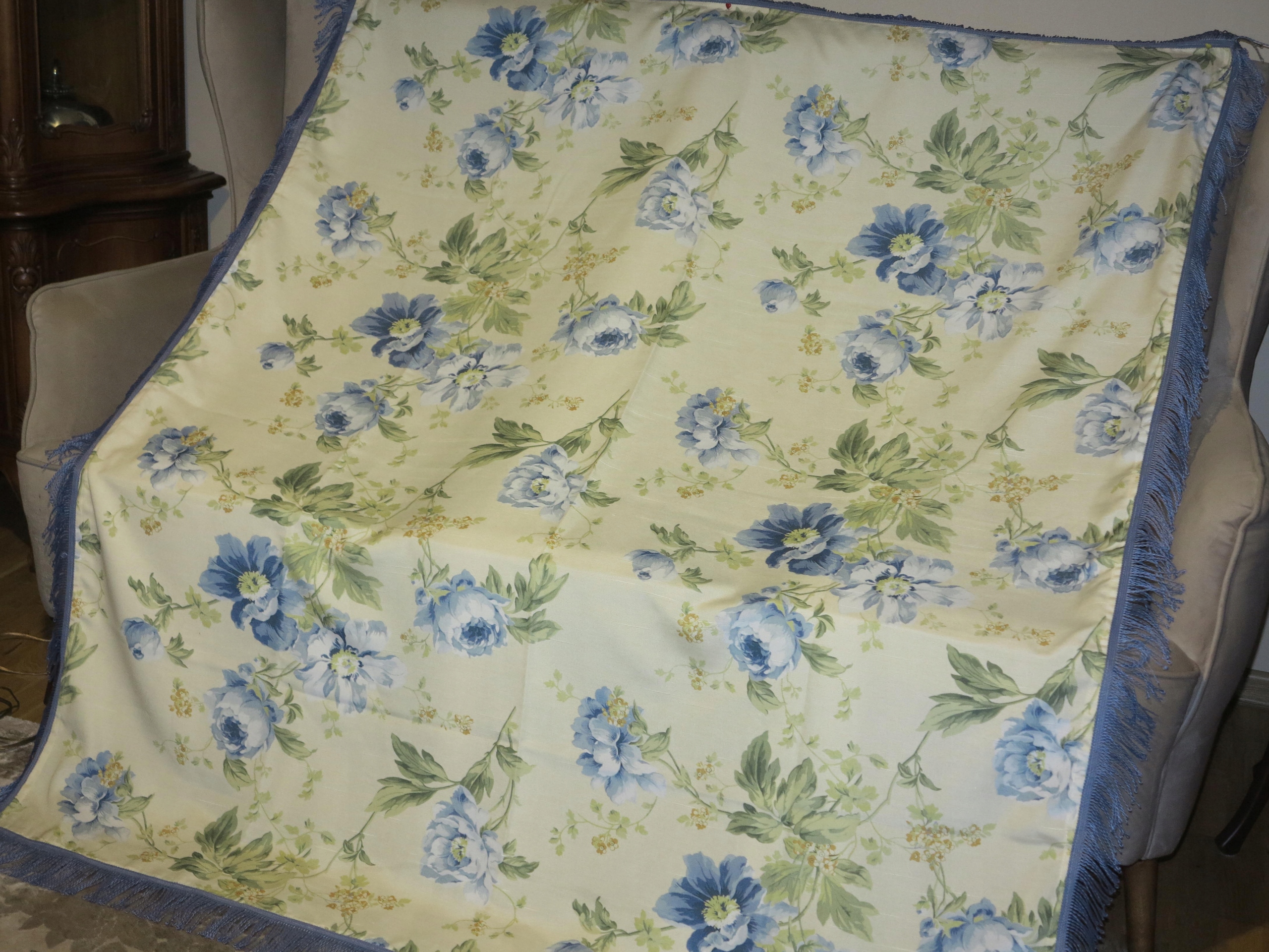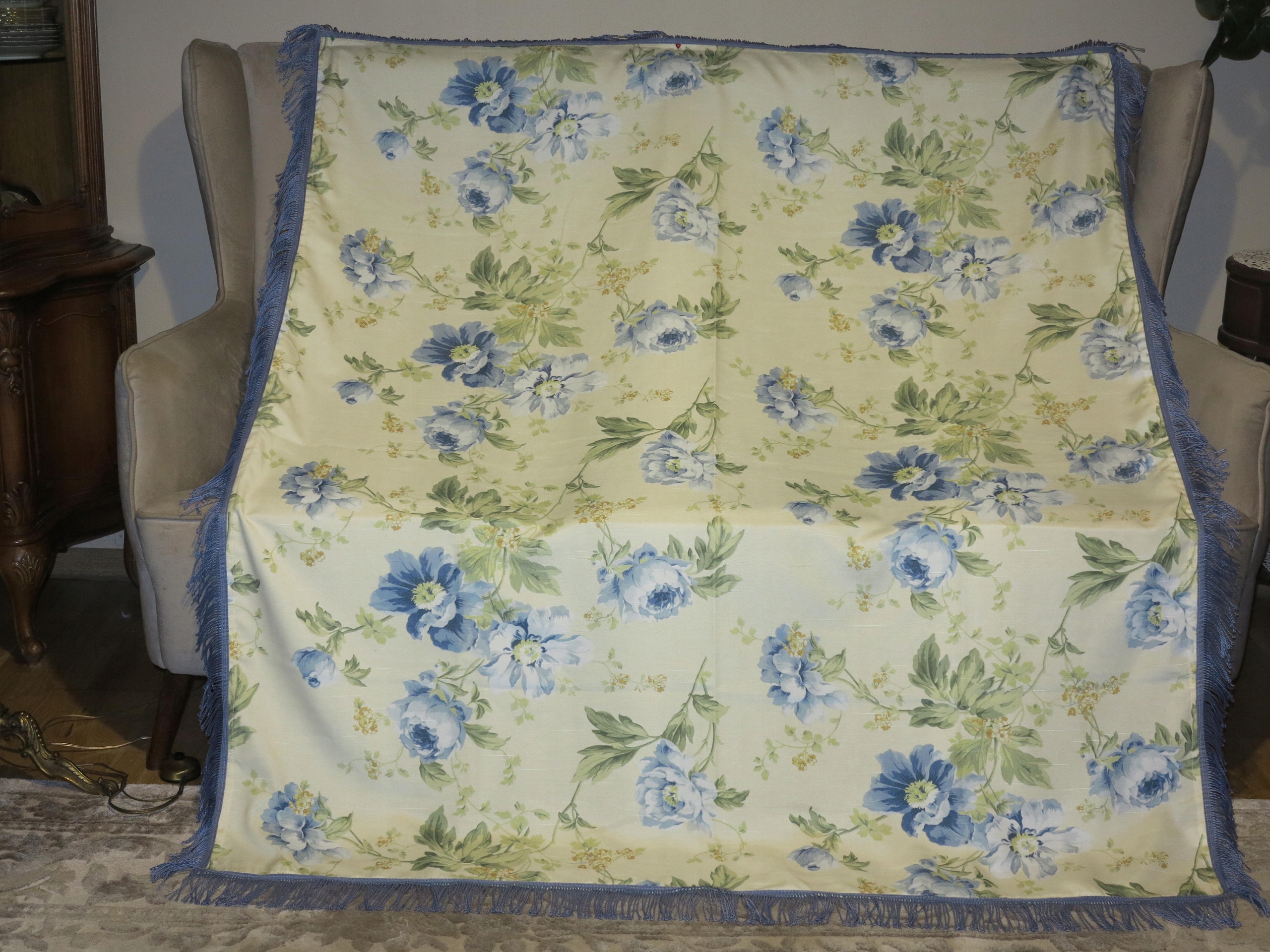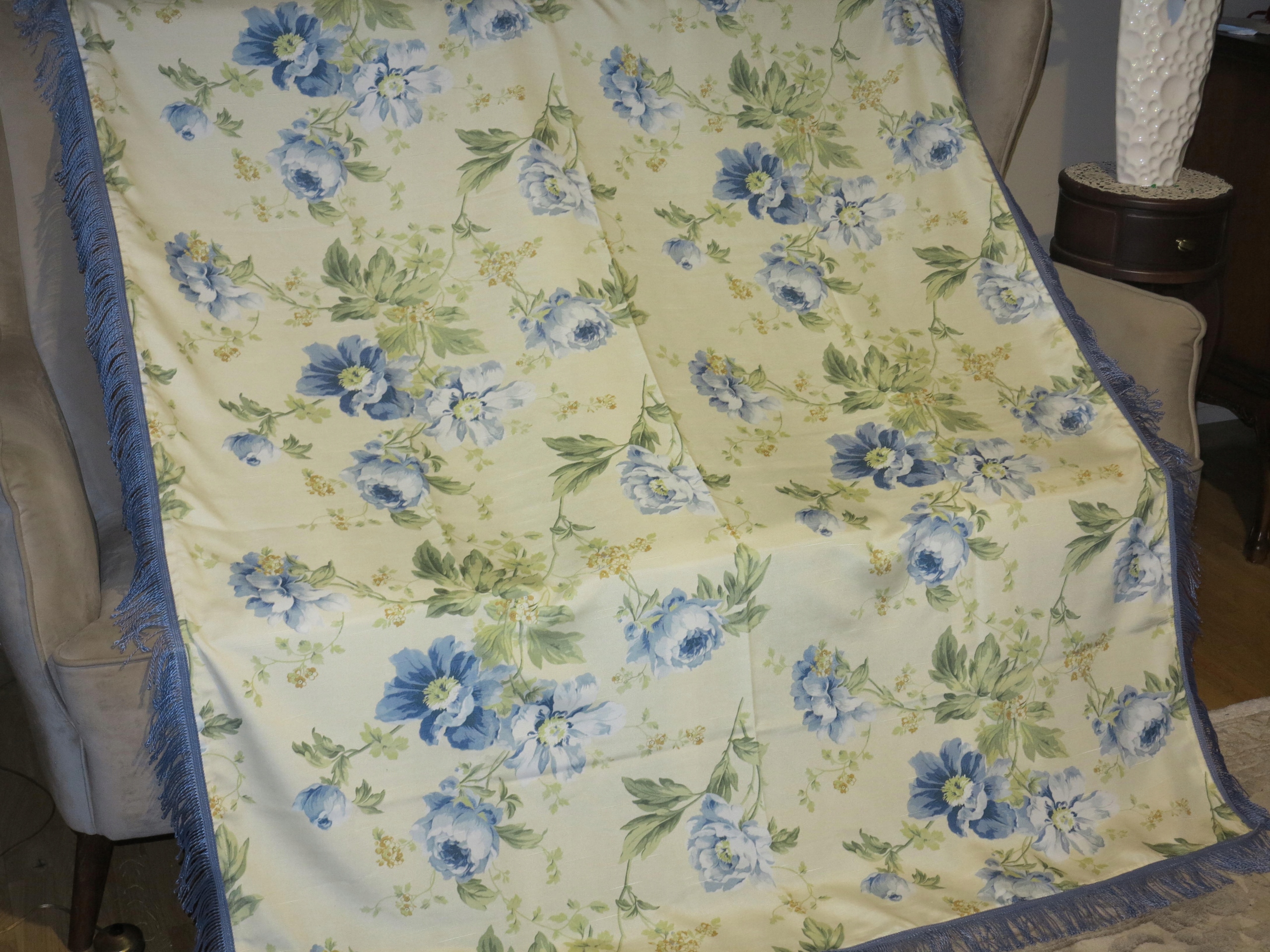 Предмет аукциона – чрезвычайно очаровательная английская скатерть. с крупными цветами, отделанными бахромой по периметру.Размеры скатерти: 162/143см+ с бахромой примерно 7см. Скатерть б/у, но в очень хорошем состоянии и качестве, цвета очень насыщенные и выразительные. Рекомендую, будет красивое украшение стола.