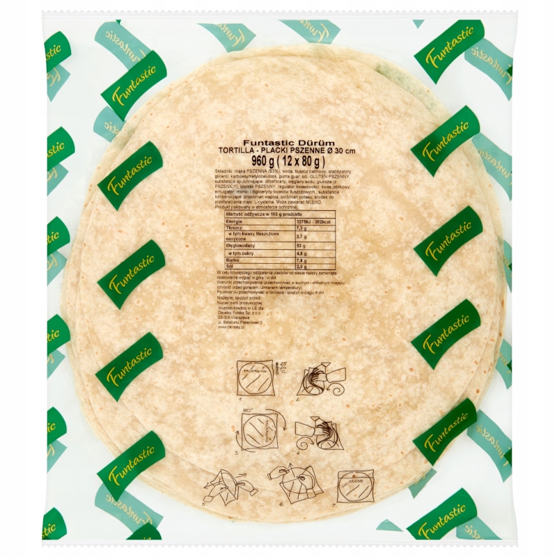 Лепешка Funtastic Durum - в упаковке 12 блинов диаметром 30см >, готовая к употреблению, после наполнения любимой начинкой, просто разогрейте на сковороде.