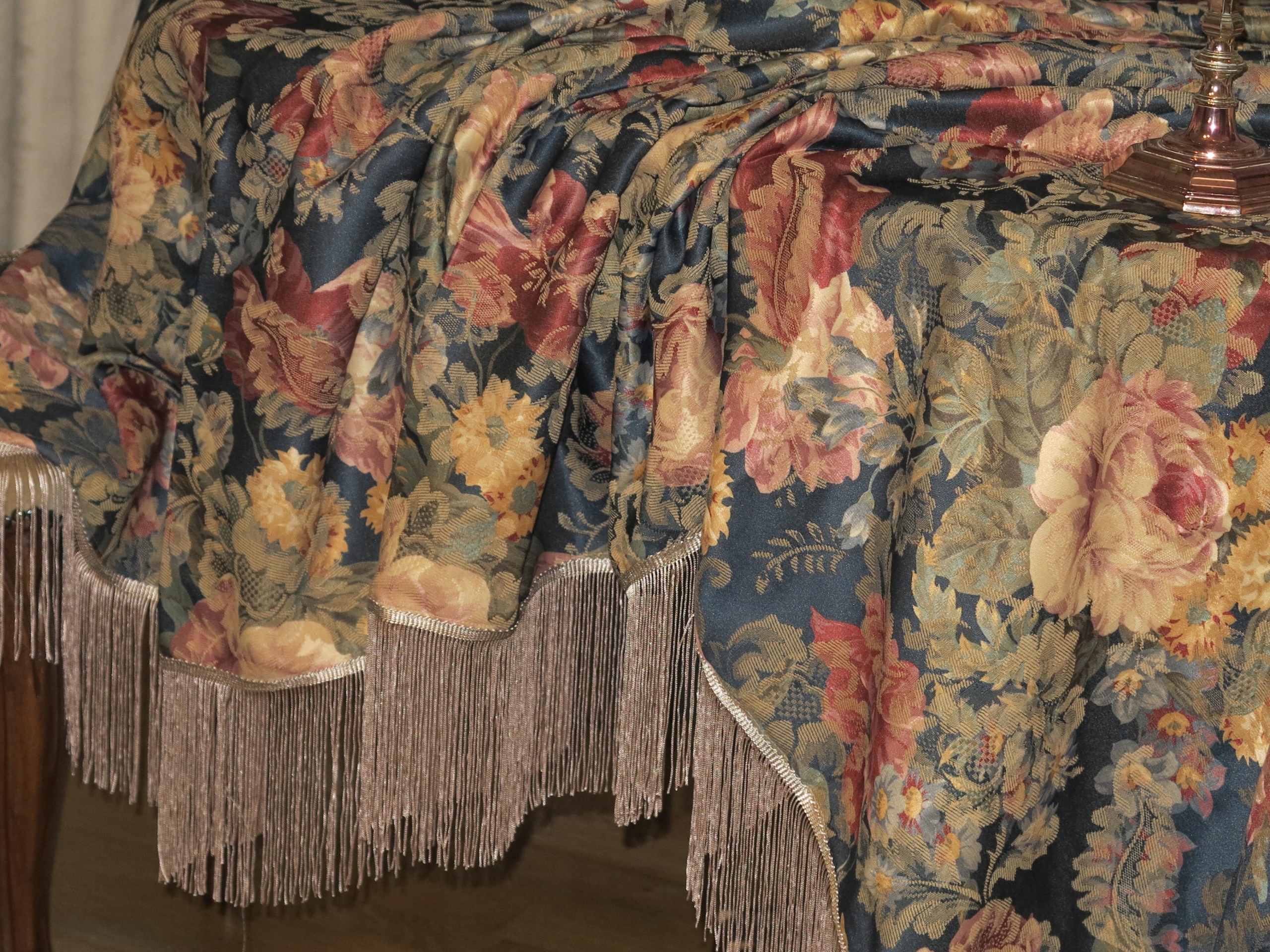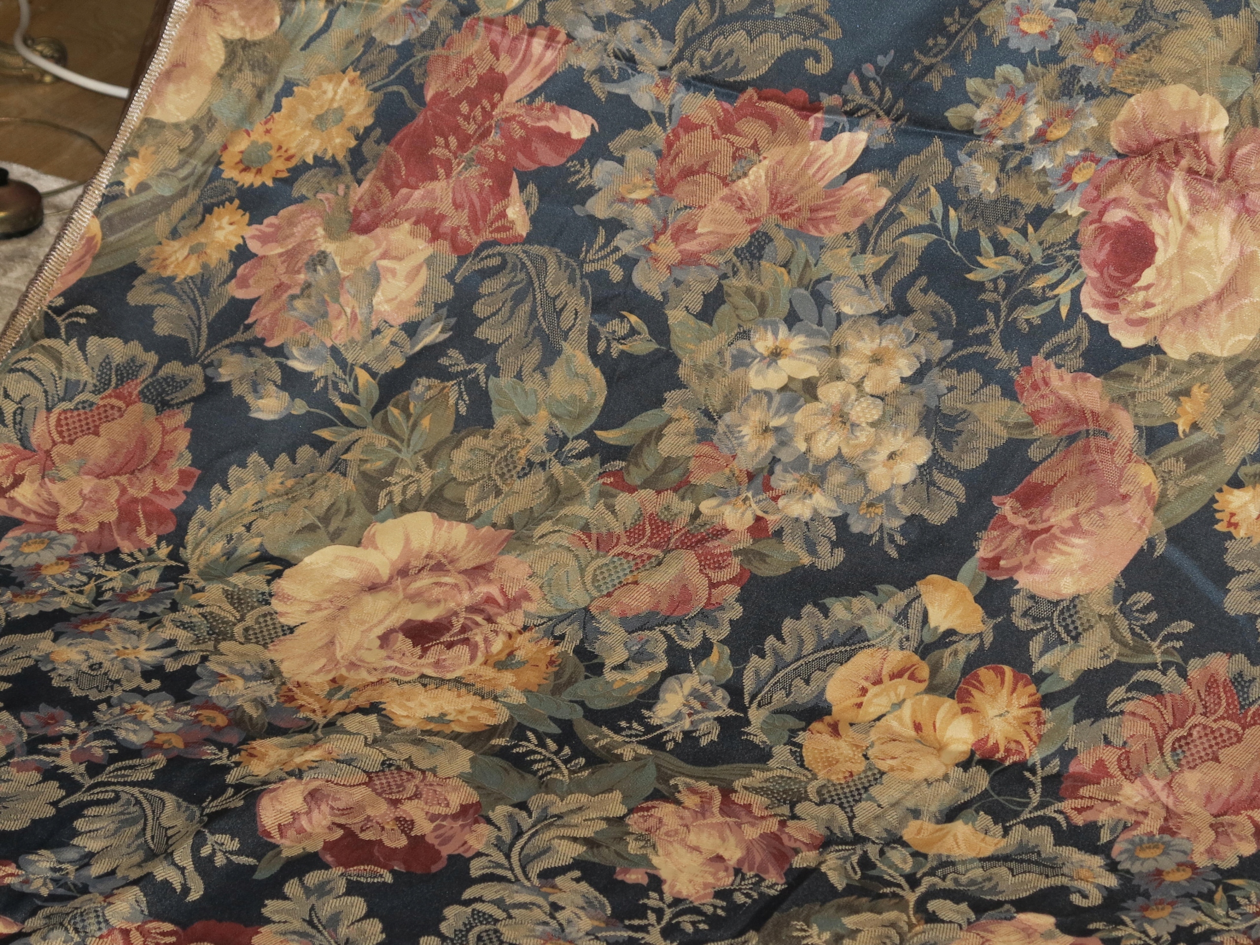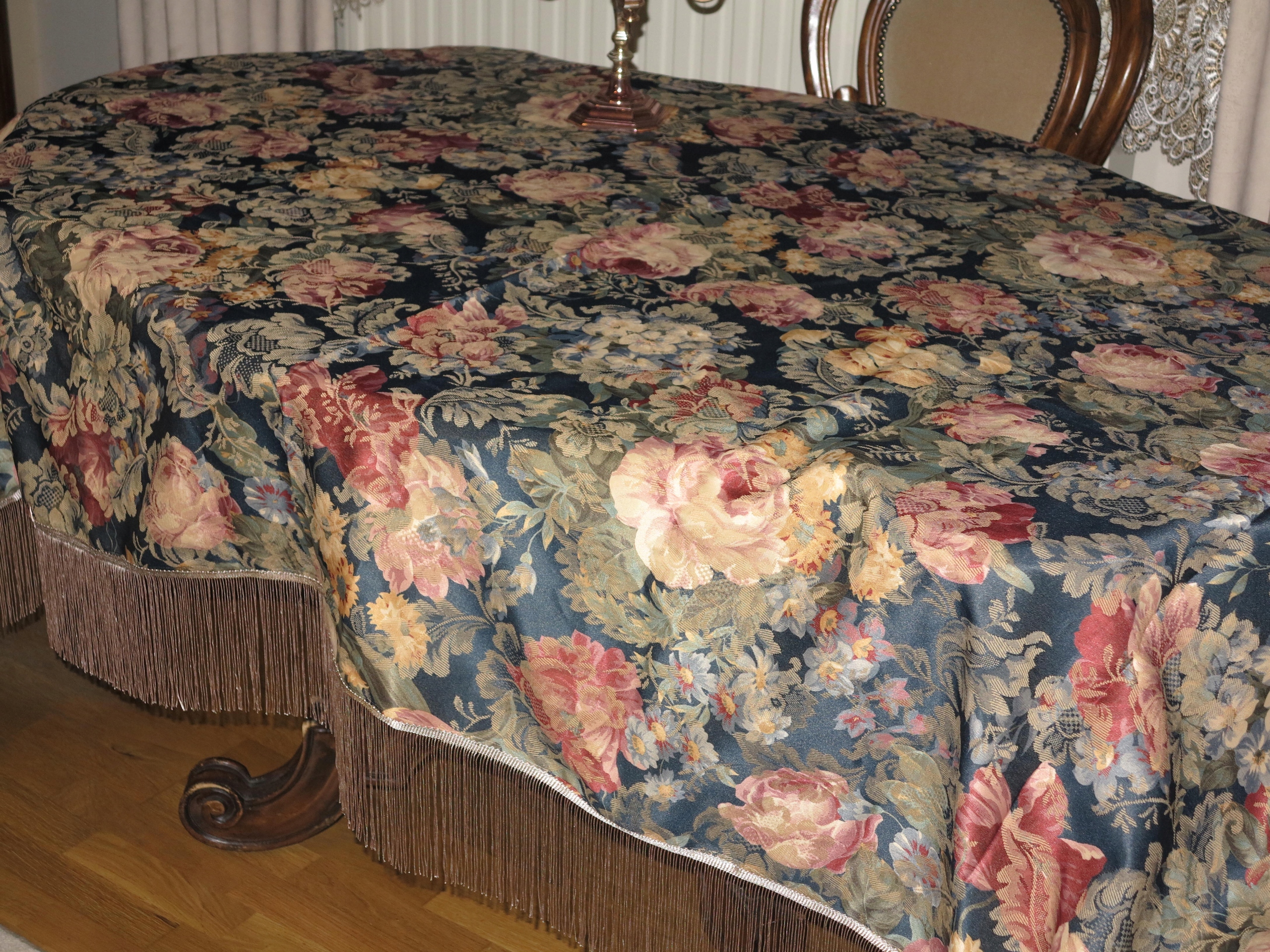 красивая огромная скатерть в цветах из английского сада- они выглядят как нарисованные.
