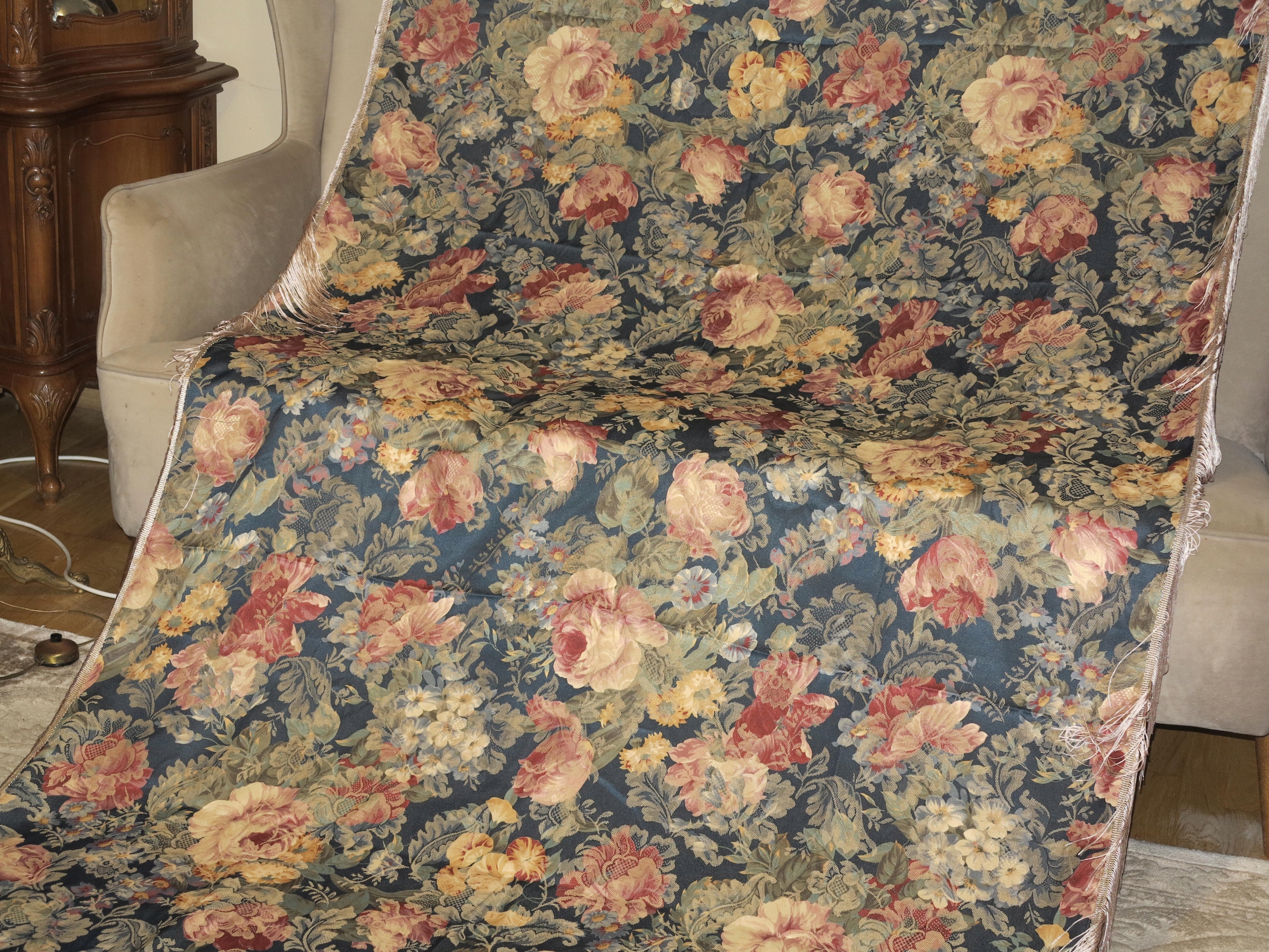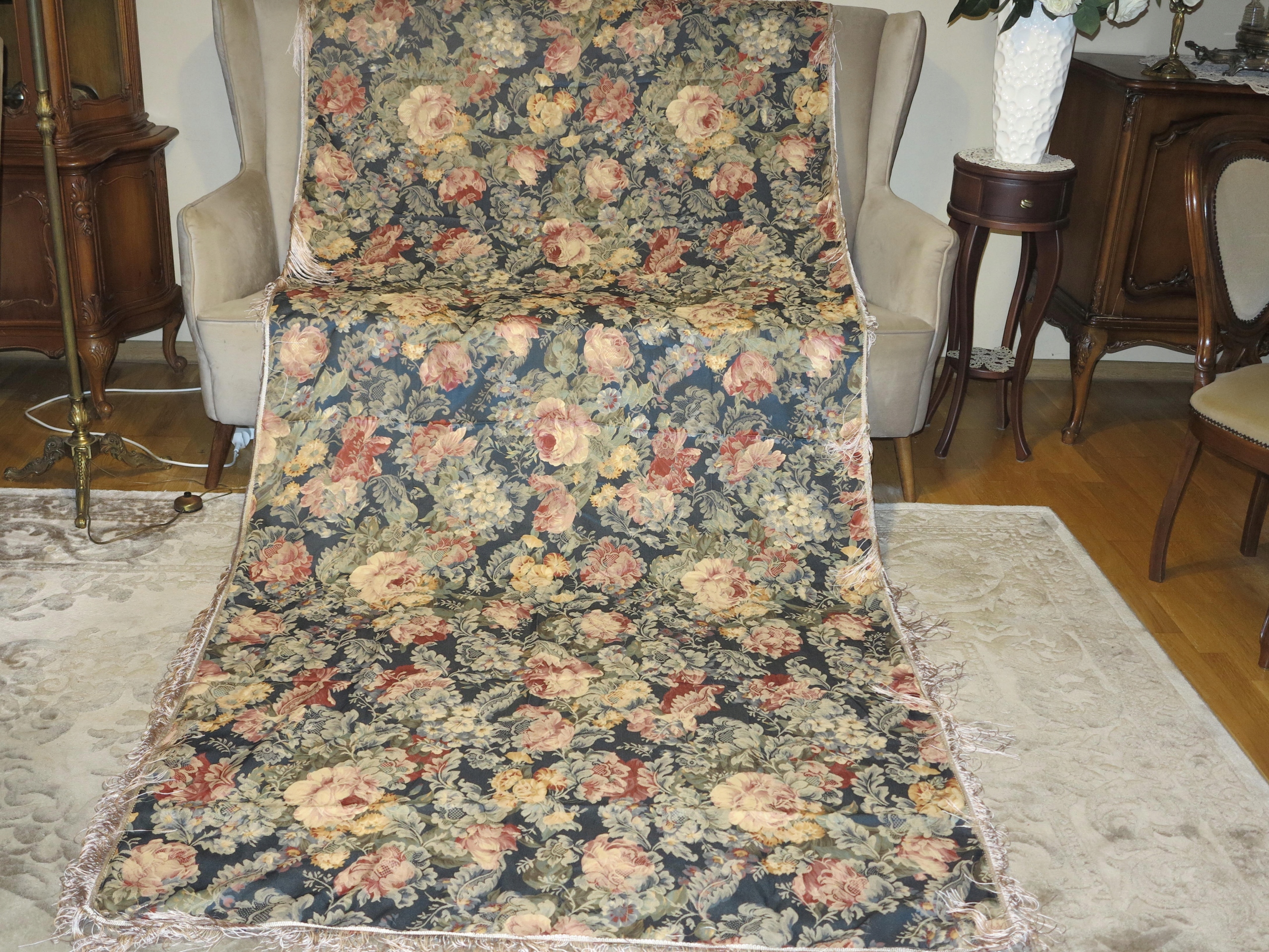 Тема аукциона - чрезвычайно красивая, английская скатерть, усеянная цветами, с шелковыми полосами. Используется в отличном состоянии. Я рекомендую.