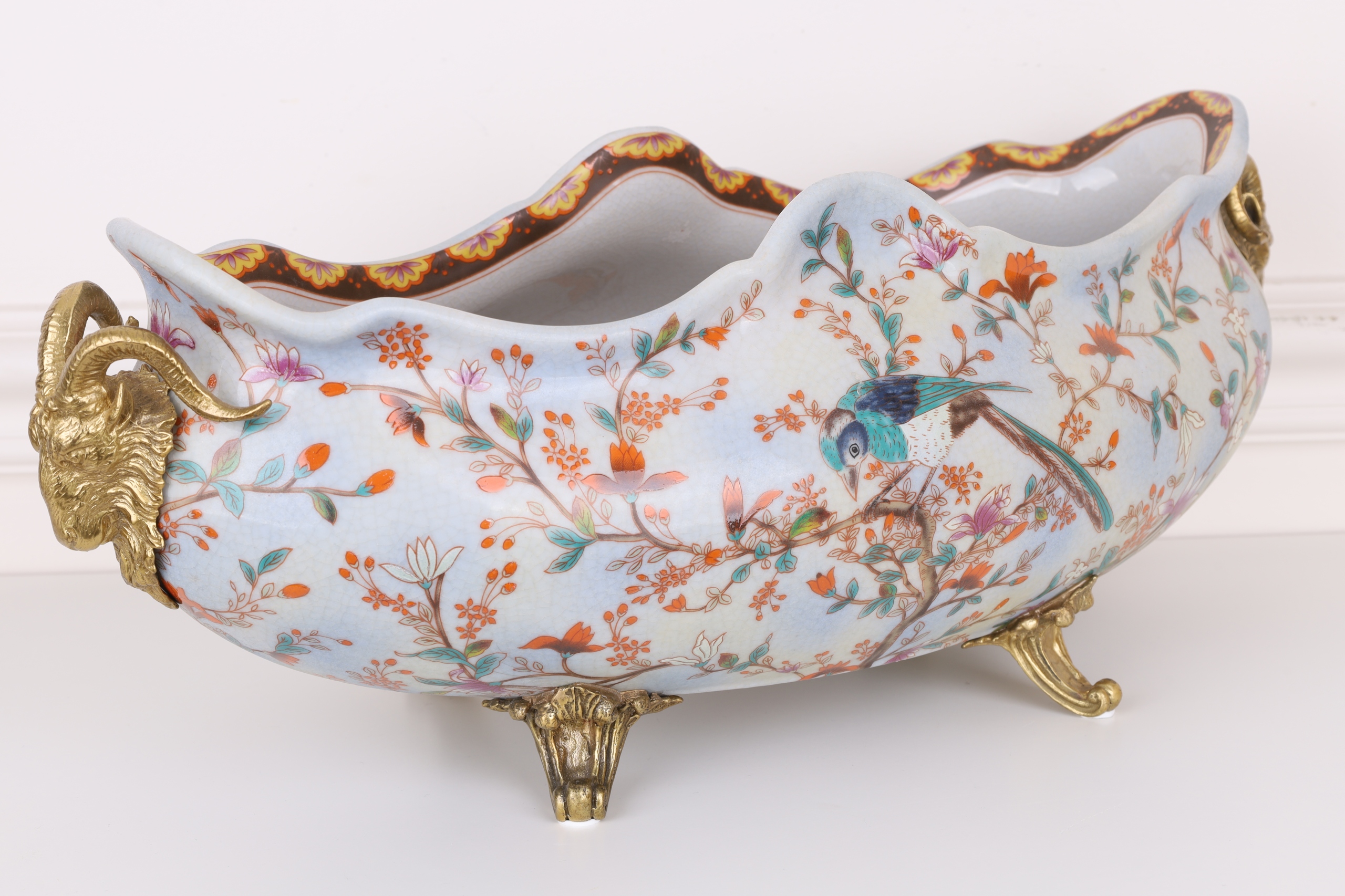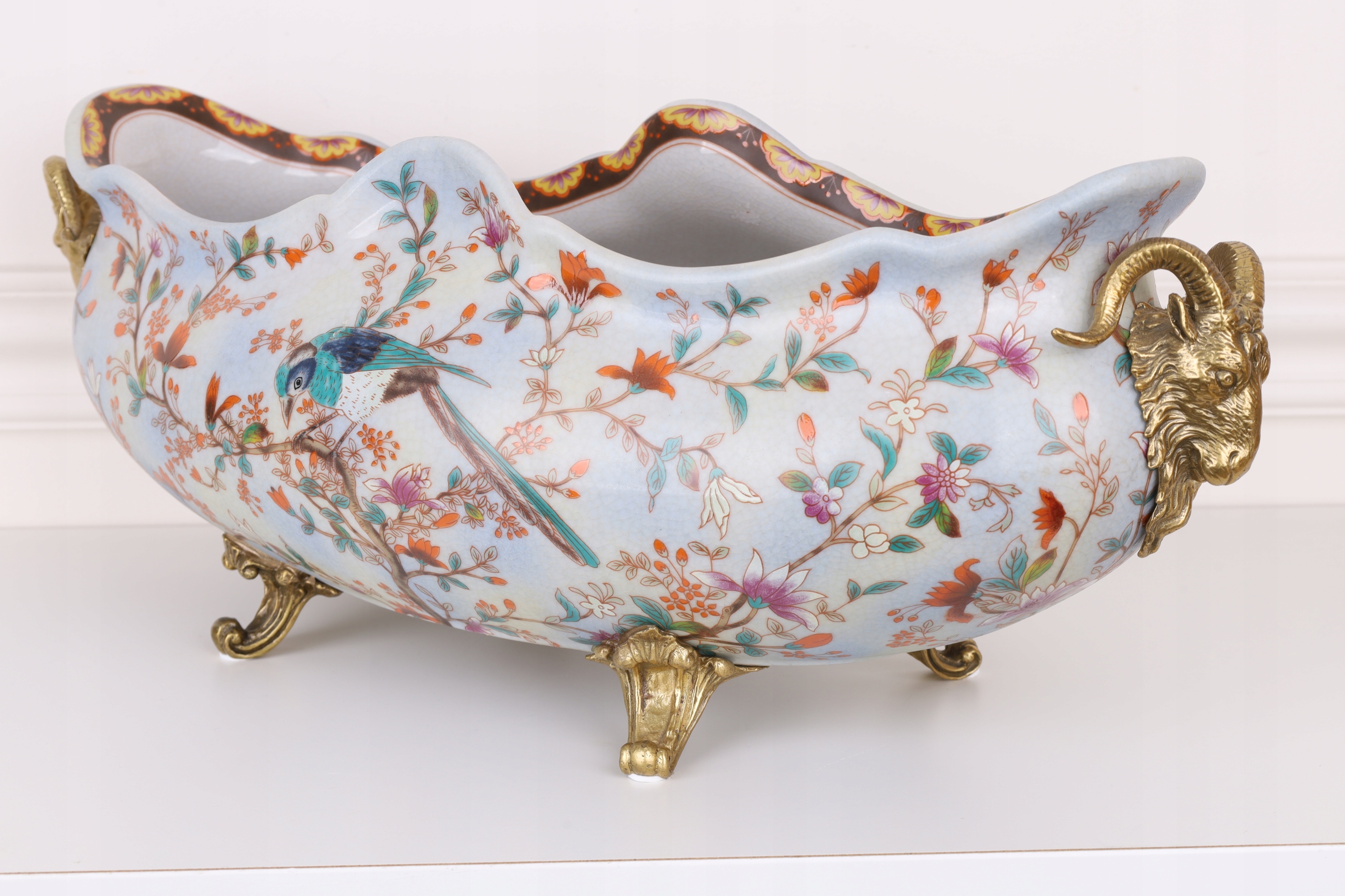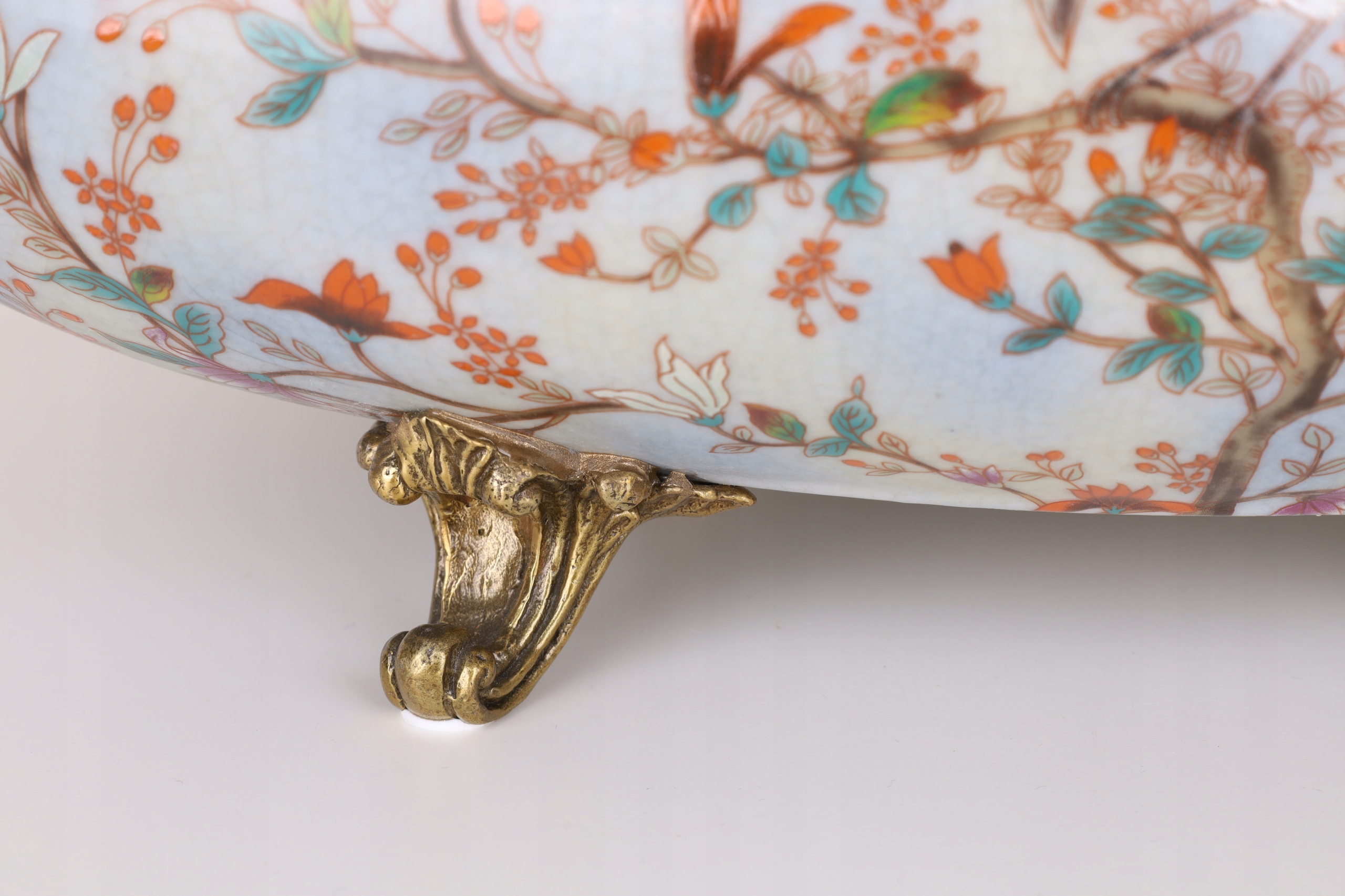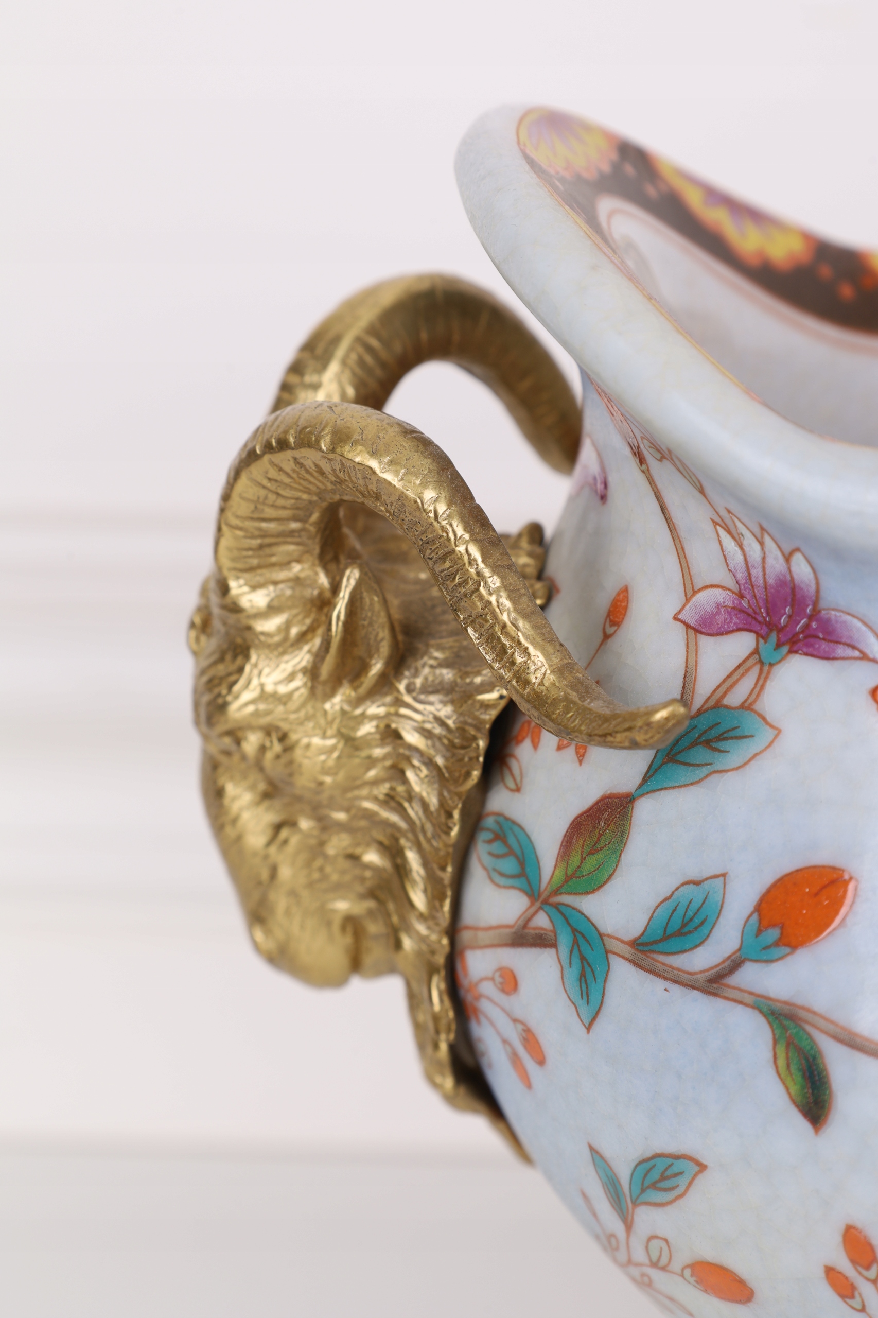 Прекрасная большая фарфоровая ваза с бронзой с птицей