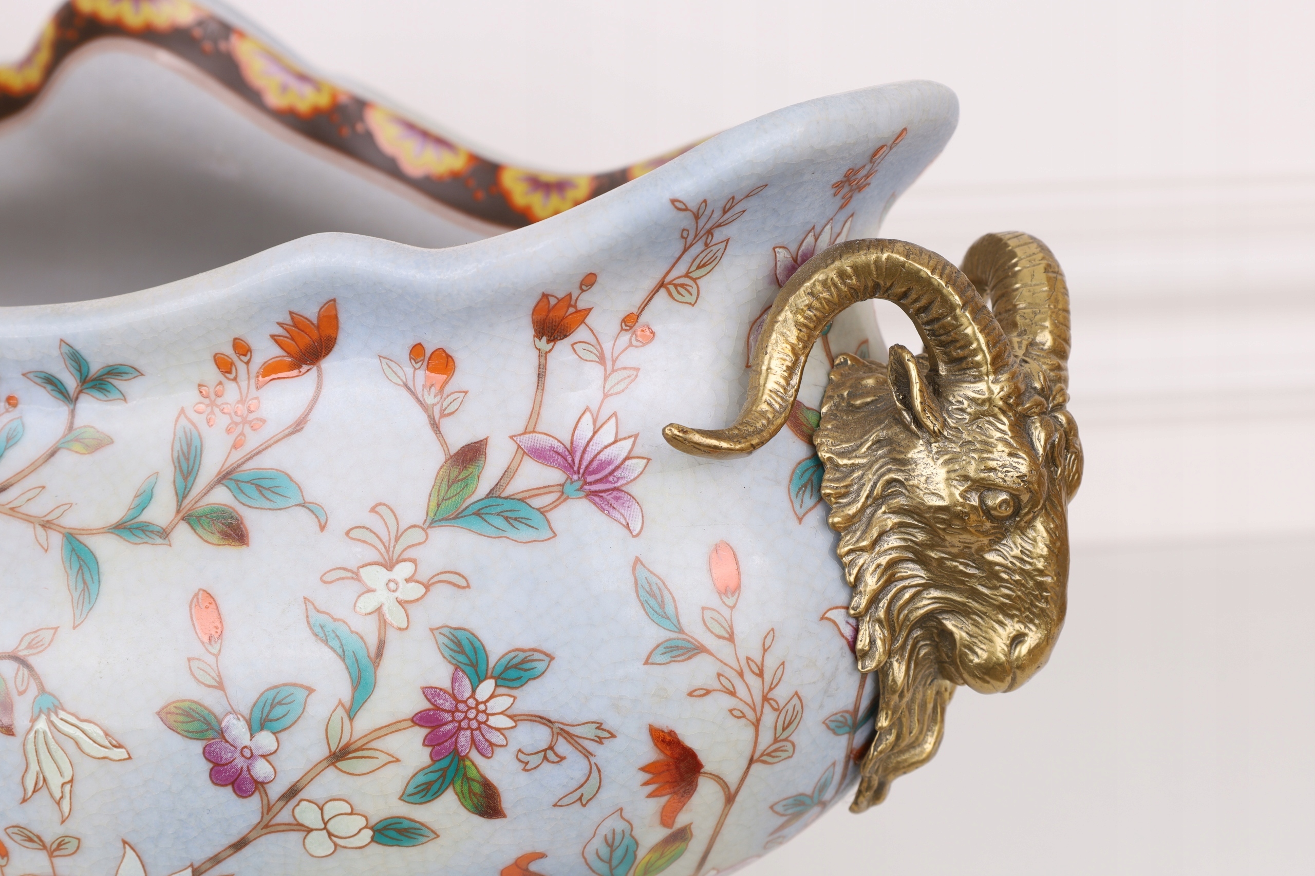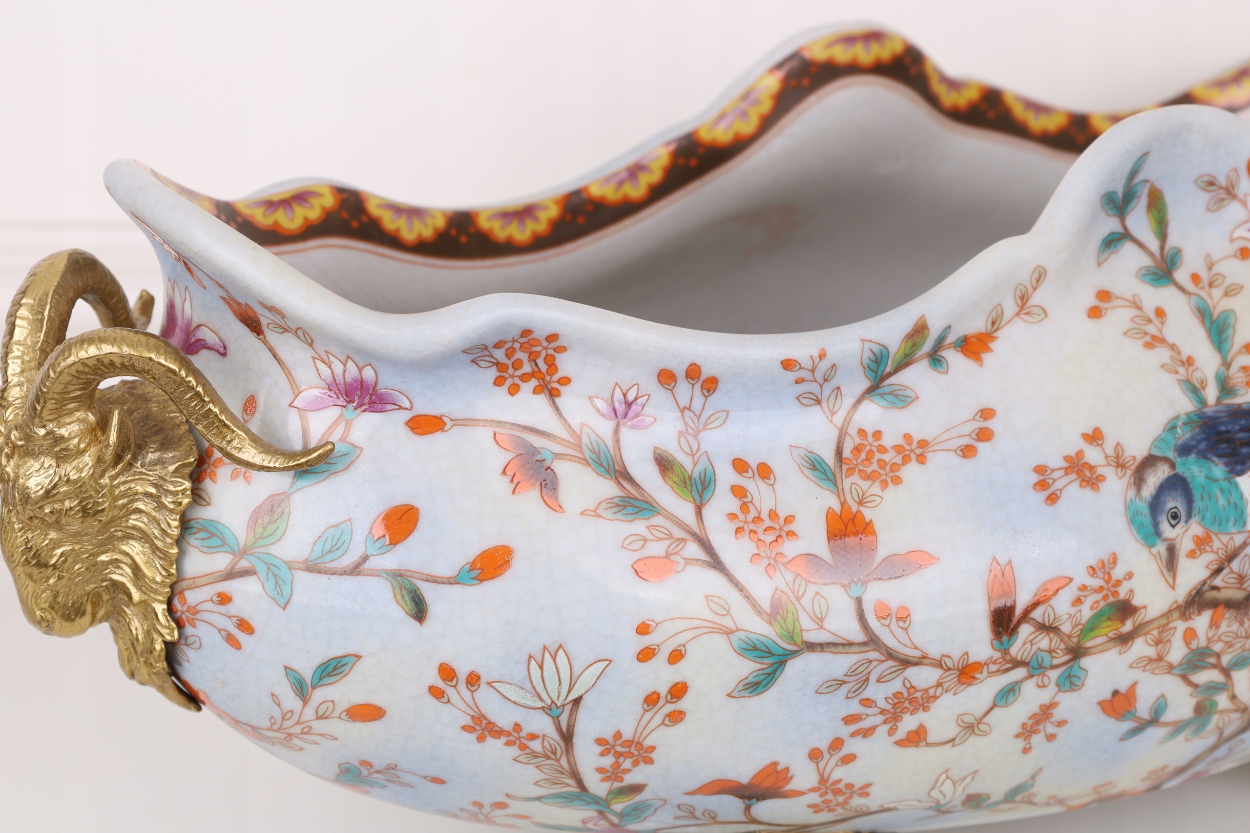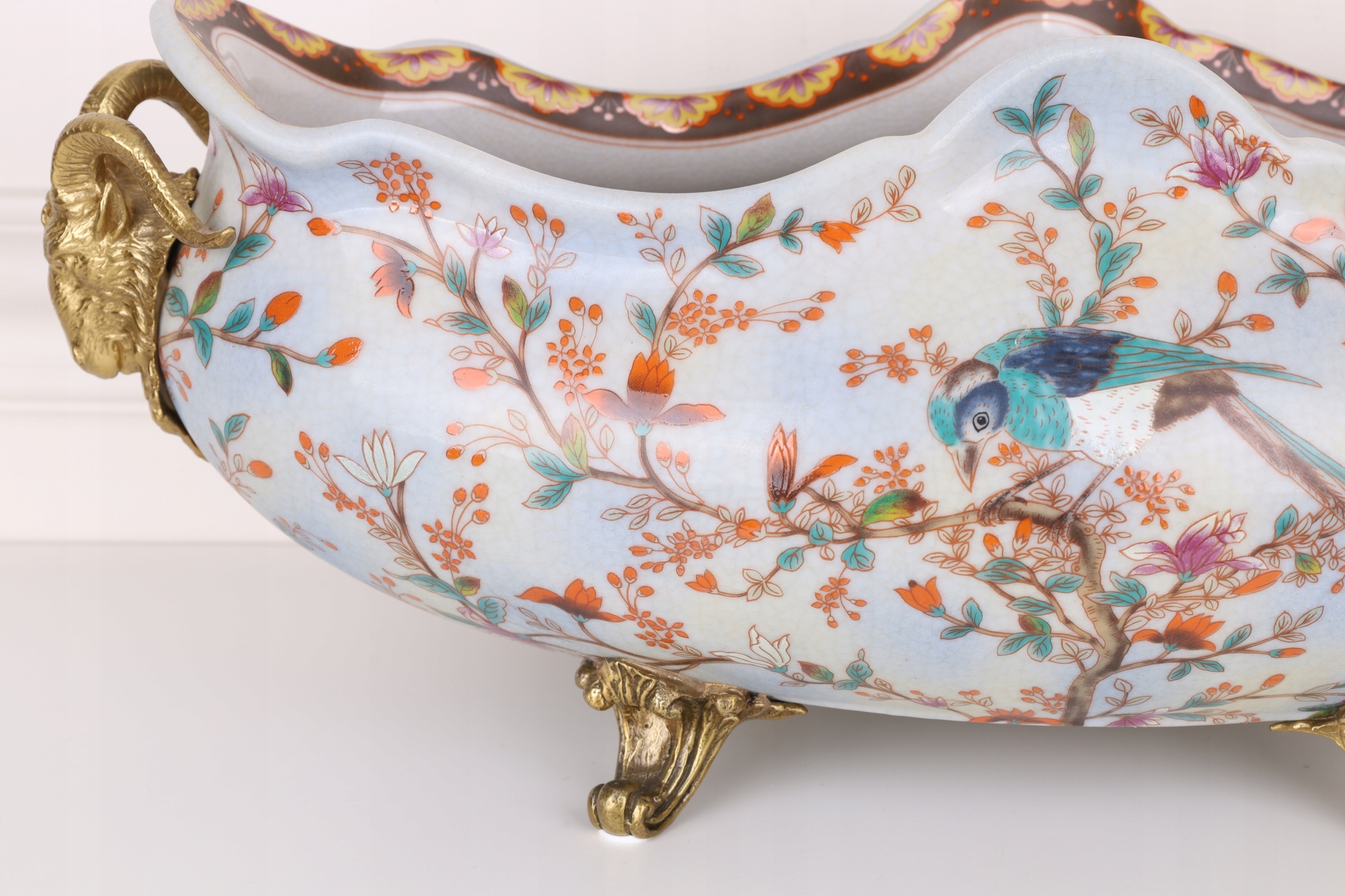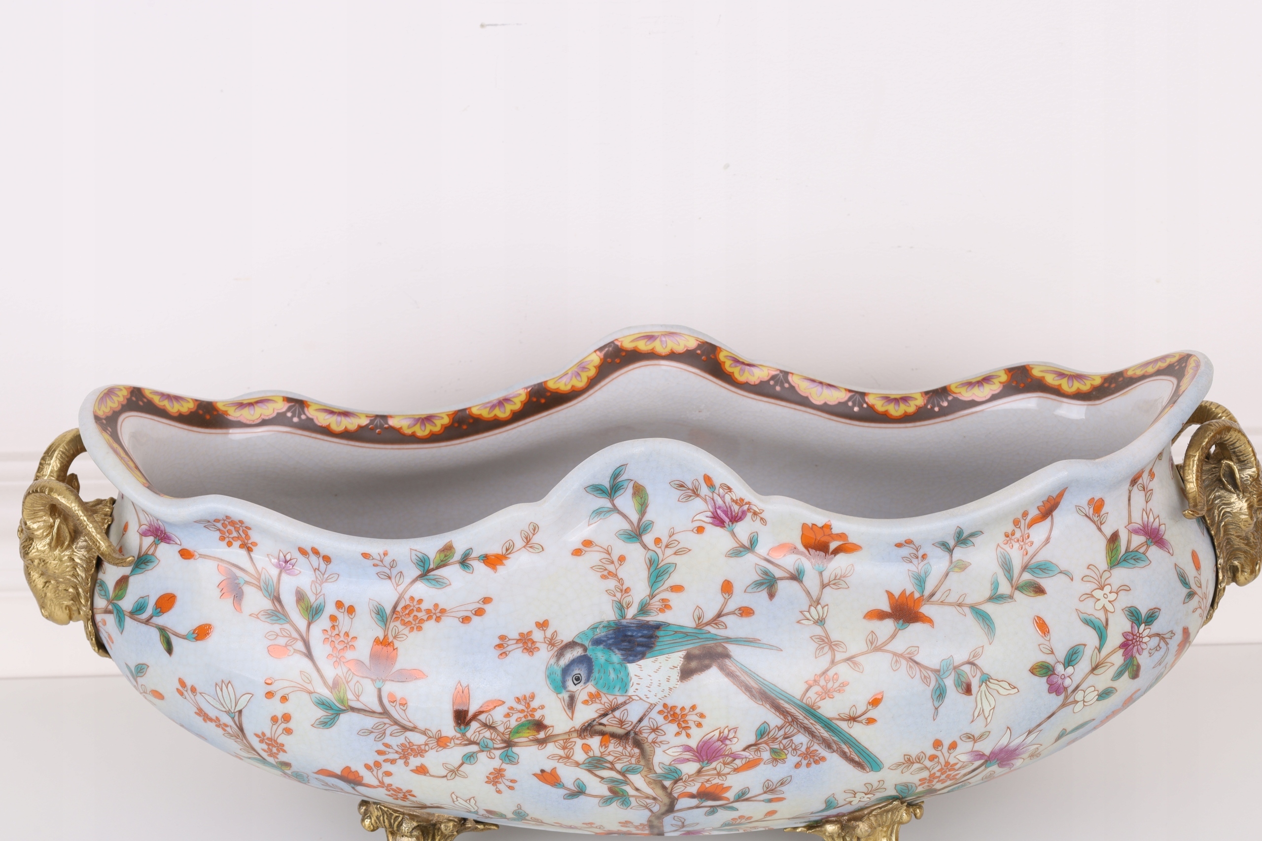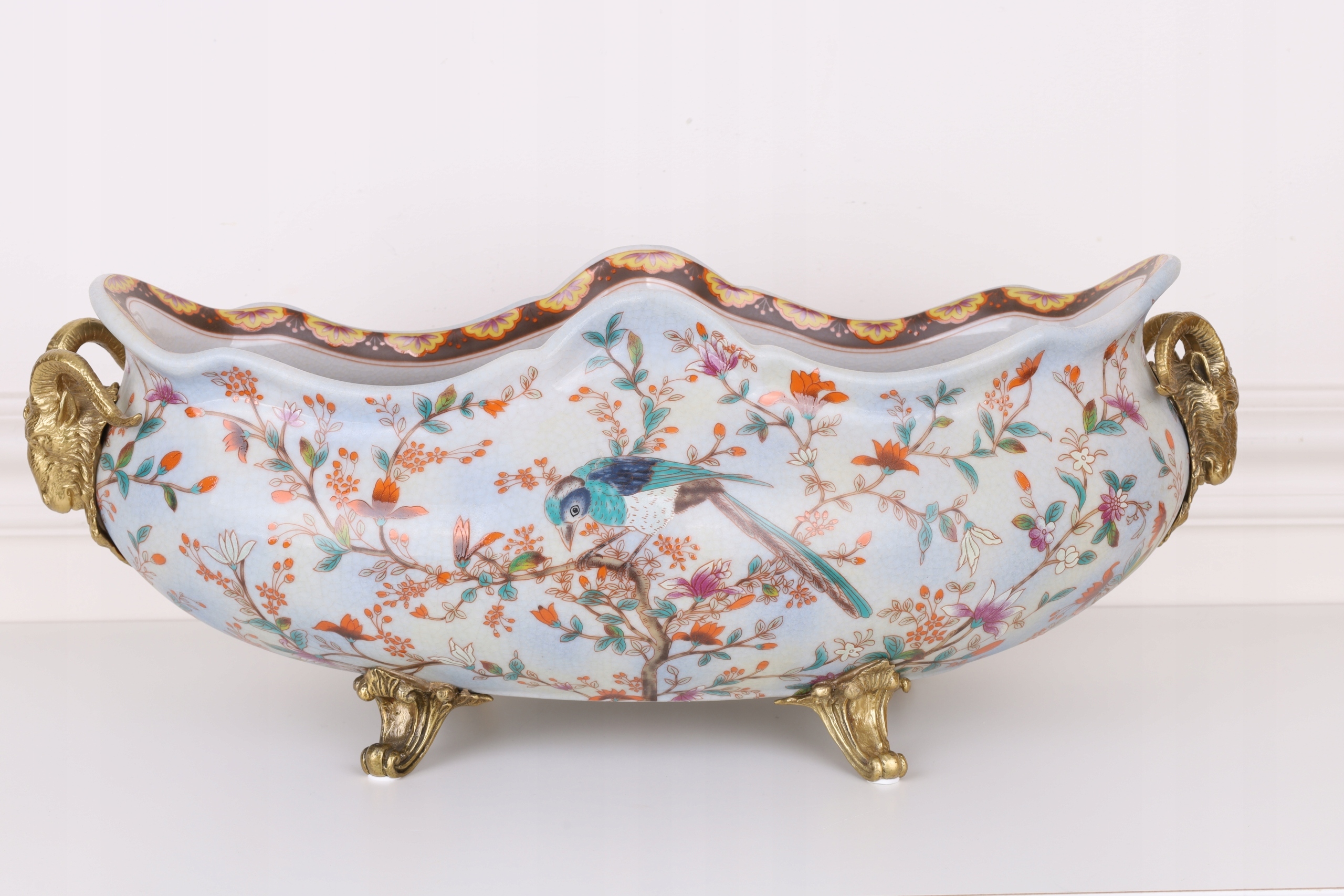 Прекрасная большая фарфоровая ваза с бронзой с птицей