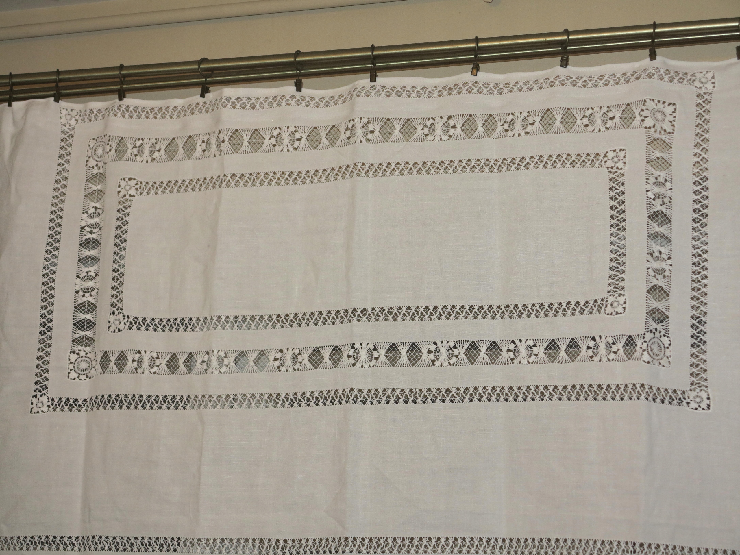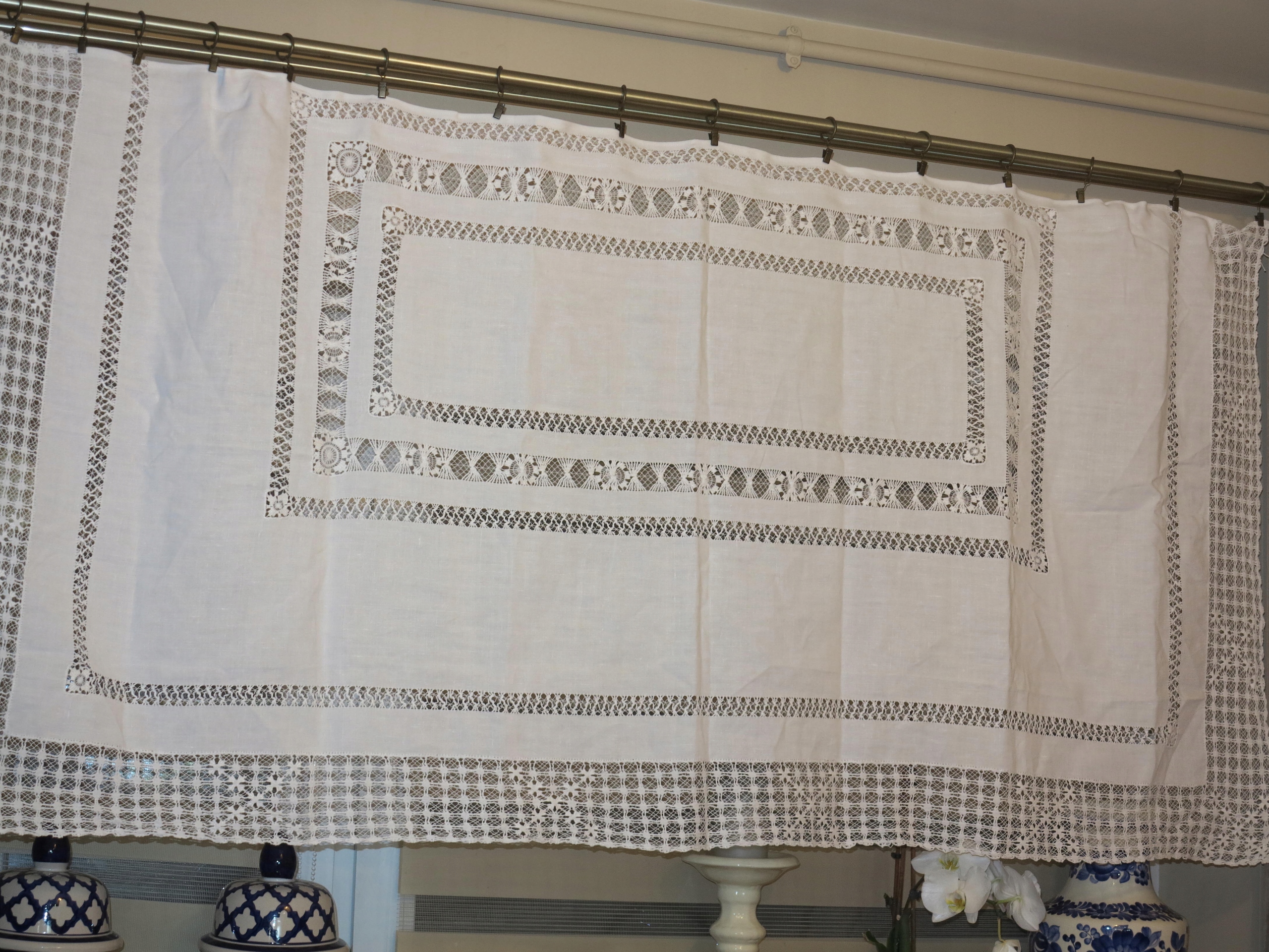 Субъект аукциона - возраст, льняная занавеса или занавес, с горсткой, очень сложной кружевом и просто. Он имеет измерение: ширина: 182 см, высота: 88 см. Использовал занавес в супер хорошем состоянии и качество. Я рекомендую.
