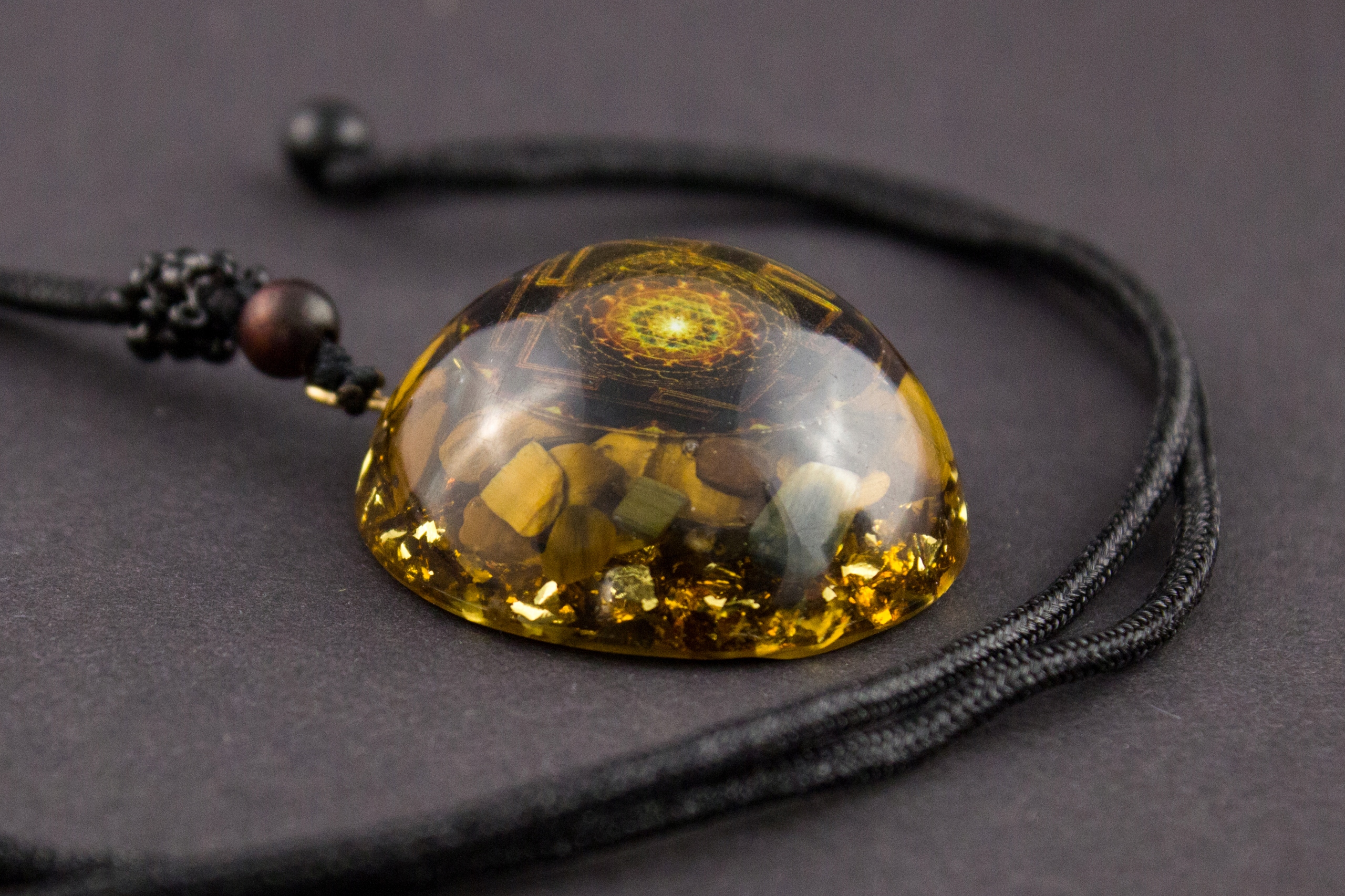 Колье с символом Шри Янтры с камнями Тигровый Глаз - 7 чакр, означает здоровый и спокойный сон, улучшение обмена веществ, впечатляющие личные успехи, успех в жизни и красивый внешний вид.