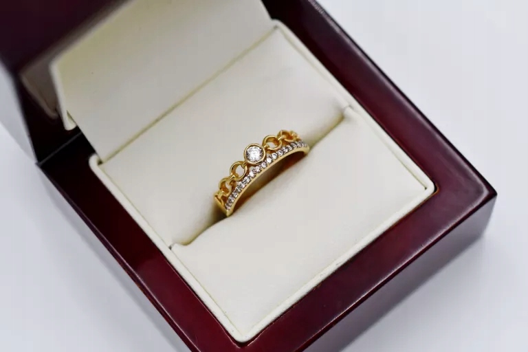 КРАСИВОЕ ЗОЛОТОЕ КОЛЬЦО С КОРОНОЙ 585/2,15G/R12