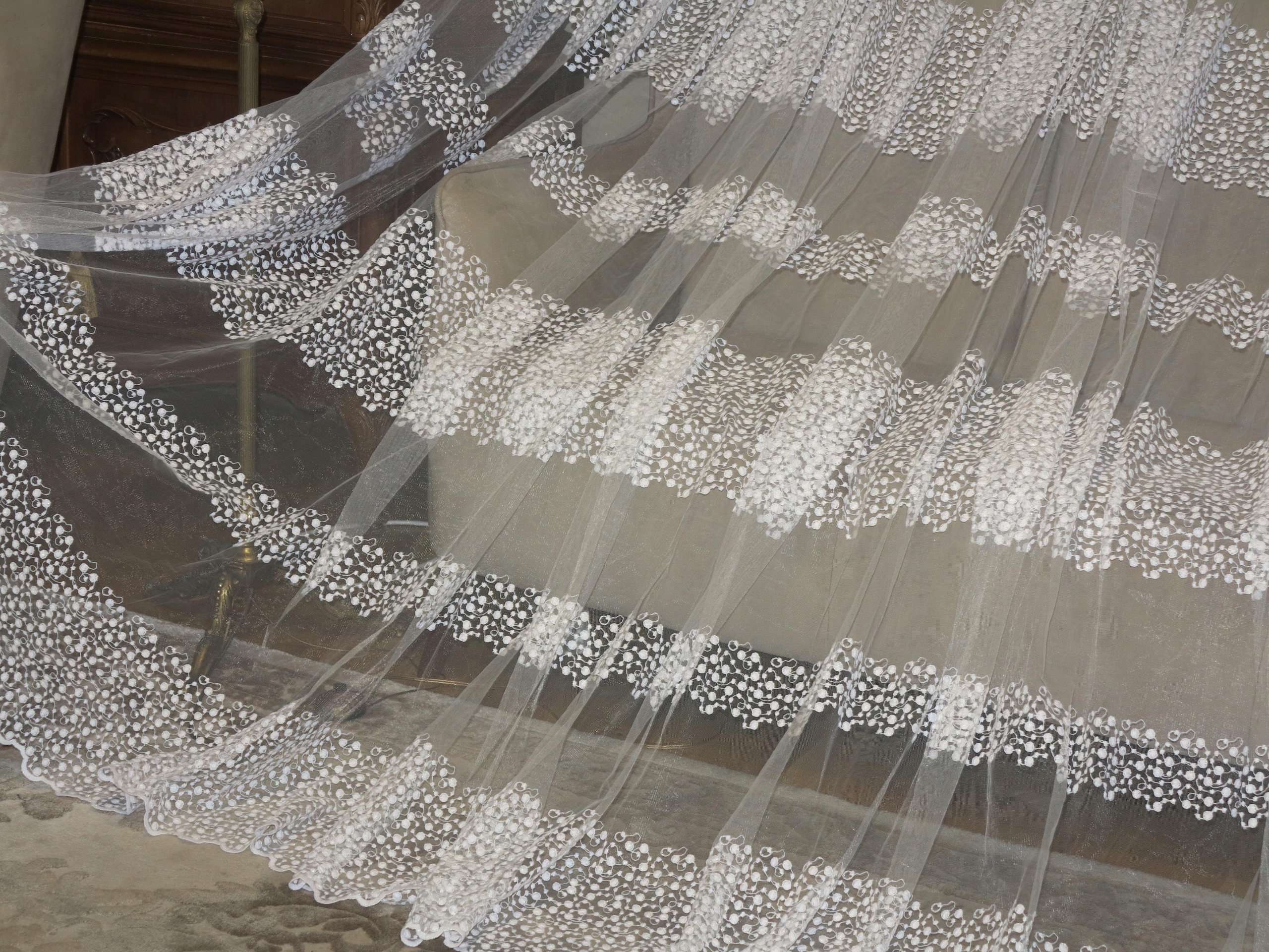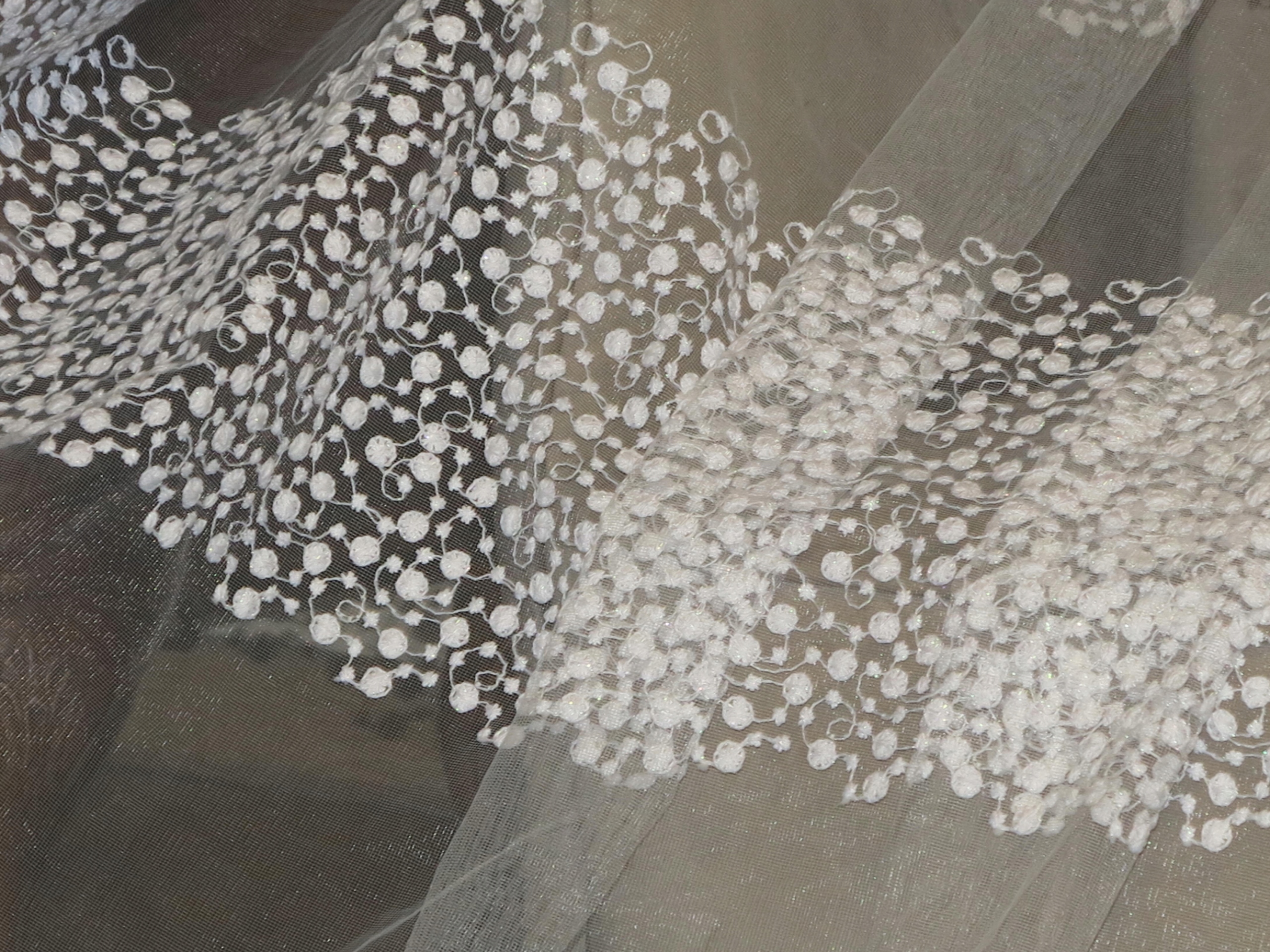 ЧУДЕСНАЯ СНЕЖНО-БЕЛАЯ ТЮЛЕВАЯ ШТОРА С ВЫШИВКОЙ ПОЛОСЫ 677/180 №3