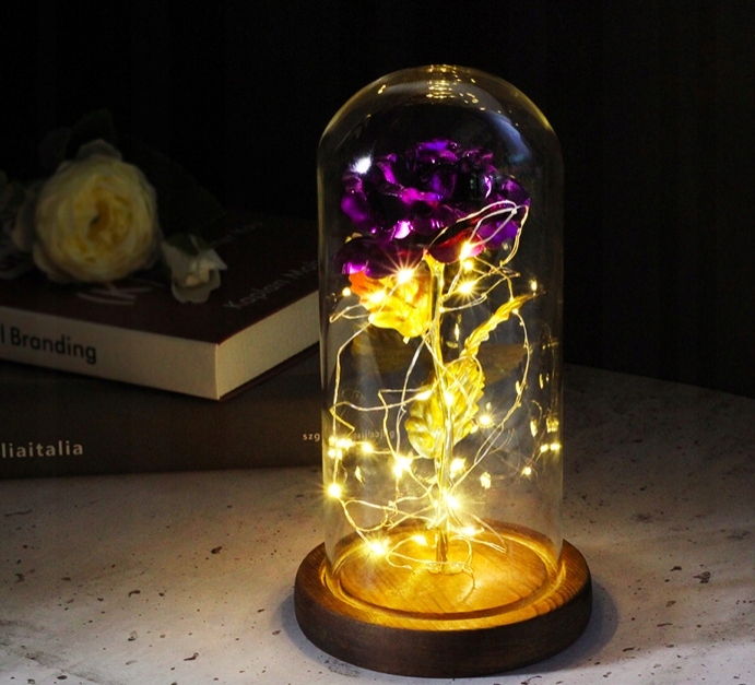 ФИОЛЕТОВАЯ СВЕТОДИОДНАЯ РОЗА В СТЕКЛЯННОМ КУПОЛЕ