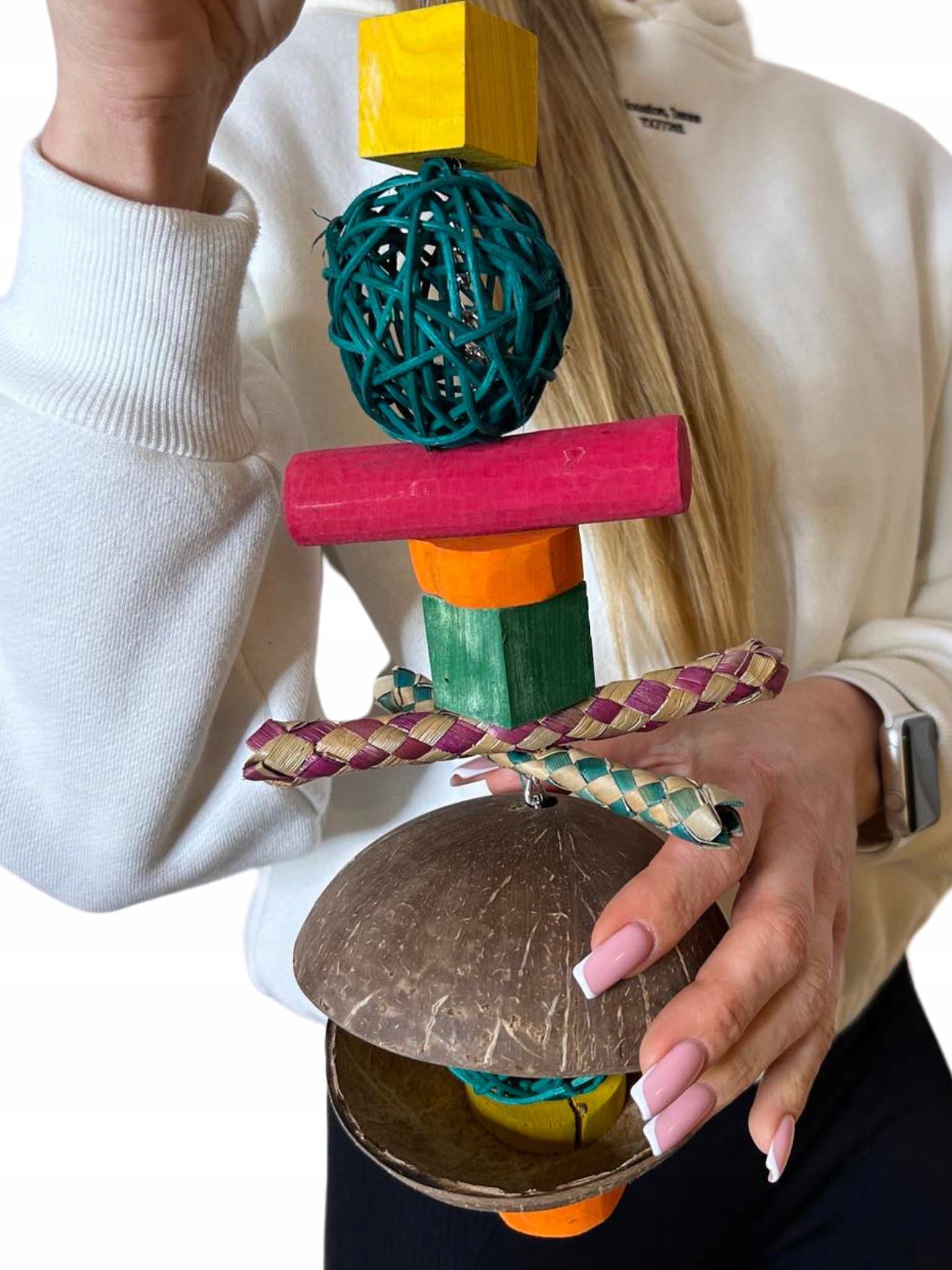"Чудесные кокосы" не только доставляют вашему попугаю часы веселья и радости, но также способствуют его физическому и умственному развитию. Это отличная игрушка, которая не только развлечет, но и станет полезным занятием для вашего пернатого малыша!