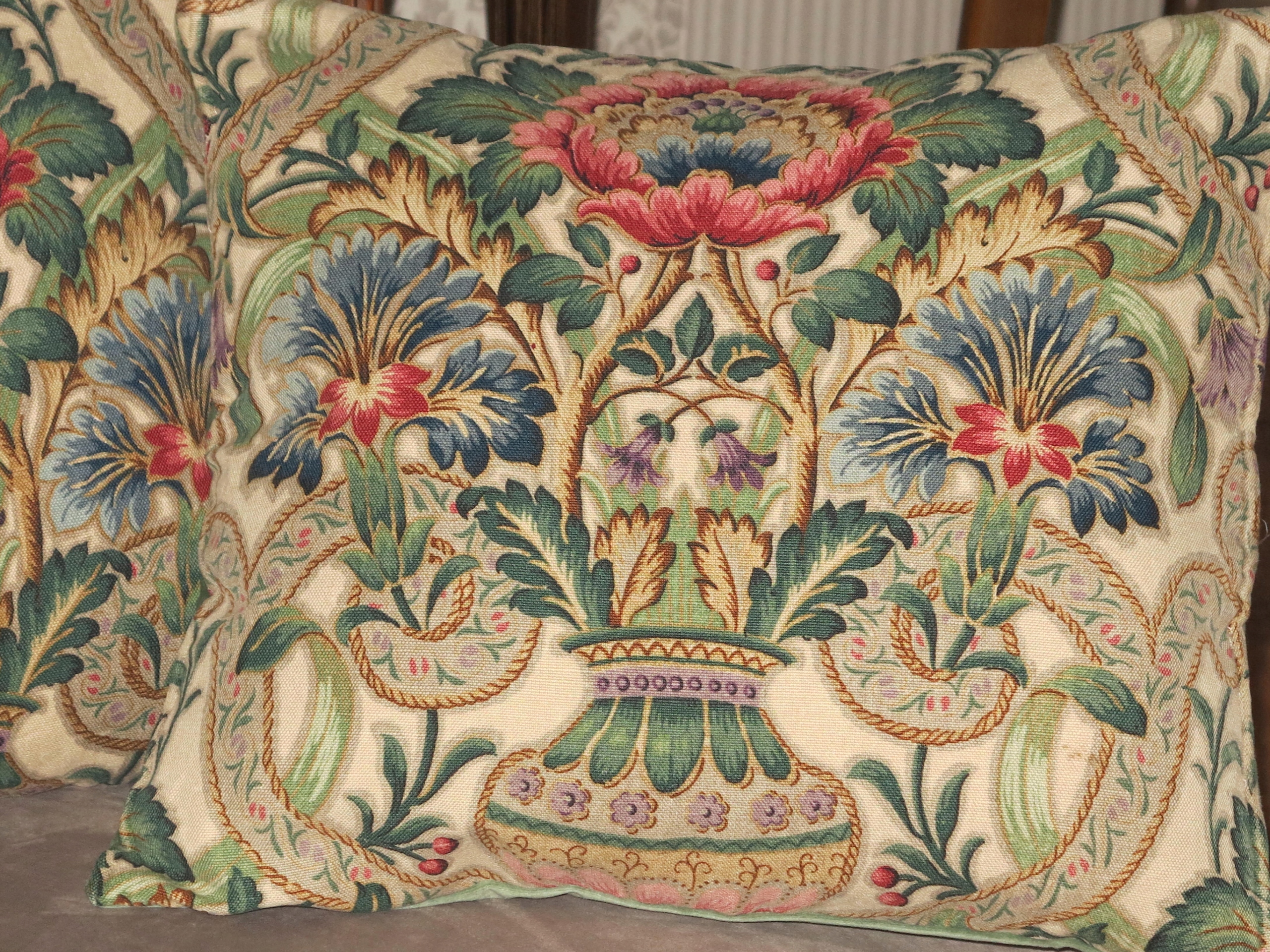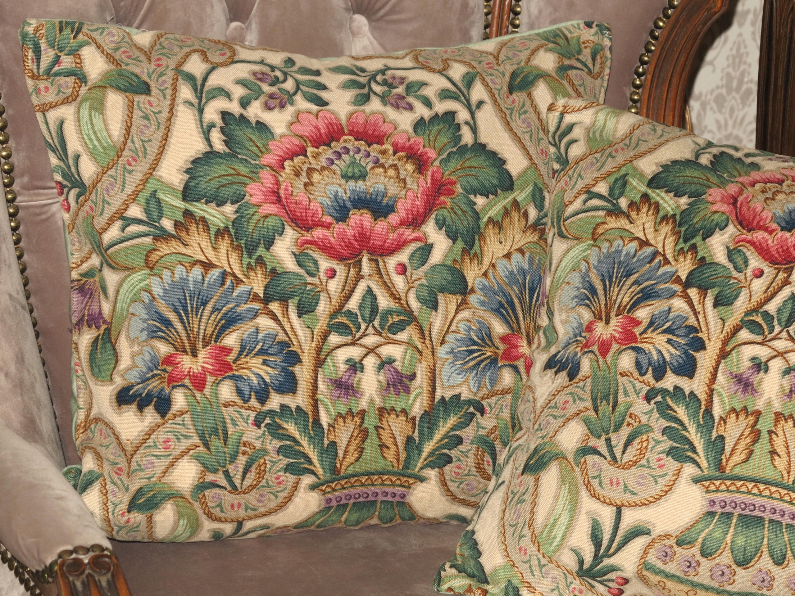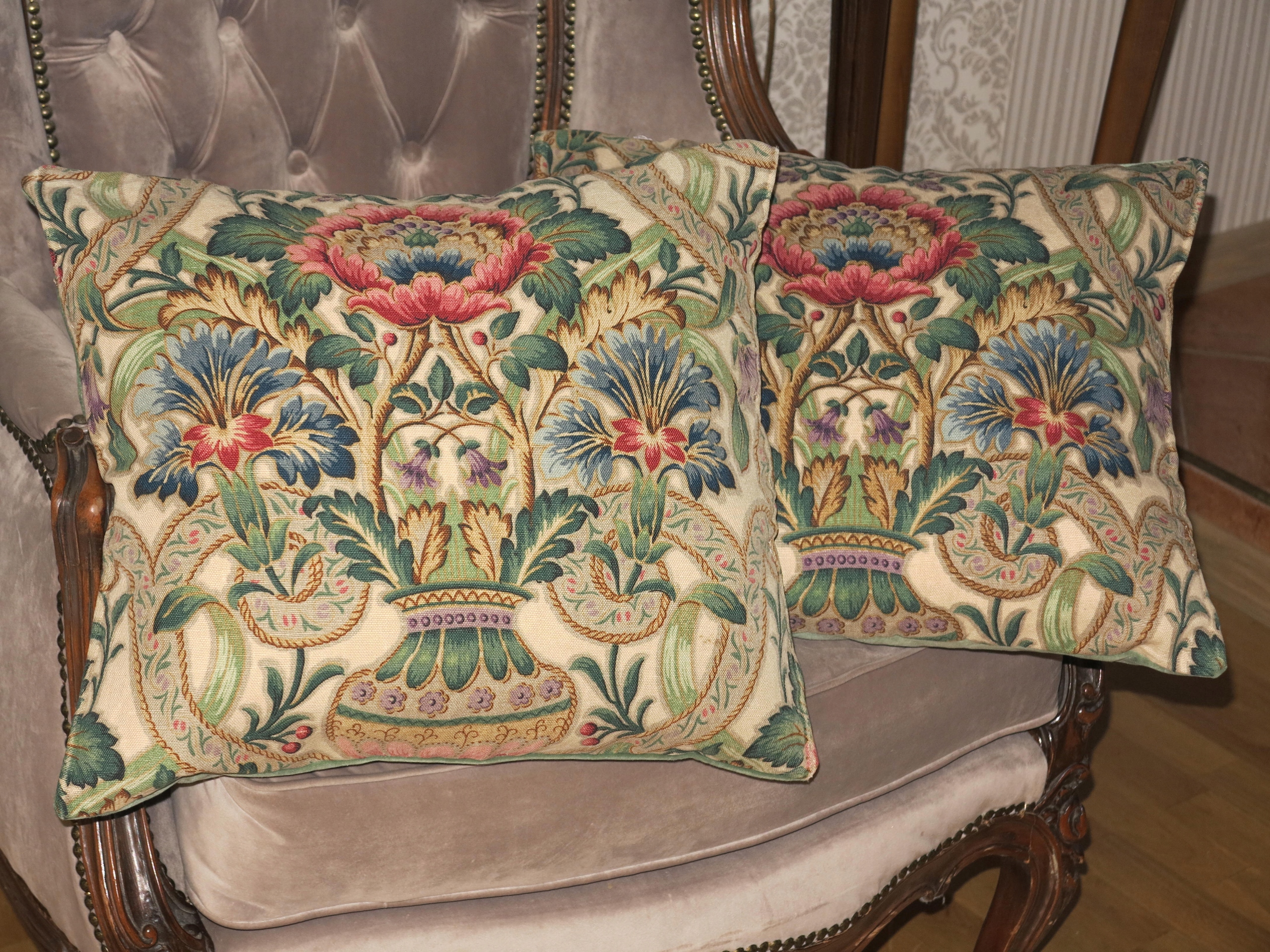 КРАСИВЫЕ ЛЬНЯНЫЕ ПОДУШКИ С ЦВЕТОЧНЫМИ АМФОРАМИ, БАРХАТНАЯ СПИНКА, НАПОЛНИТЕЛЬ