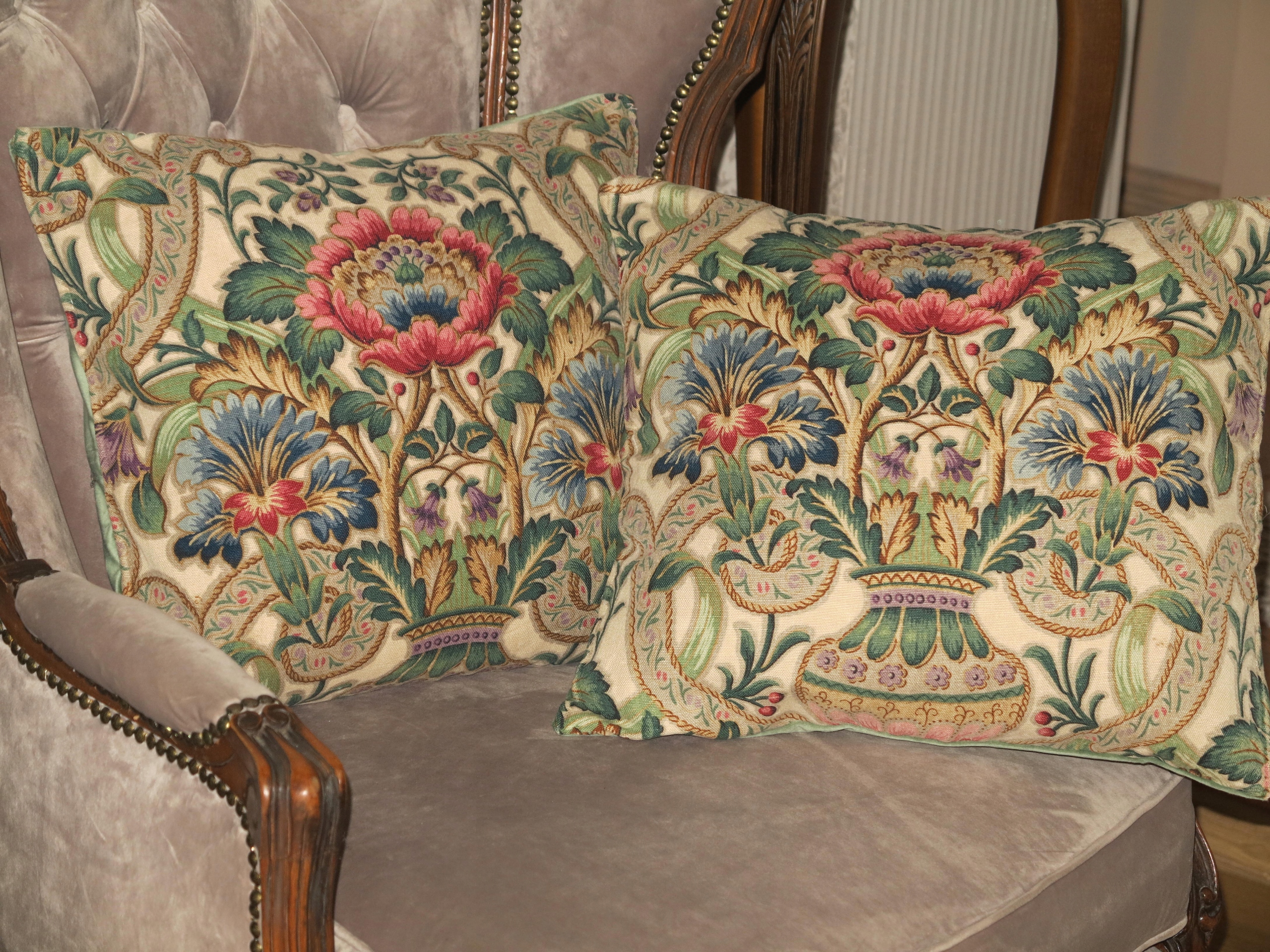 НАБОР КРАСИВЫХ ПОДУШЕК ИЗ ПРОЧНОГО ЛЬНЯНОГО ХОЛСТА С ЦВЕТОЧНЫМИ ВОСПОМИНАНИЯМИ. БАРХАТНАЯ СПИНКА