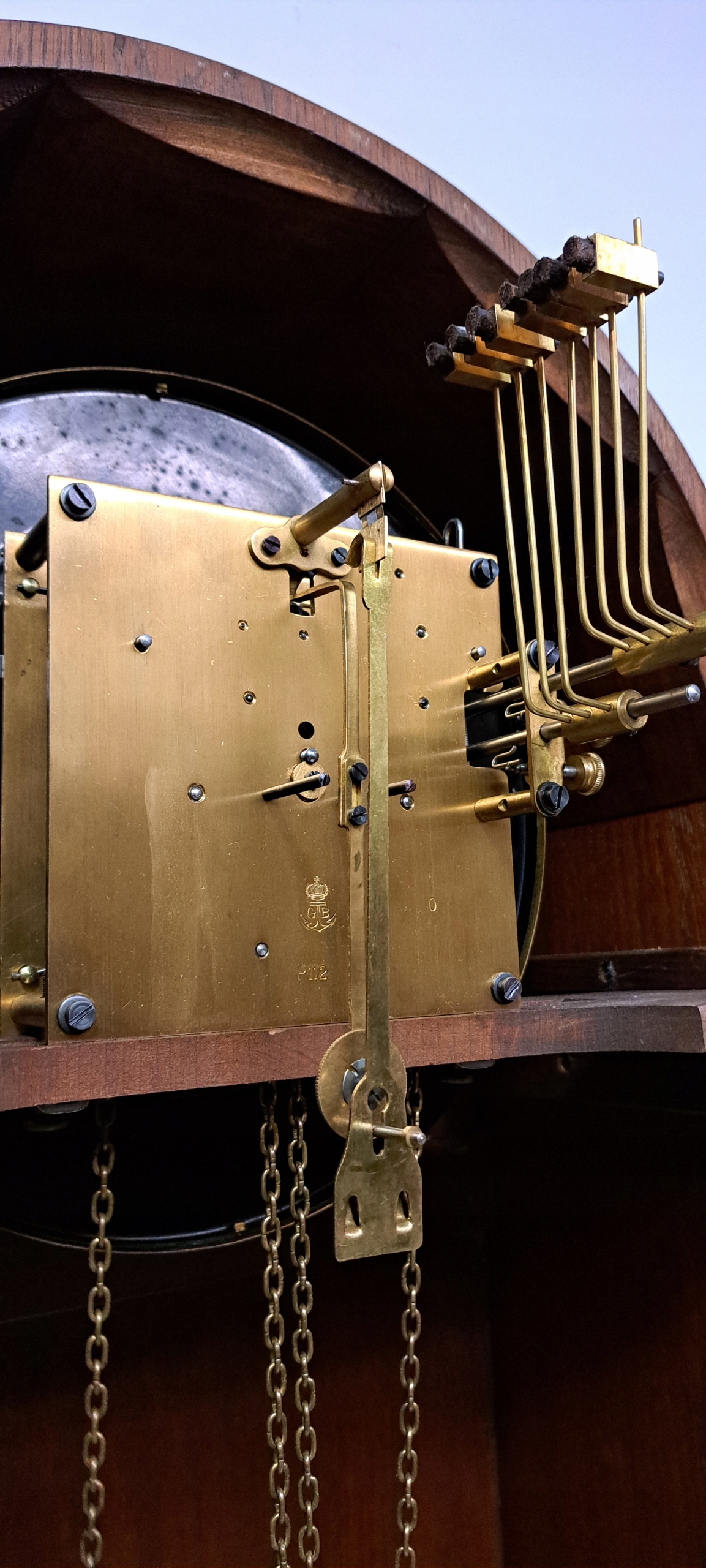 ЧАСЫ ОТМЕЧАЮТ ПОЛОВИНУ И ПОЛНЫЕ ЧАСЫ, С КРАСИВЫМ ГЛУБОКИМ 2-ТОНАЛЬНЫМ ЗВУКОМ СТРУННОГО ГОНГА, БИММ............БАММ........ КОЛИЧЕСТВО БОЙКОВ В ЗАВИСИМОСТИ ОТ ЧАСА