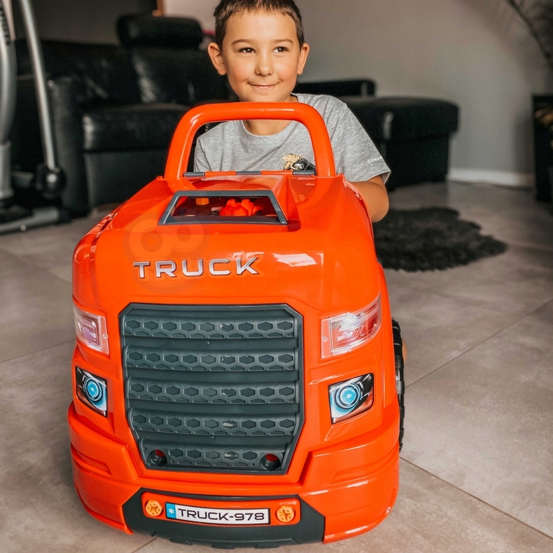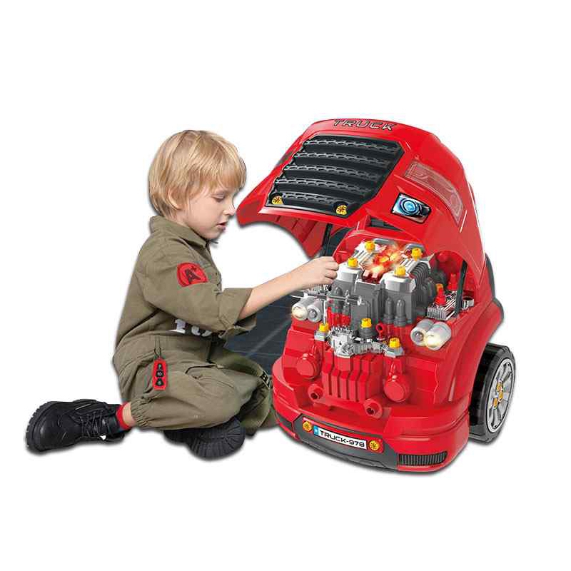 ▶ ️ игрушка, подражая передней части грузовика Woopie b> с поднятой маской, рулевым колесом и приборной панели со второго. молодой механик может сделать много ремонтов и проверок своего автомобиля (например, колеса, крылья, двигатель, свечи зажигания, радиаторный гриль). игрушка оборудована в звуковом модуле (звуки двигателя и рога) и Light (фары).