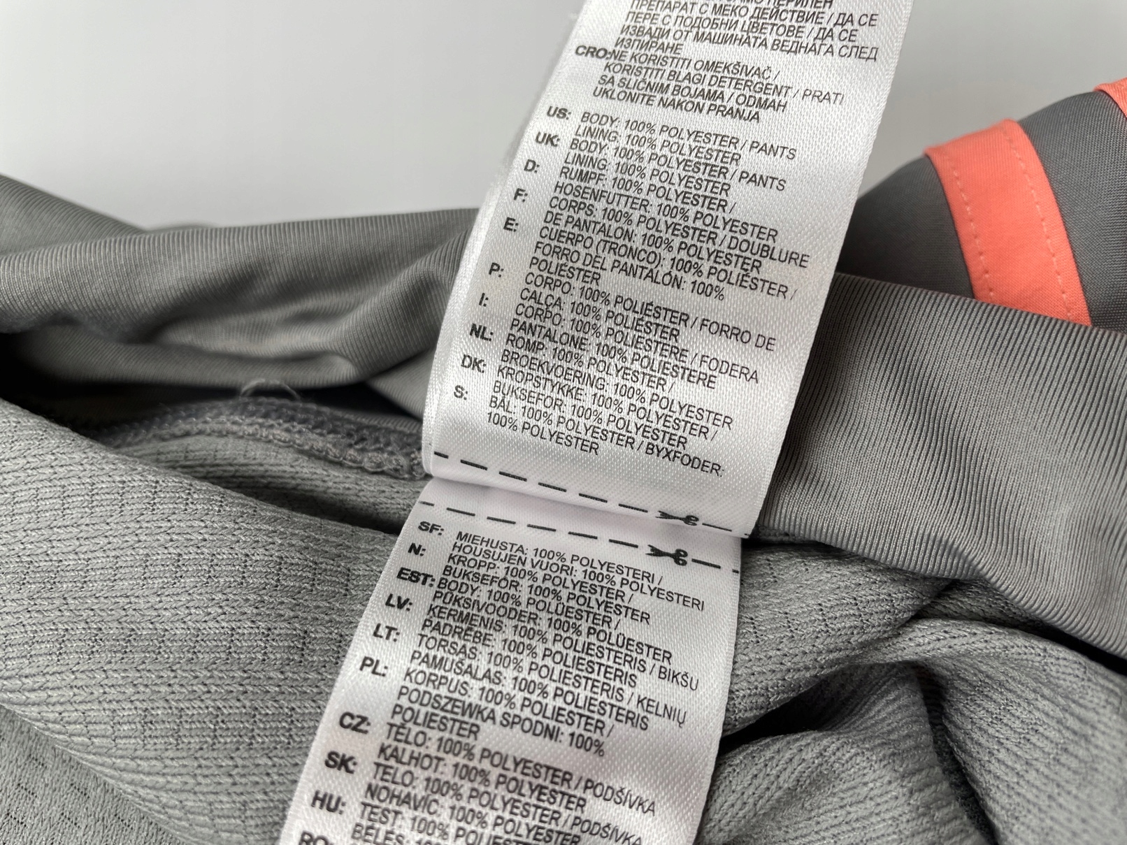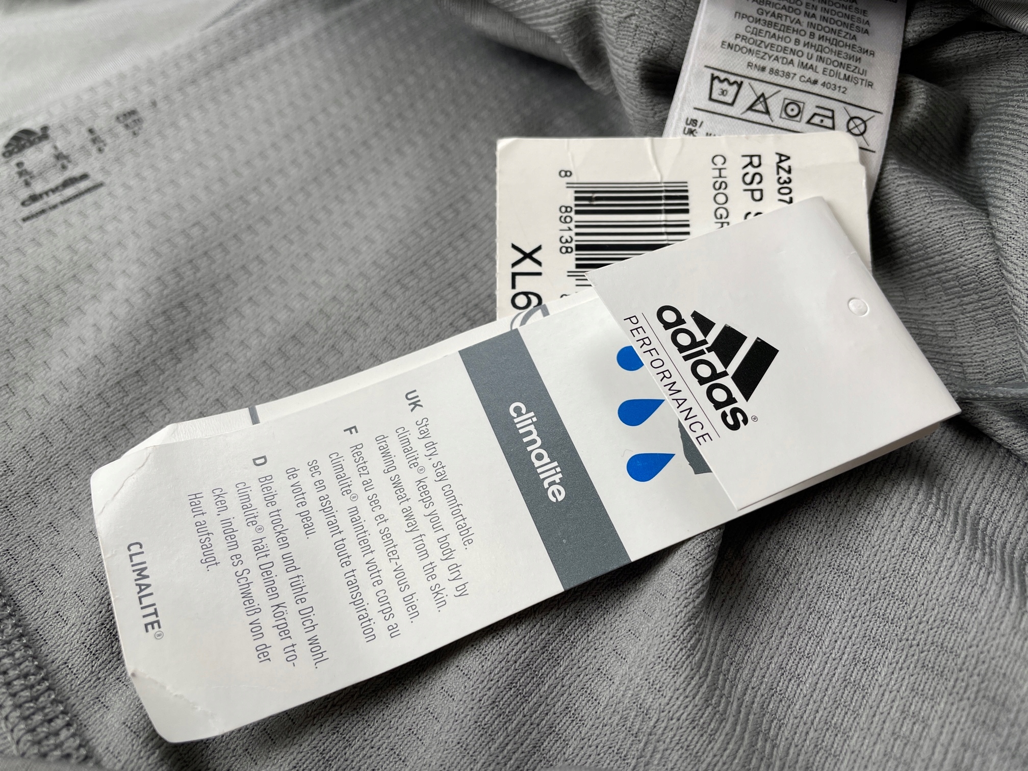 - Юбка adidas. Он серо, с характерными полосами по бокам. Это юбки- шорты. Верхний слой представляет собой мини -юбку с прямым разрезом, сделанной из скользкого, быстрого удивляющегося материала. Ниже он имеет сшитые гибкие шорты, которые идеально адаптируются к фигуре, обеспечивая комфорт и свободу передвижения. Он находится на эластичной ленте, с дополнительным связыванием изнутри. В задней части талию есть карман с закрепленным ключом. Основная задача этой технологии состоит в том, чтобы поглотить избыточную влажность с поверхности тела и переносить ее вне материала, что позволяет быстро и эффективно испарять пот. Он имеет небольшой дефект в виде микроскопического места на задней панели (видимого на фотографии и включено в цену)