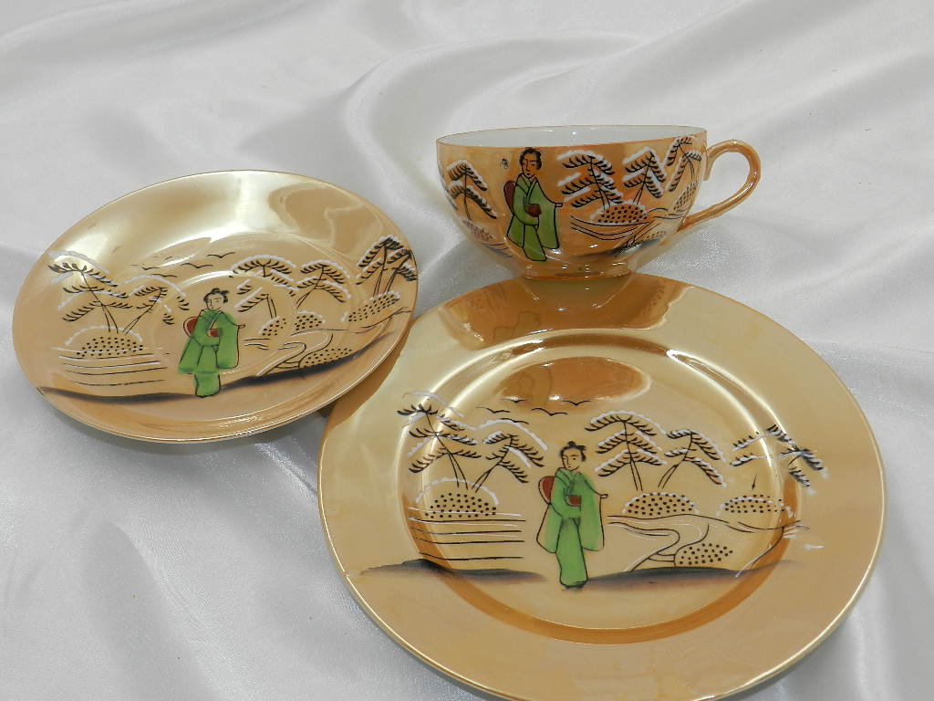 КРАСИВЫЙ ЯПОНСКИЙ НАБОР ДЛЯ ЗАВТРАКА С РУЧНОЙ РАСПИСАНИЕМ С ЛИТОФАНИЕЙ ГЕЙШ