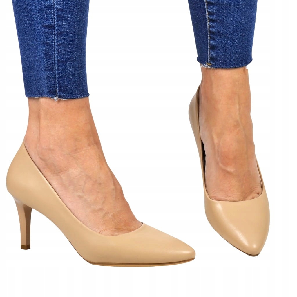 ТУФЛИ НЮ БЕЖЕВЫЕ ВЫСОКИЕ, УДОБНЫЕ, НЕ ВЫСОКИЕ, С КОЖАНОЙ СТЕЛЕКОЙ