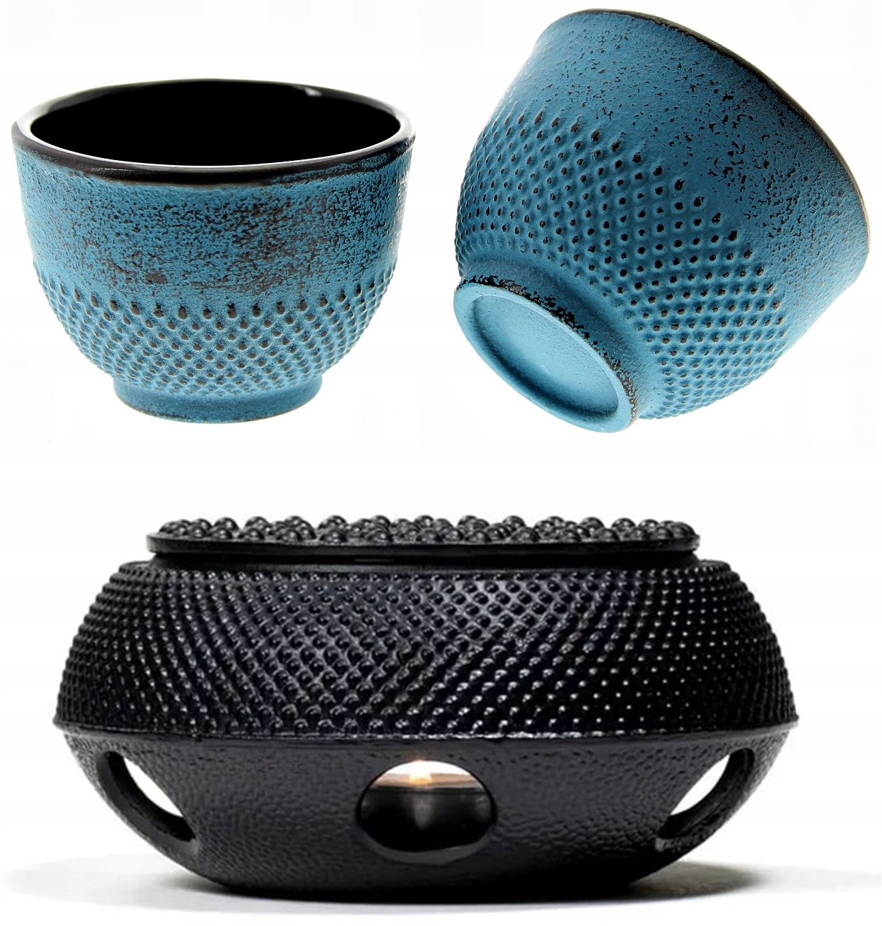 Чугунная грелка для чайника в японском стиле, набор с 2 чашами