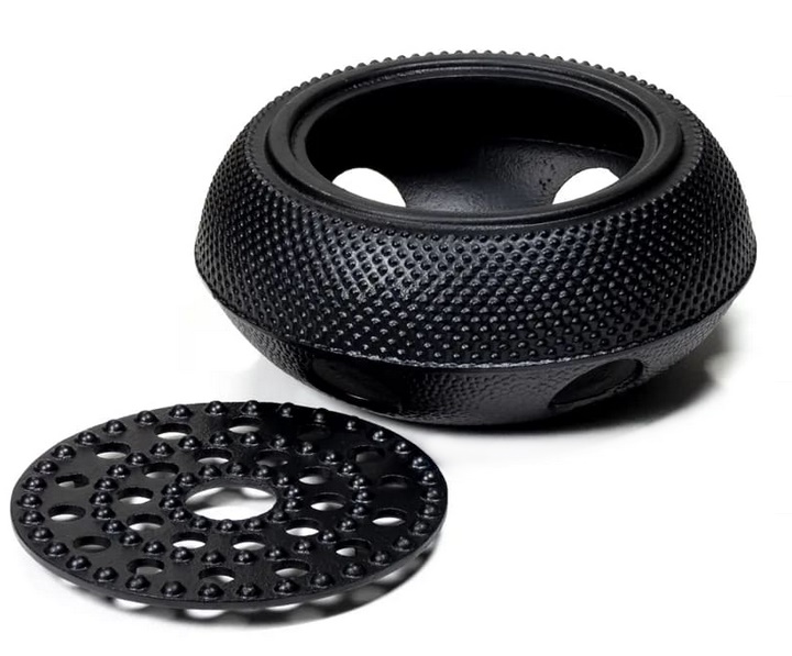 Чаша-грелка внизу имеет 6 отверстий для обеспечения циркуляции воздуха, а крышка имеет вид сита, температуру лучше отражать через 25 отверстий и выпуклые точки, расположенные между ними, аккуратно приподнимая чайник, поставленный на нагреватель. р>