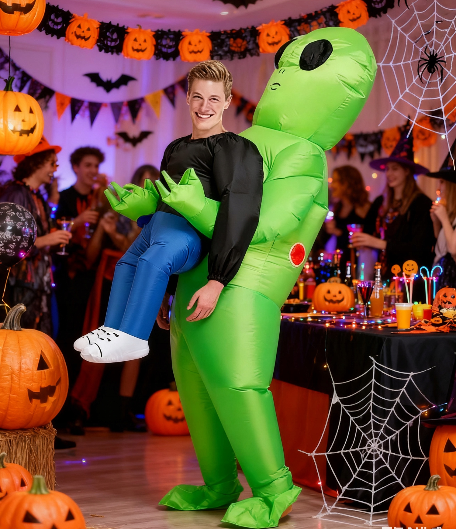 - Надуваемый костюм изготовлен из 100% полиэстера, что обеспечивает его постоянное использование.