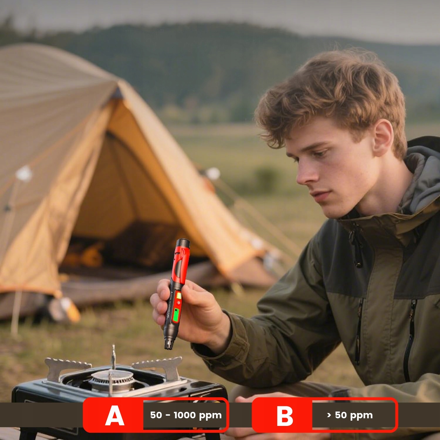 Конструкция устройства изготовлена из прочного материала ABS, устойчивого к царапинам, ударам и деформациям. Благодаря этому детектор отлично работает даже в сложных полевых и мастерских условиях. Оснащен карманным зажимом, который облегчает ношение устройства в кармане. Это идеальный инструмент для любителей автодомов, домашних мастеров и домовладельцев с газовыми приборами.